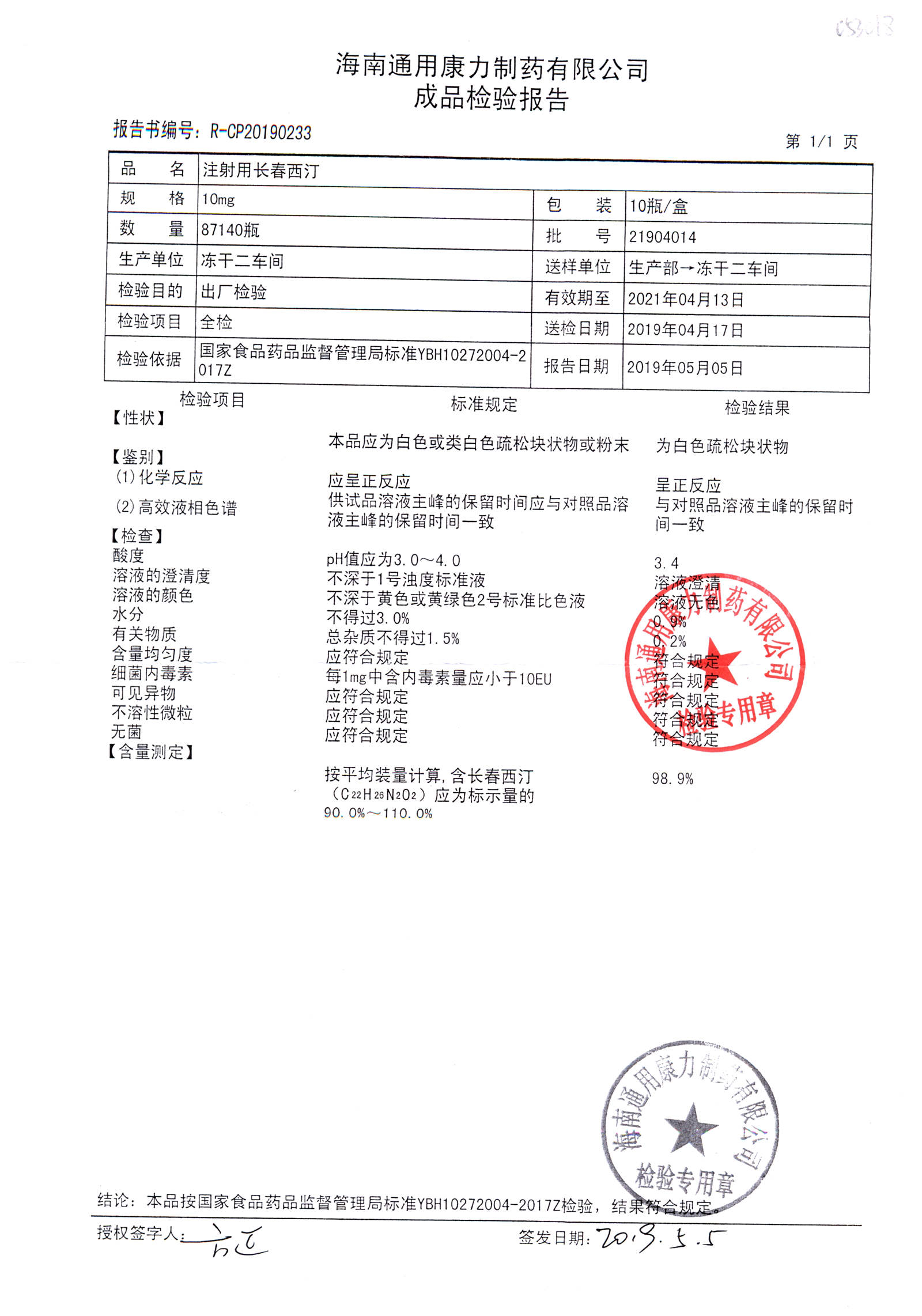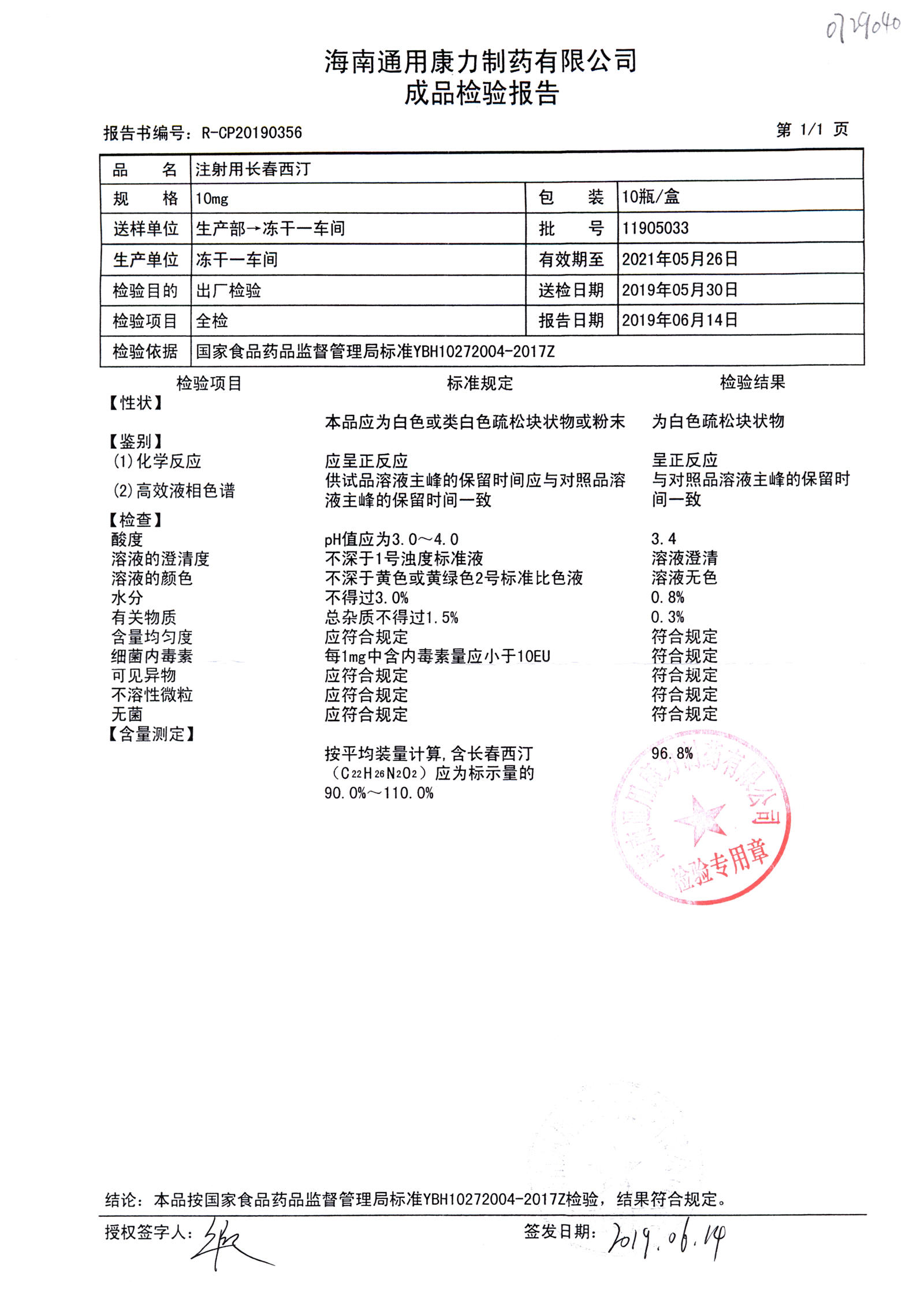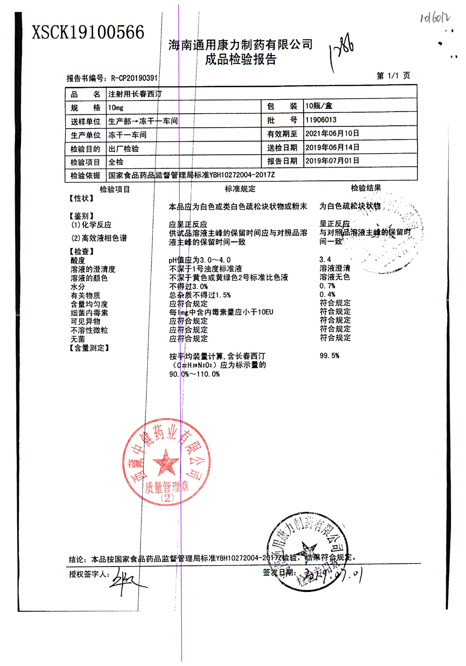 注射用长春西汀 | 10mg | 21904014 | 查看详情 |