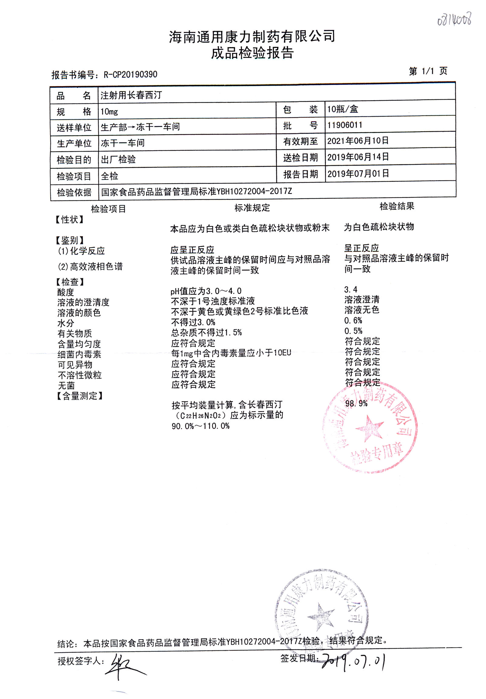 注射用长春西汀 | 10mg | 11906011 | 查看详情 |