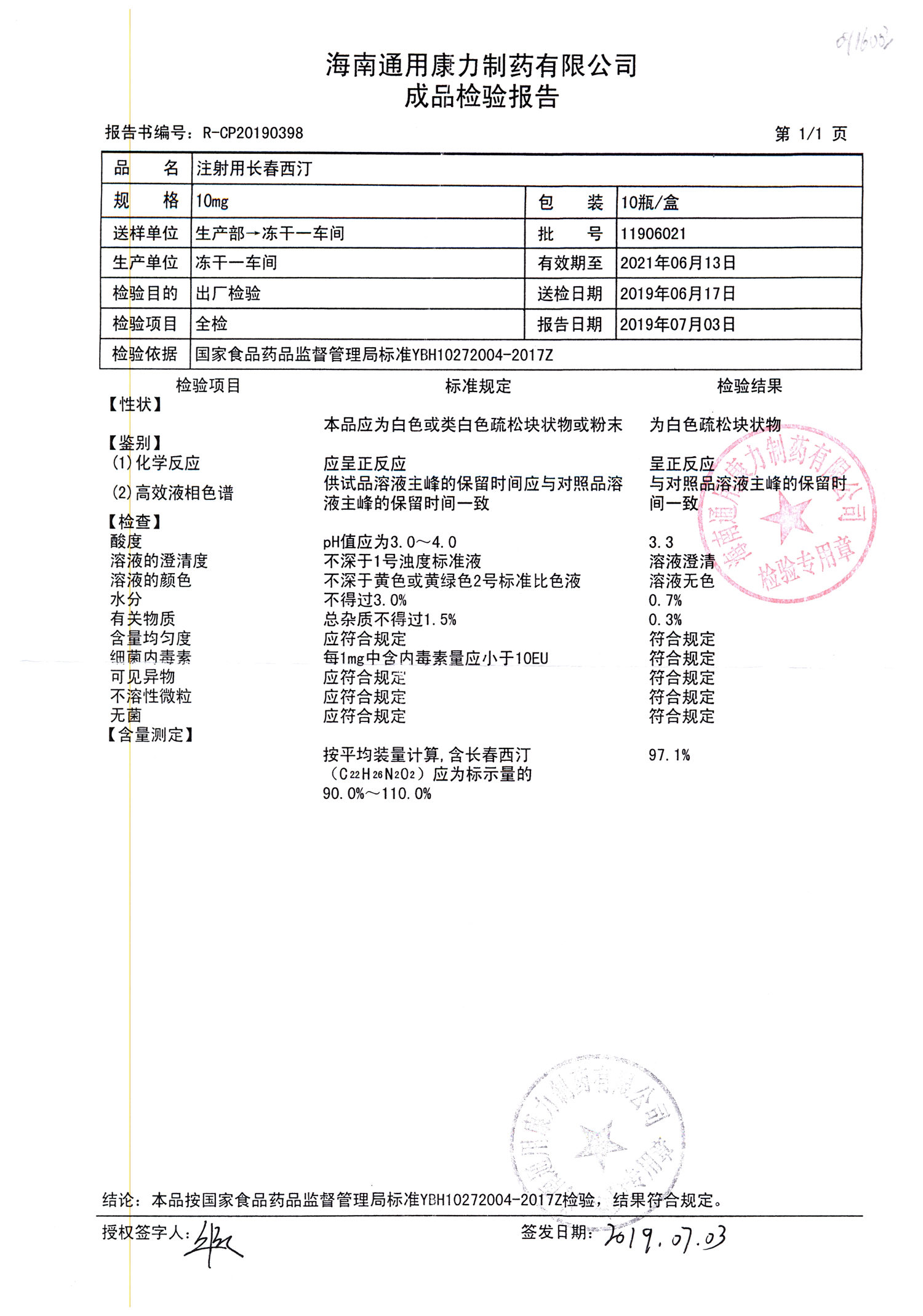 注射用长春西汀 | 10mg | 11905033 | 查看详情 |