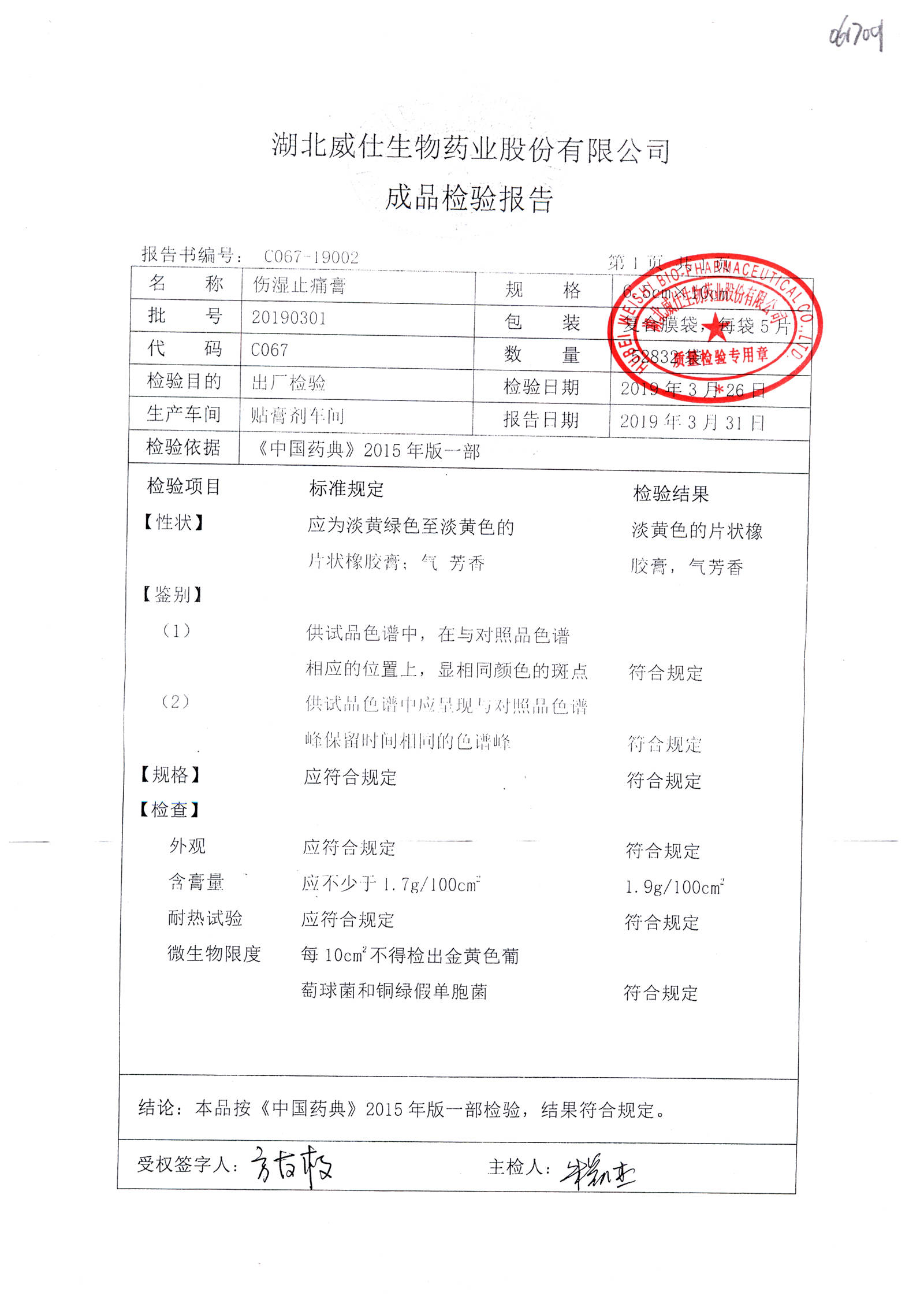 伤湿止痛膏 | 6.5cm*10cm | 20190301 | 查看详情 |