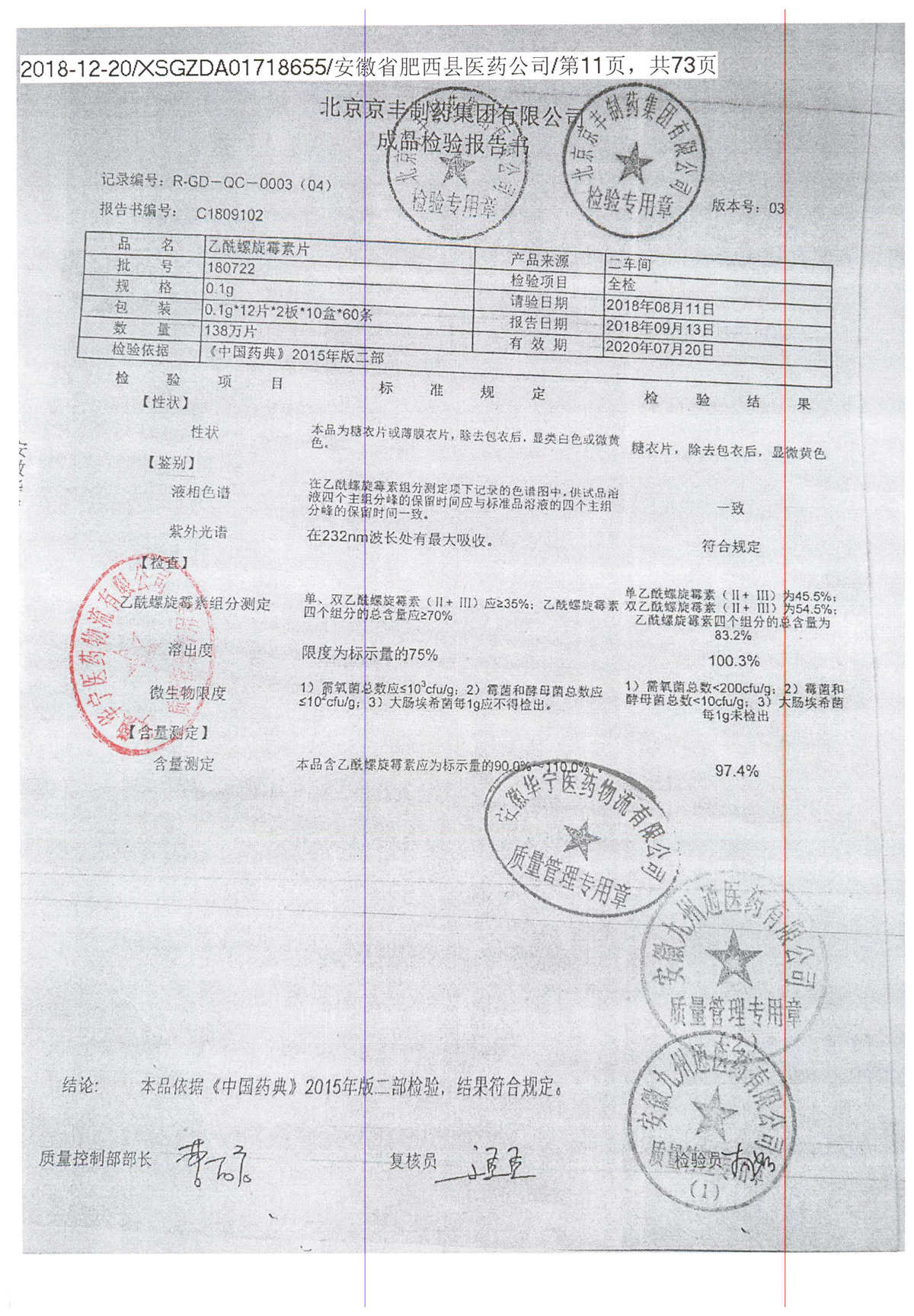 乙酰螺旋霉素片 | 0.1g*24片 | 180722 | 查看详情 |