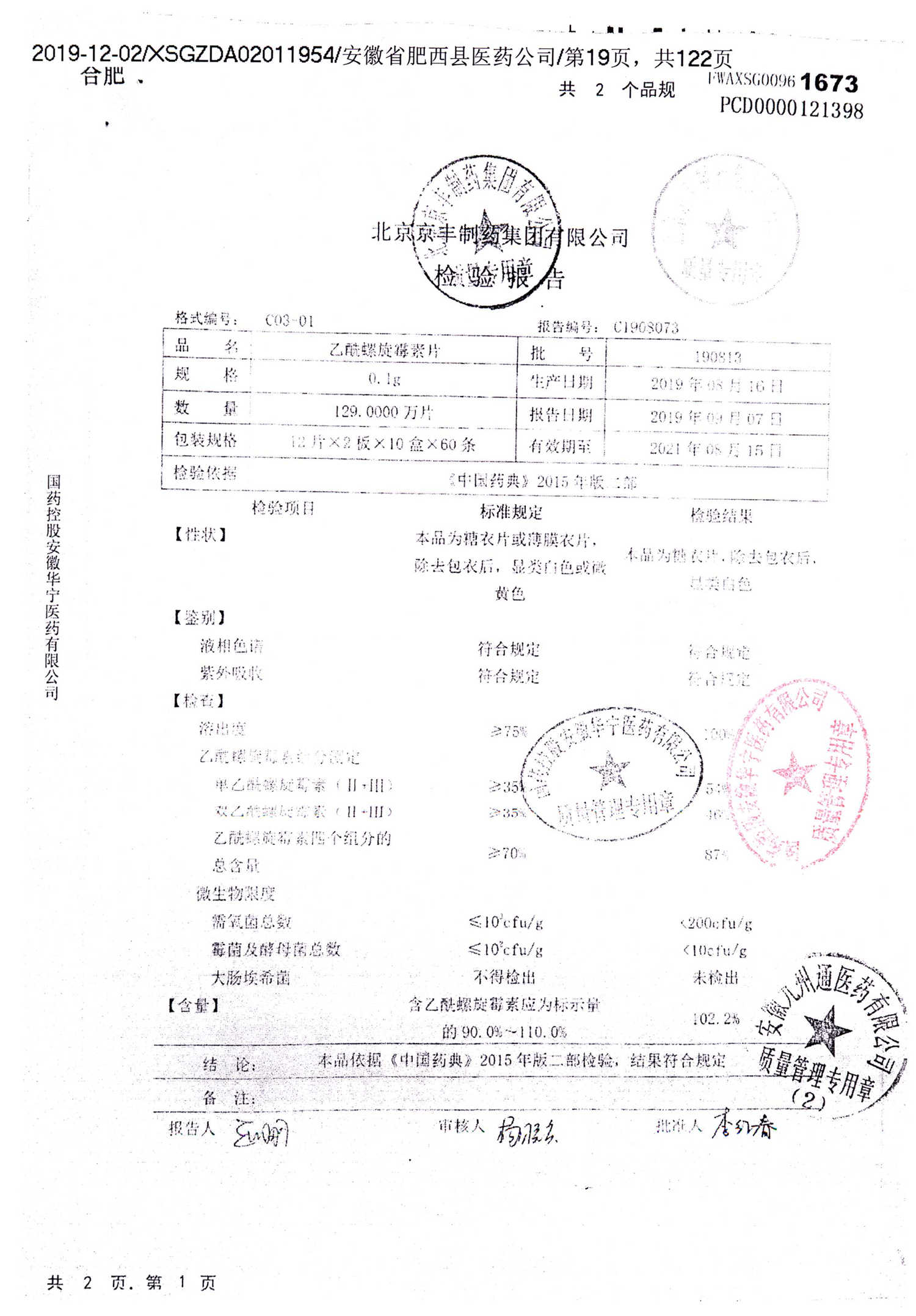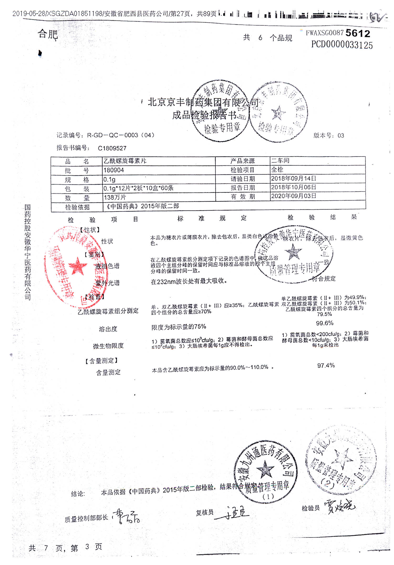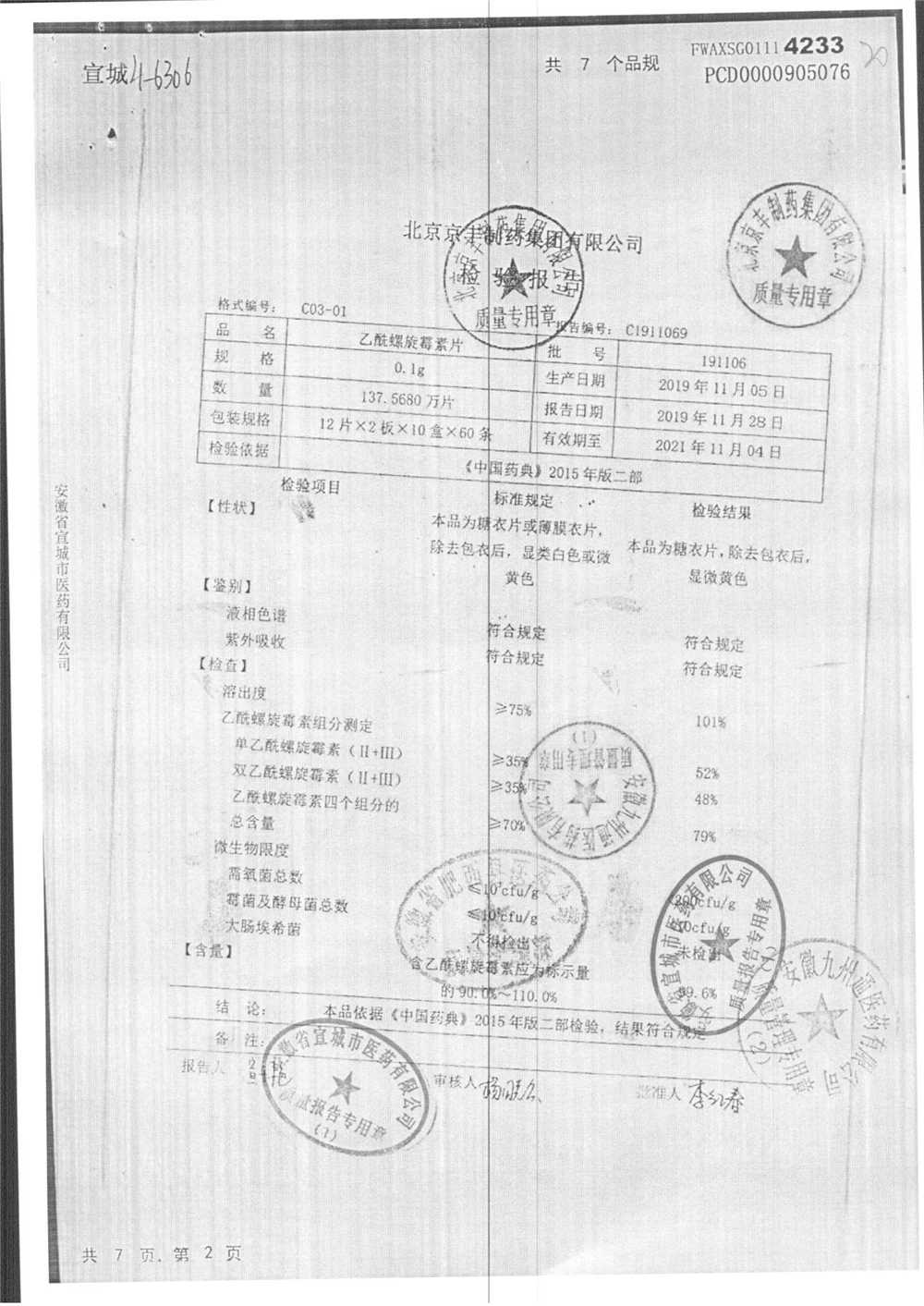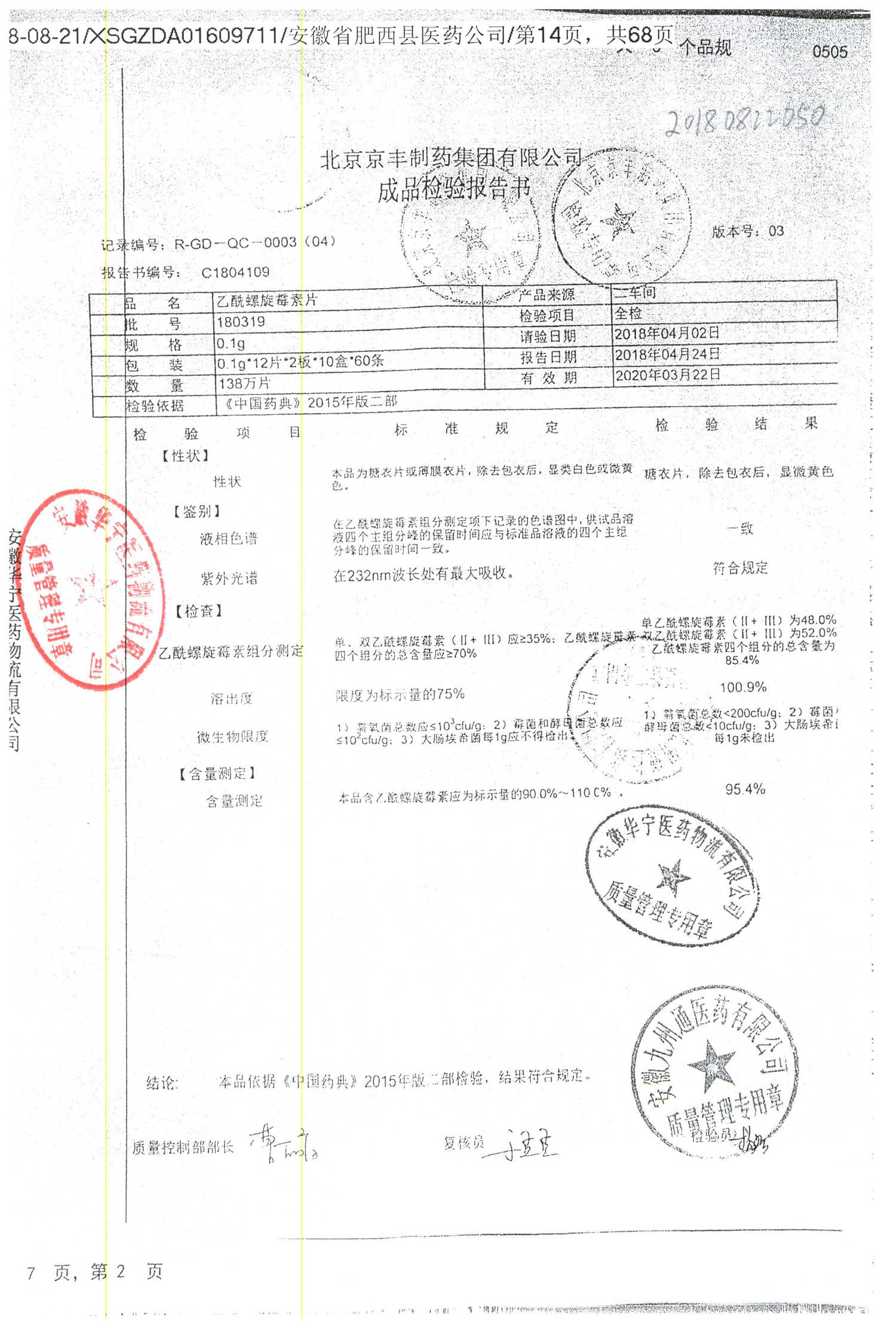 乙酰螺旋霉素片 | 0.1g*24片 | 190813 | 查看详情 |