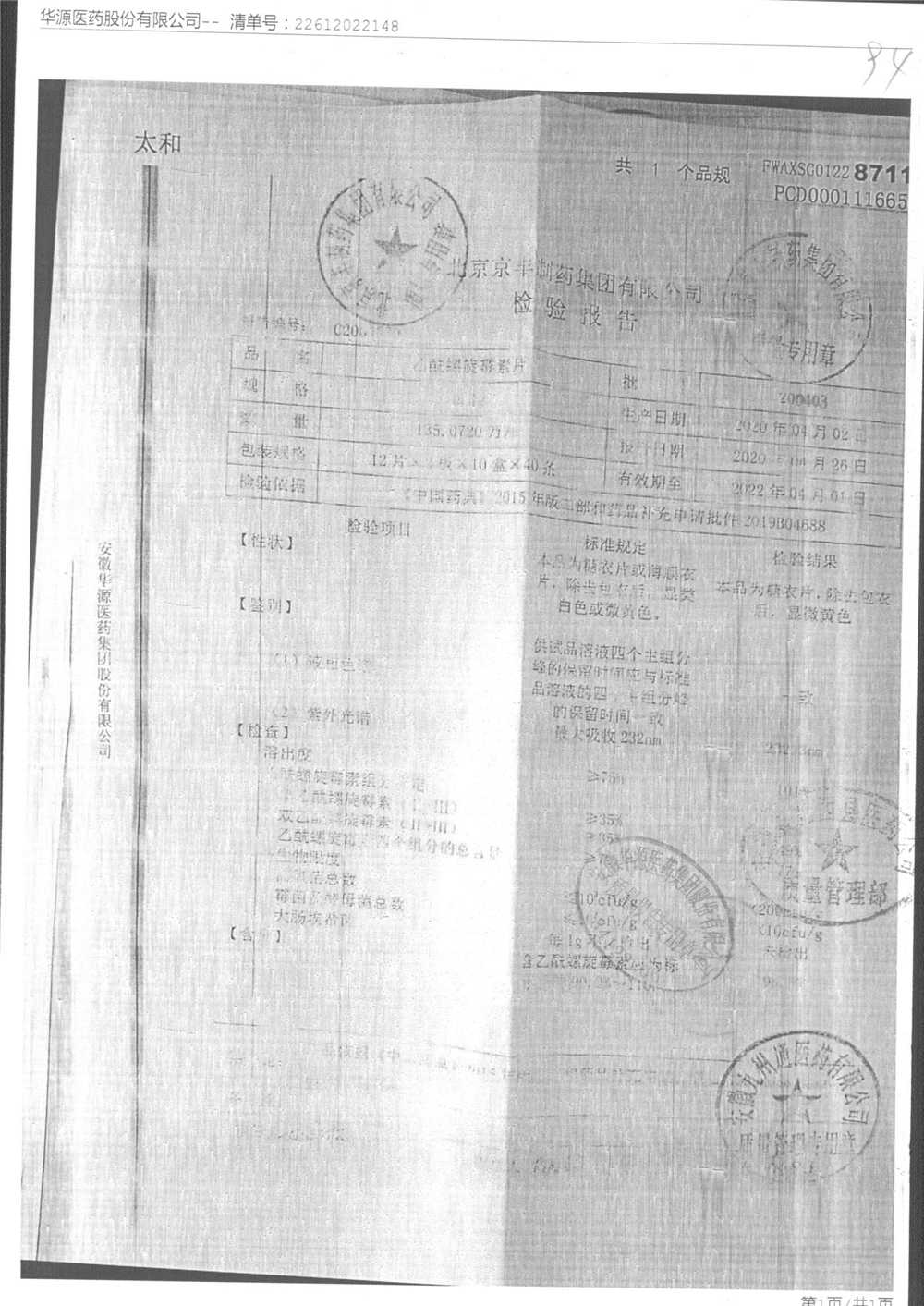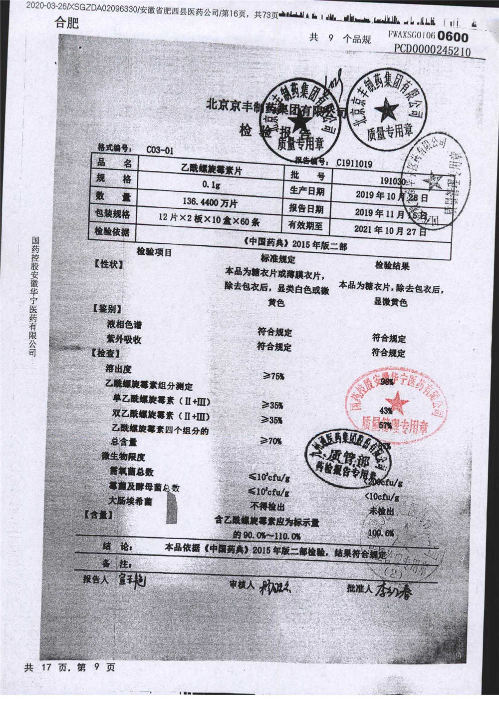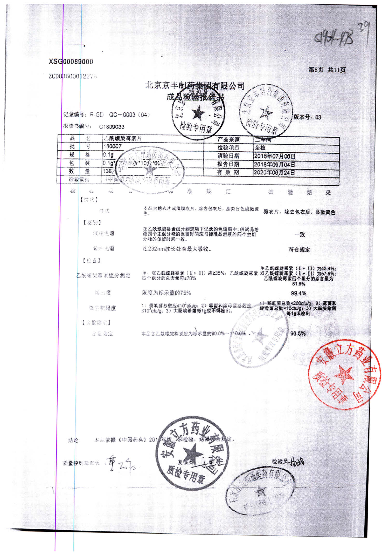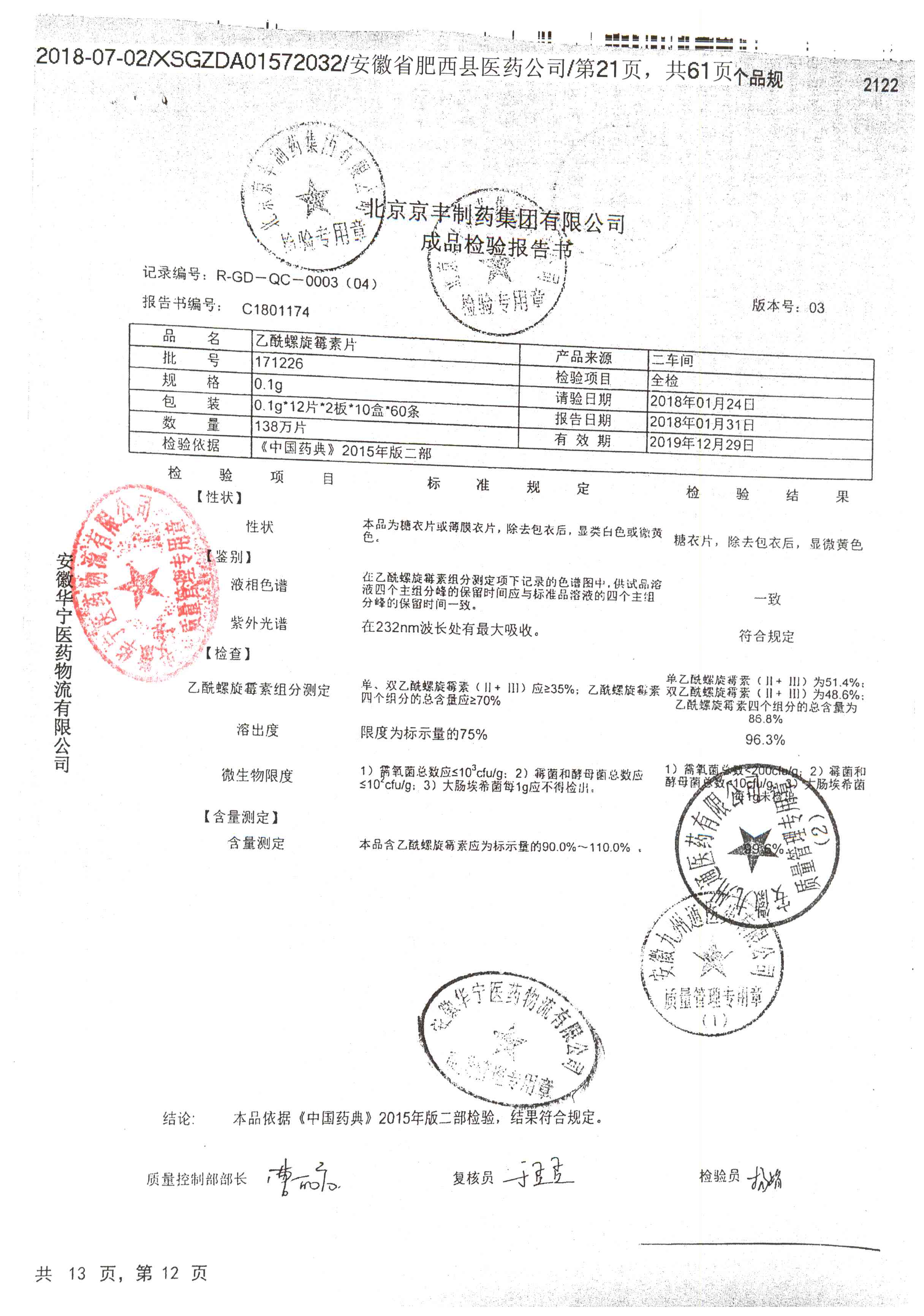 乙酰螺旋霉素片 | 0.1g*24片 | 190813 | 查看详情 |