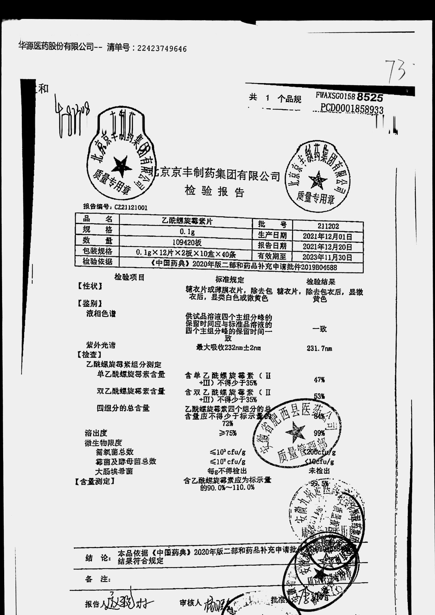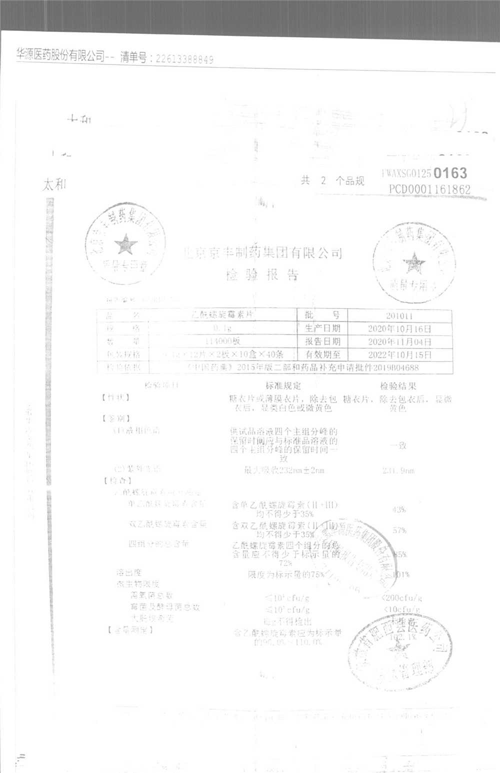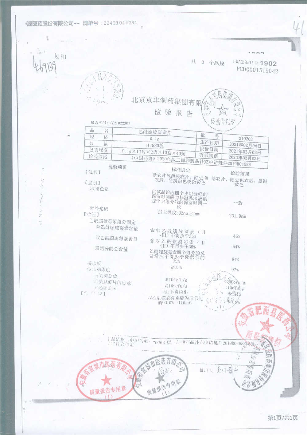 乙酰螺旋霉素片 | 0.1g*24片 | 210208 | 查看详情 |