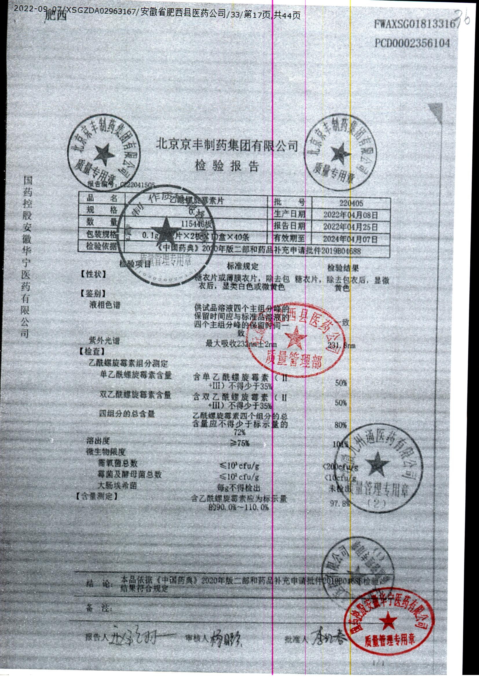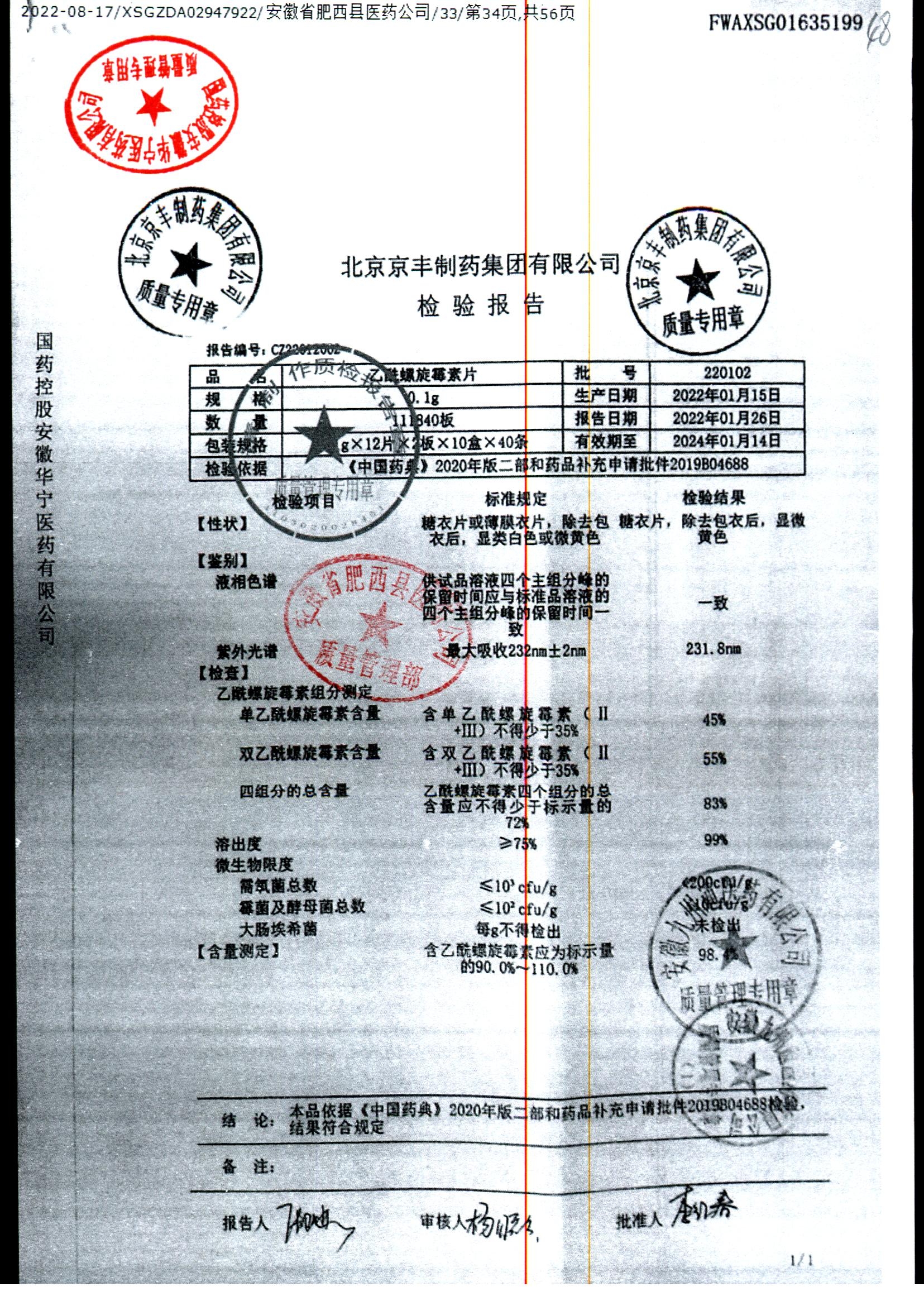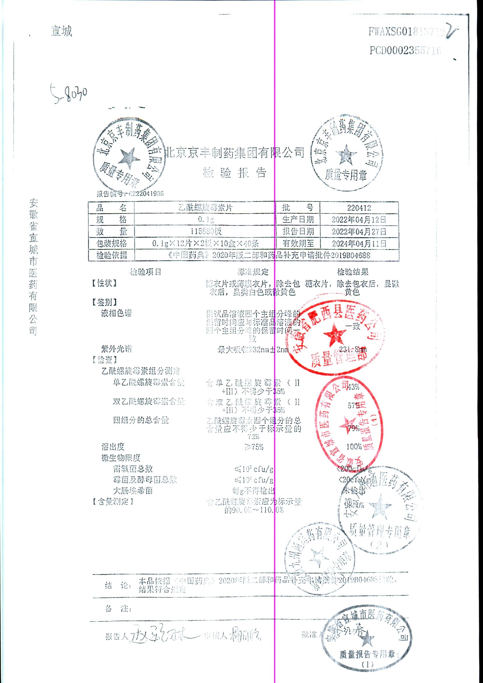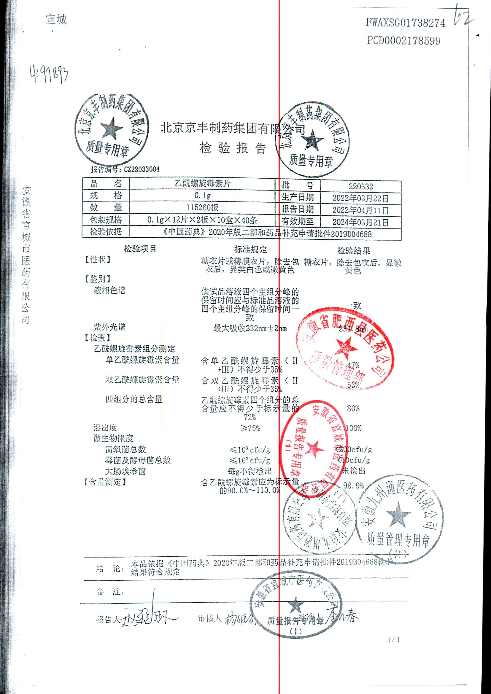 乙酰螺旋霉素片 | 0.1g*24片 | 220405 | 查看详情 |