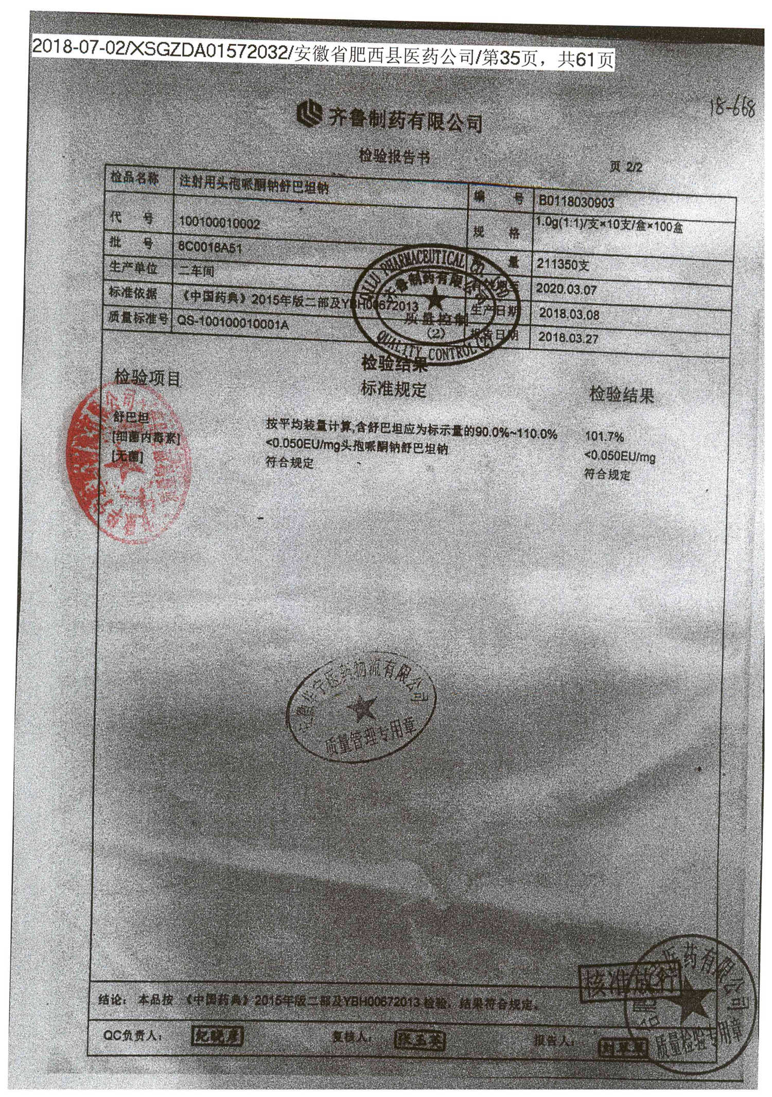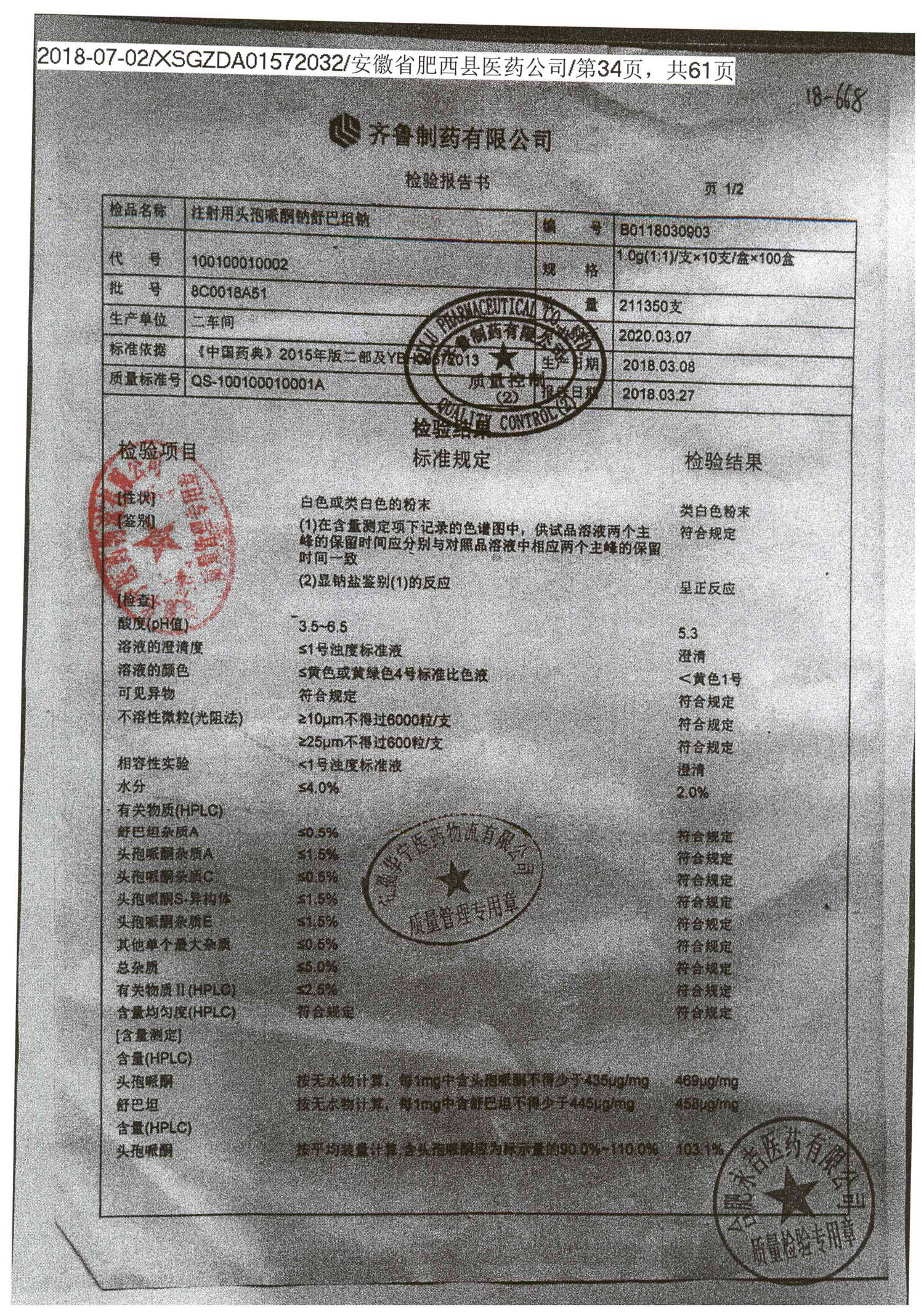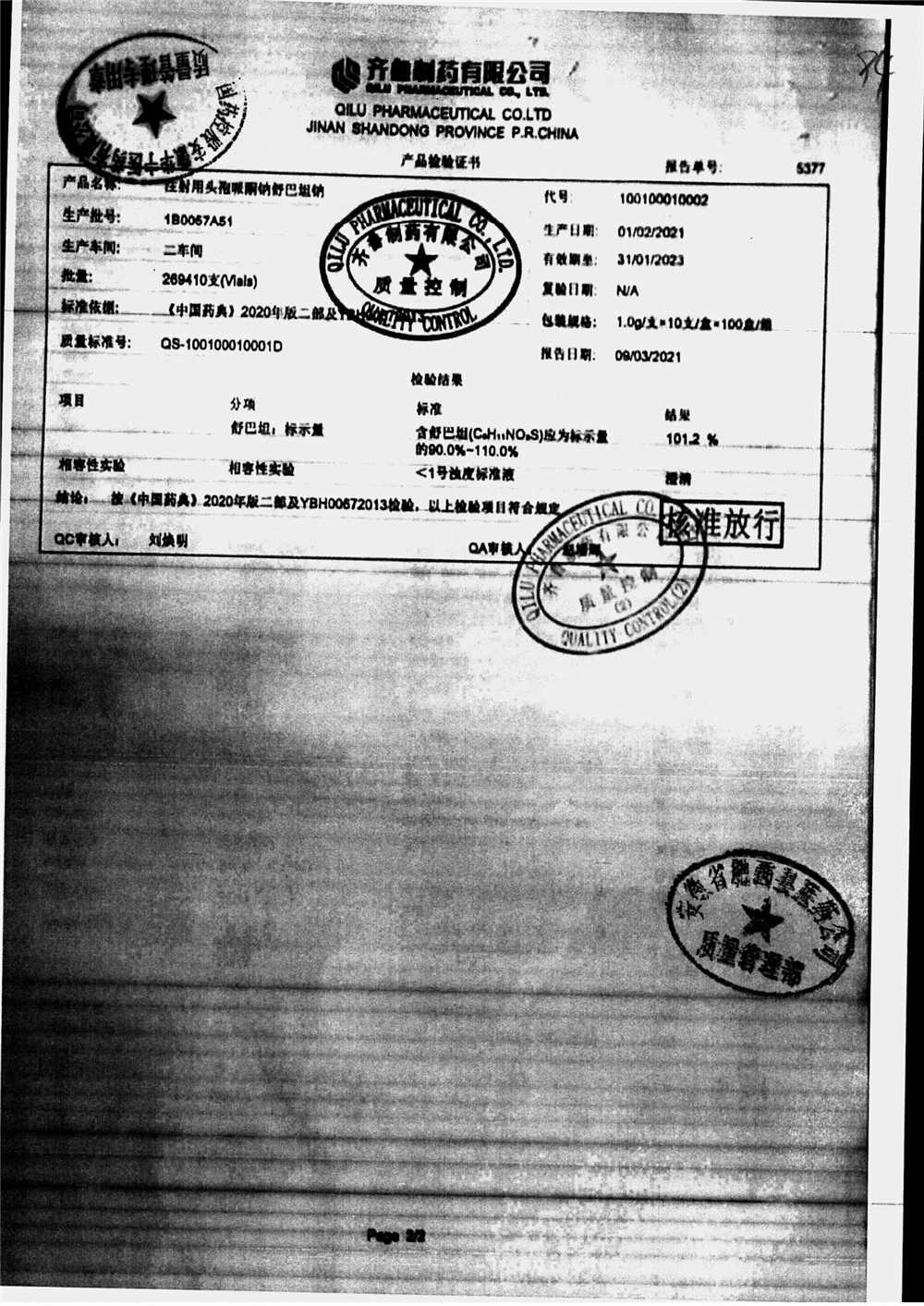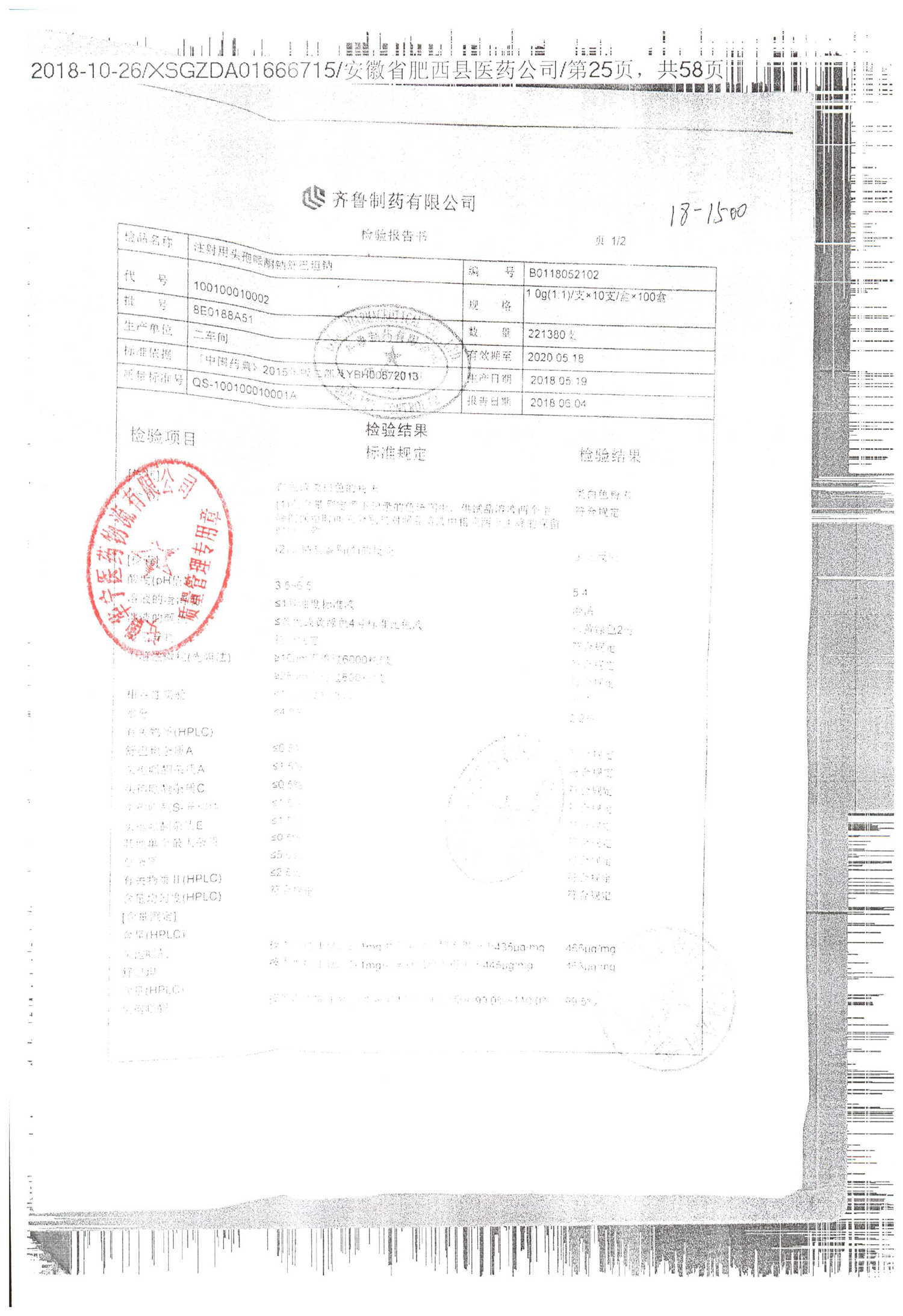 注射用头孢哌酮钠舒巴坦钠 | 1.0g | 8G0278A51(2/2) | 查看详情 |
