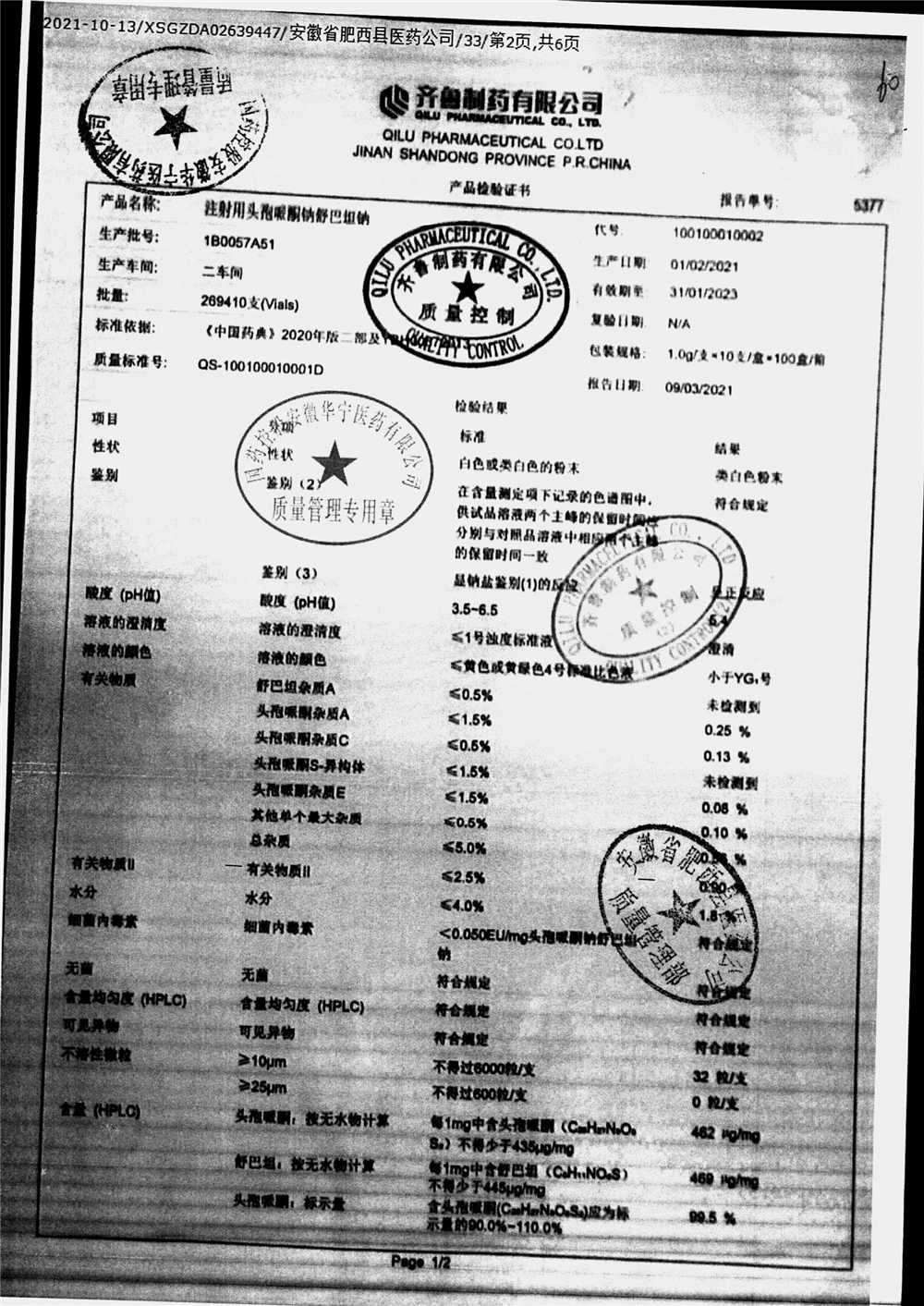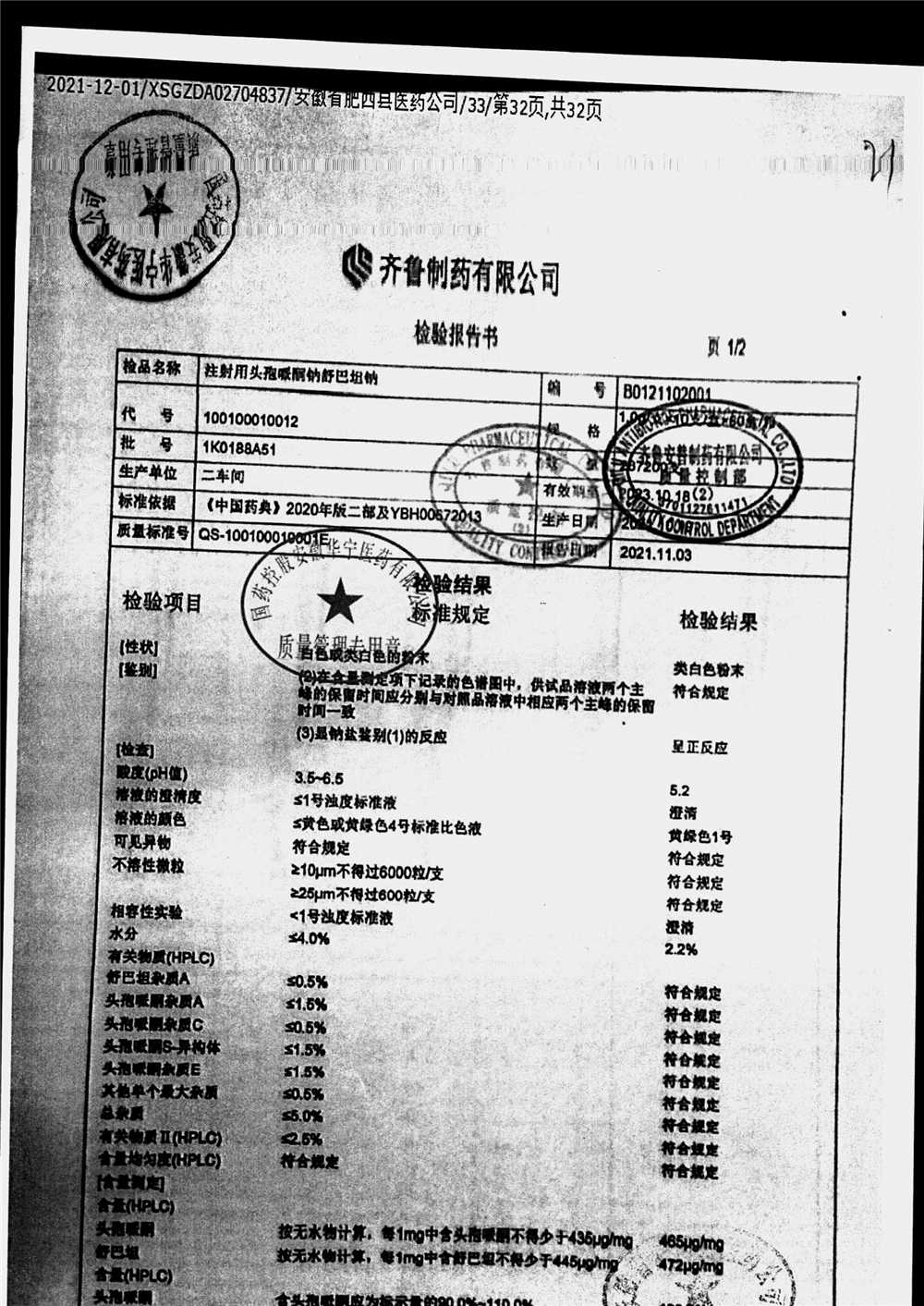 注射用头孢哌酮钠舒巴坦钠 | 1.0g | 8E0188A51(2/2) | 查看详情 |