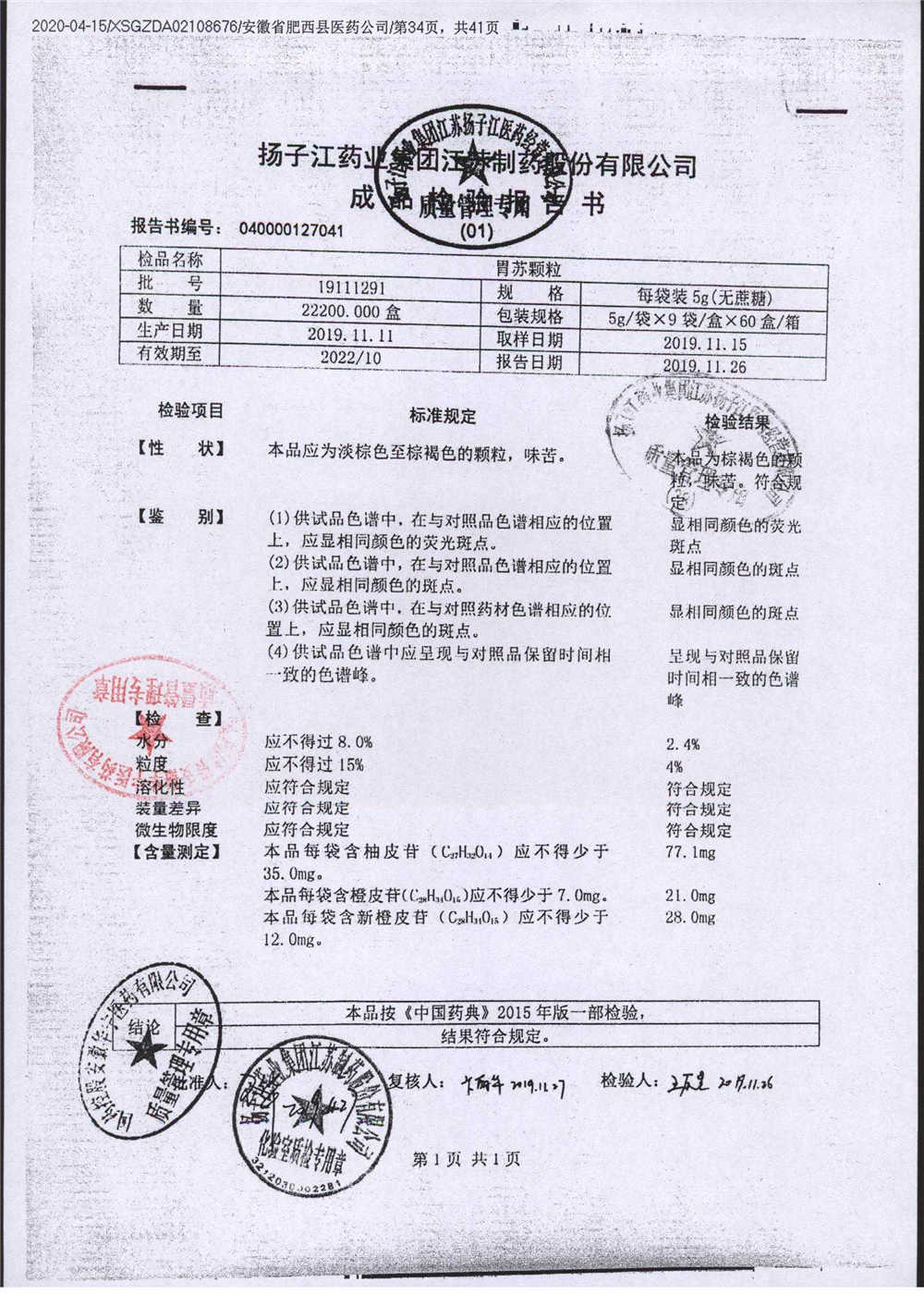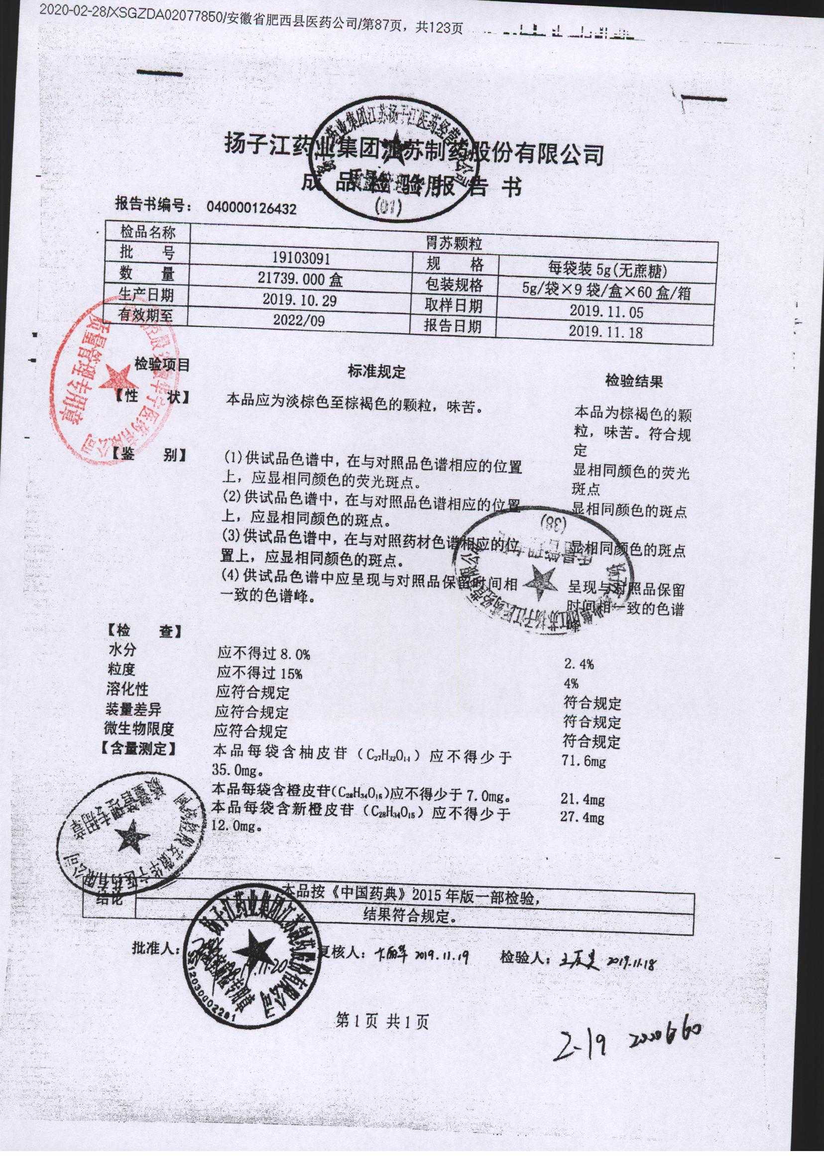 胃苏颗粒 | 5g*9袋 | 19040222 | 查看详情 |