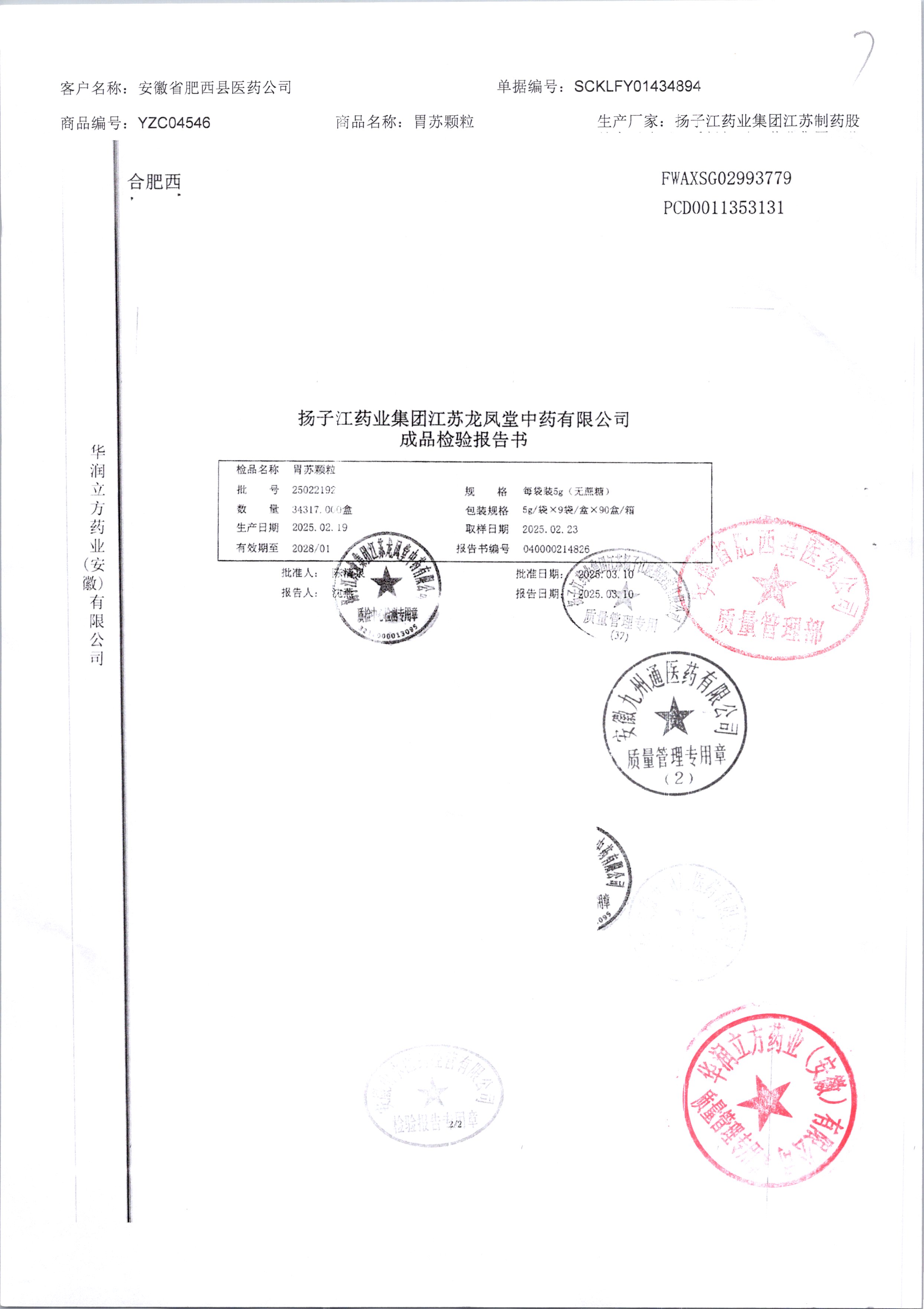 胃苏颗粒 | 5g*9袋 | 25022192/1 | 查看详情 |