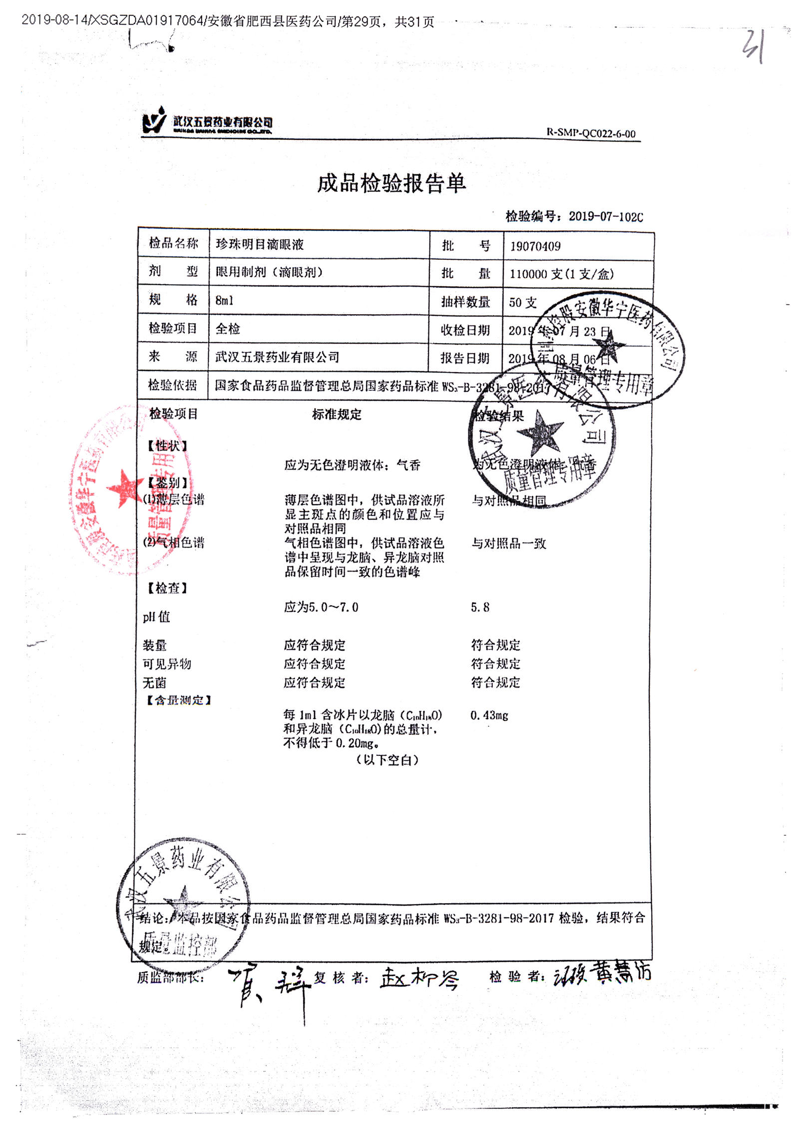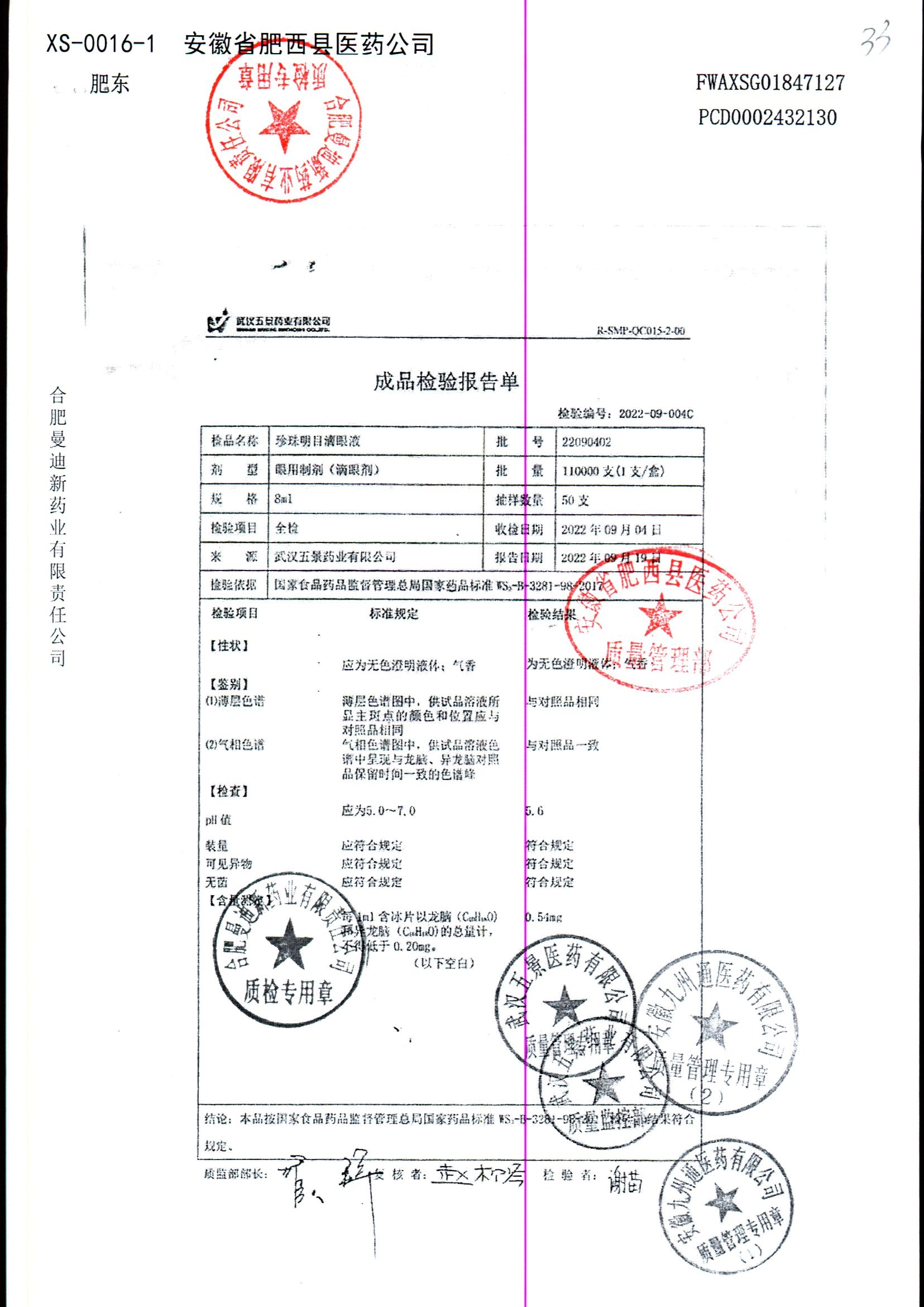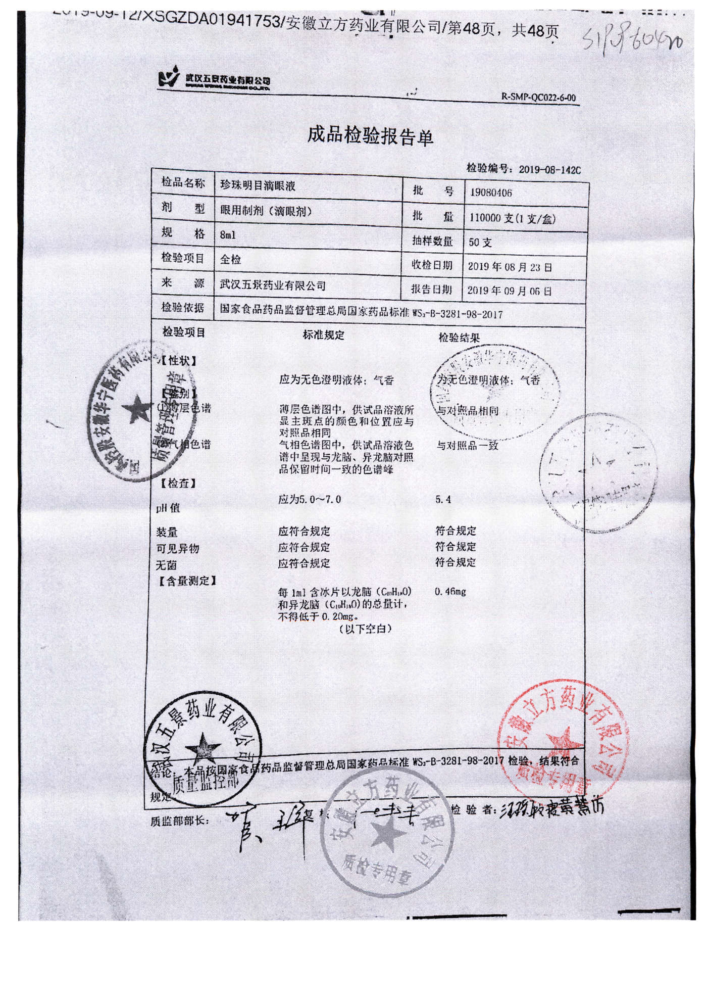 珍珠明目滴眼液 | 8ml | 19100409 | 查看详情 |