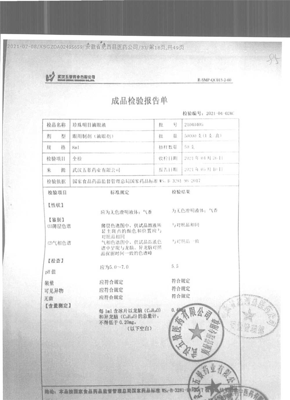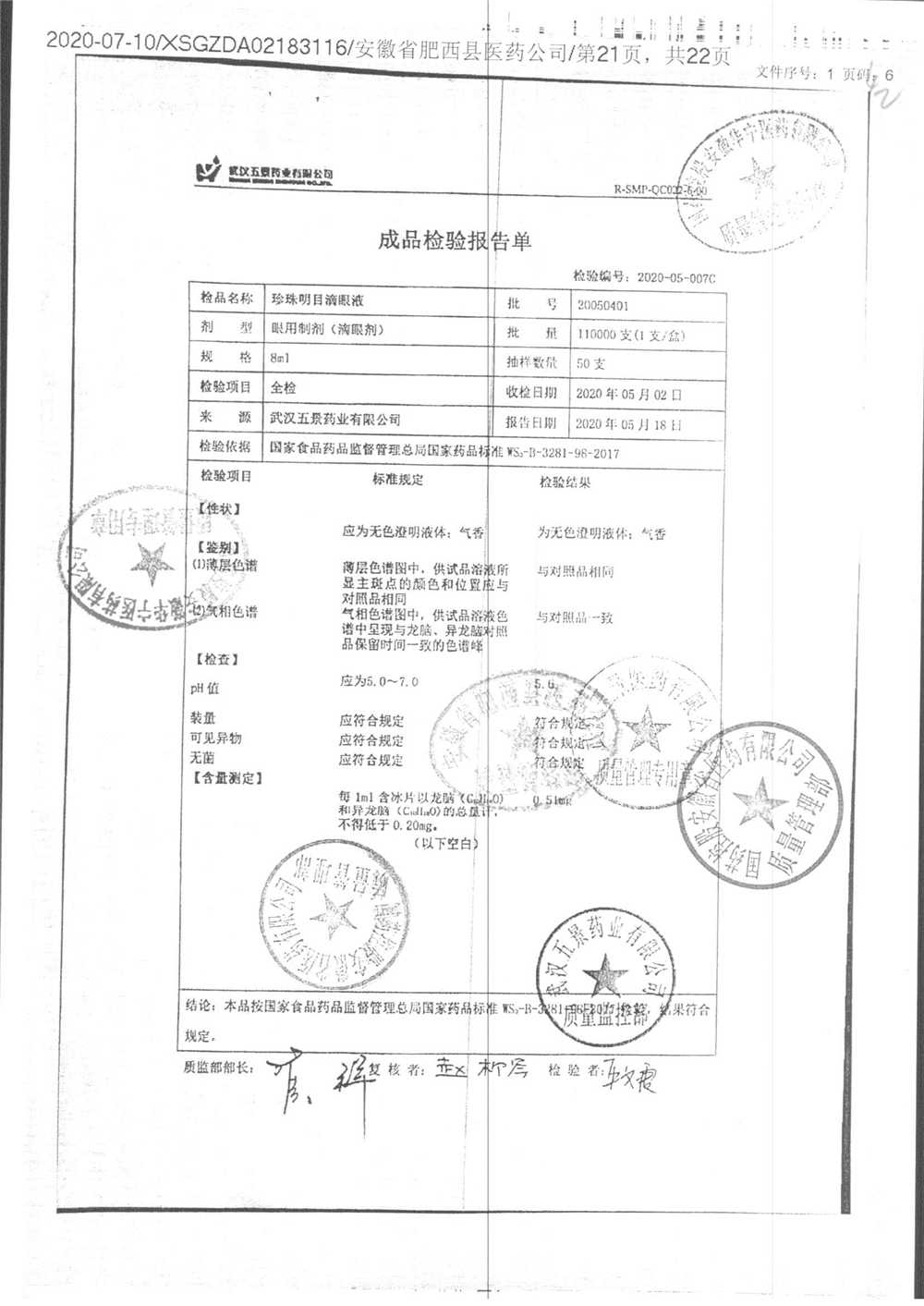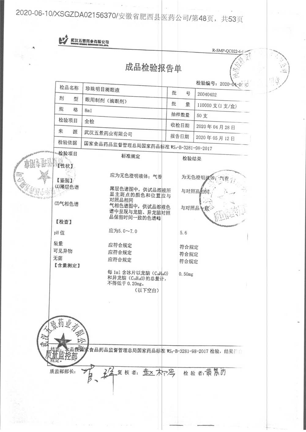 珍珠明目滴眼液 | 8ml | 19100409 | 查看详情 |