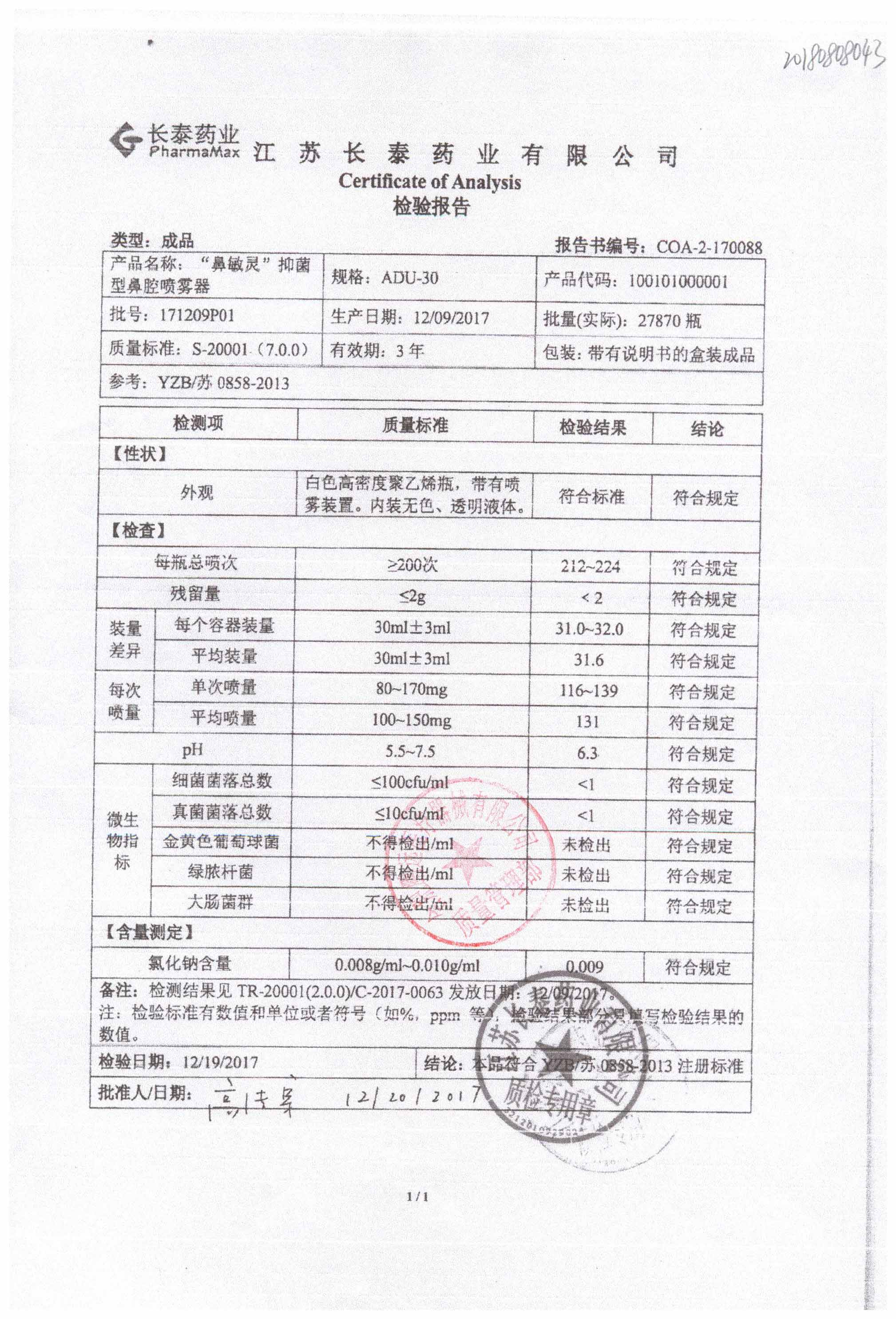 抑菌型鼻腔喷雾剂(鼻敏灵) | ADU-30 | 171209P01 | 查看详情 |