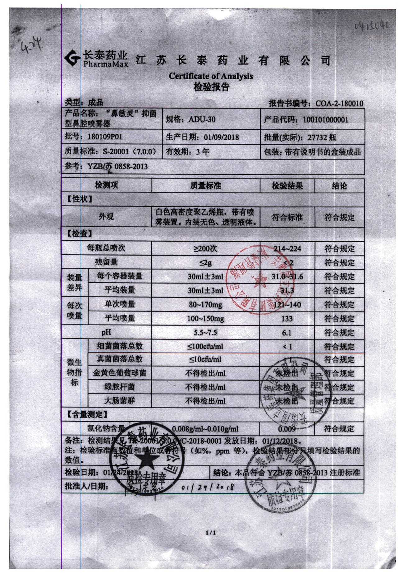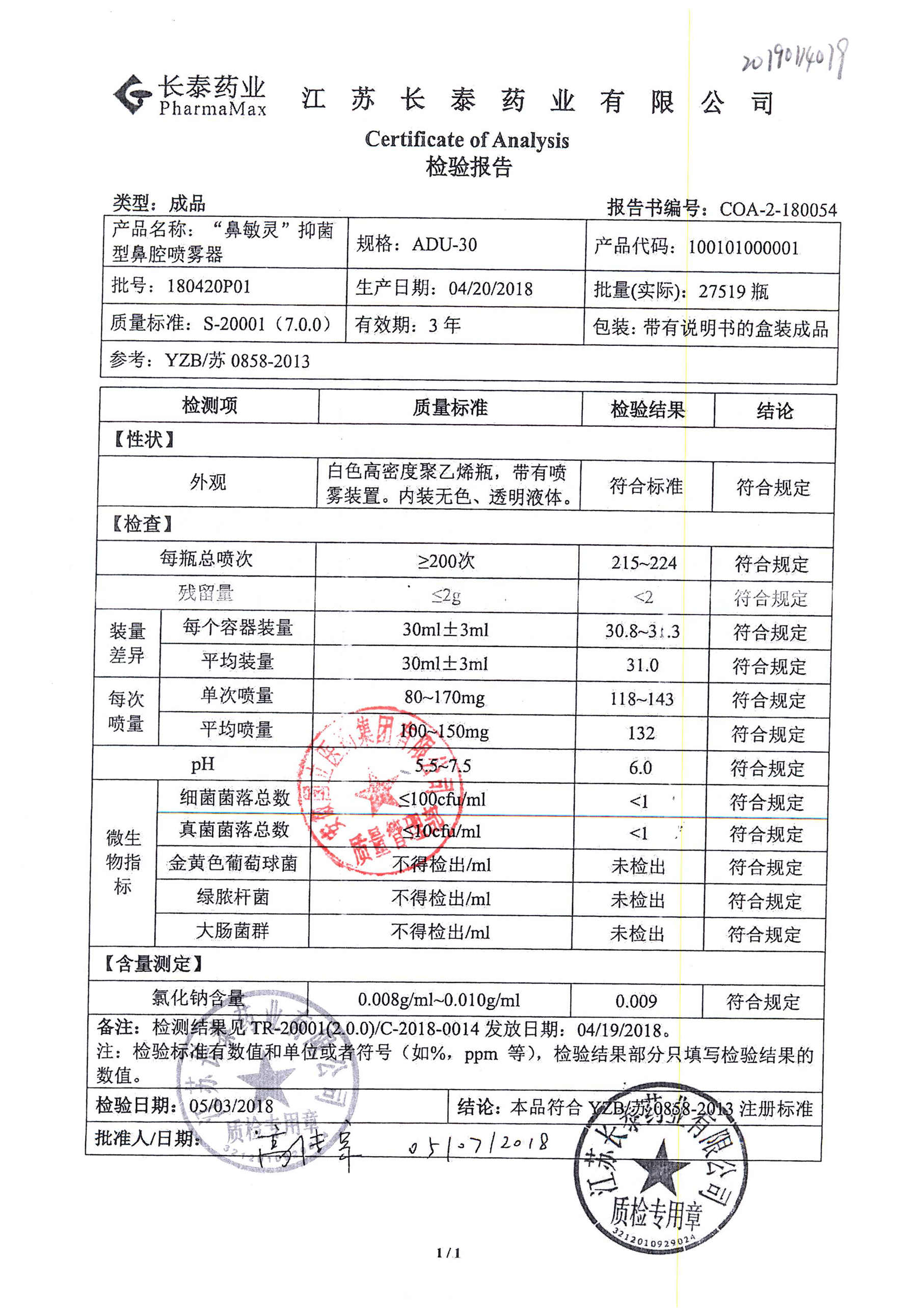 抑菌型鼻腔喷雾剂(鼻敏灵) | ADU-30 | 180420P01 | 查看详情 |