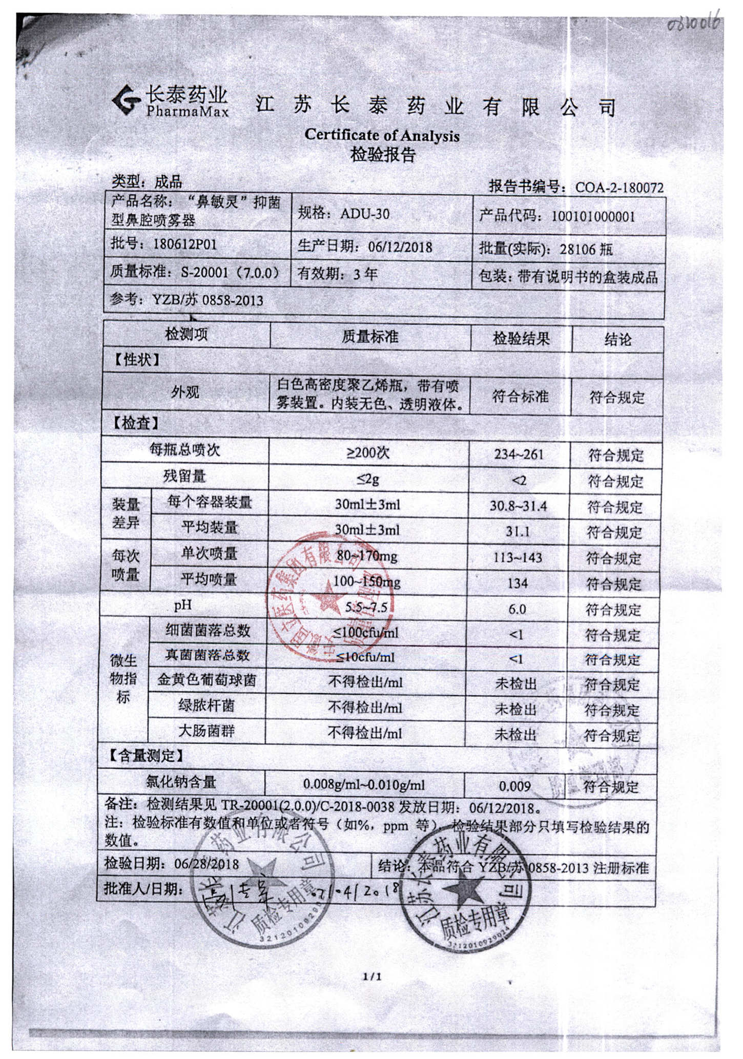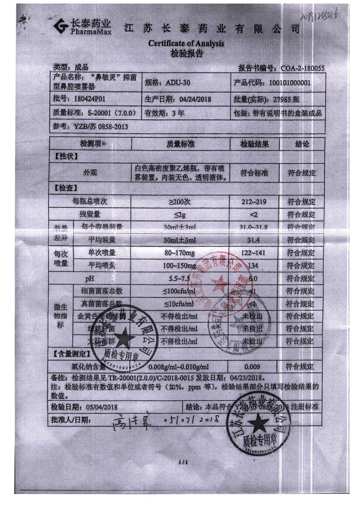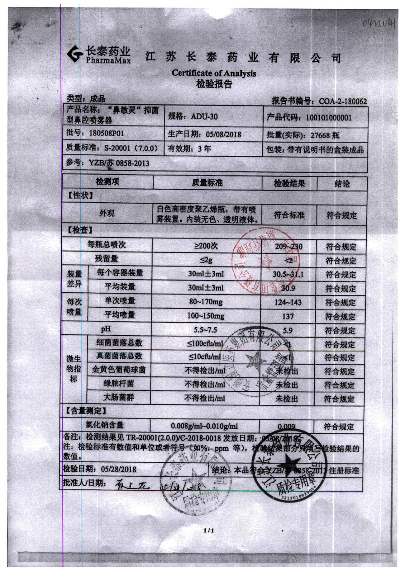 抑菌型鼻腔喷雾剂(鼻敏灵) | ADU-30 | 180516P01 | 查看详情 |