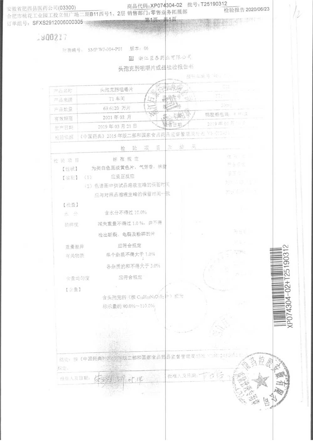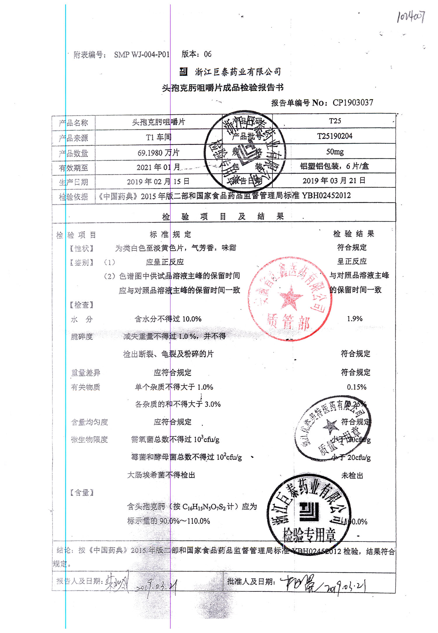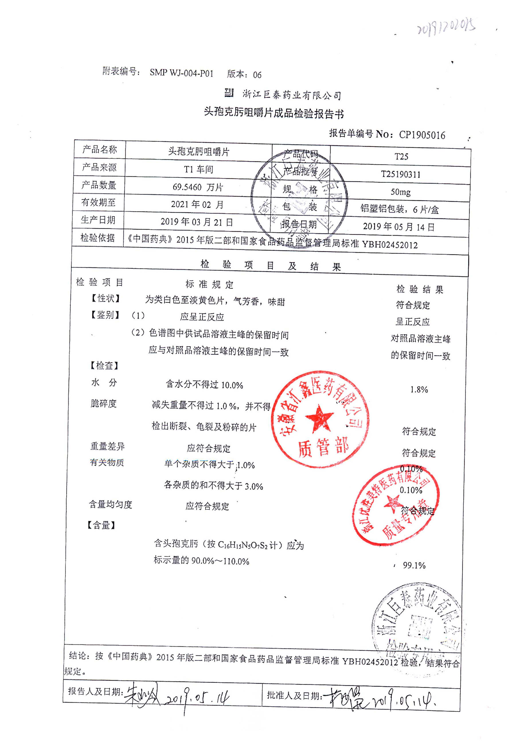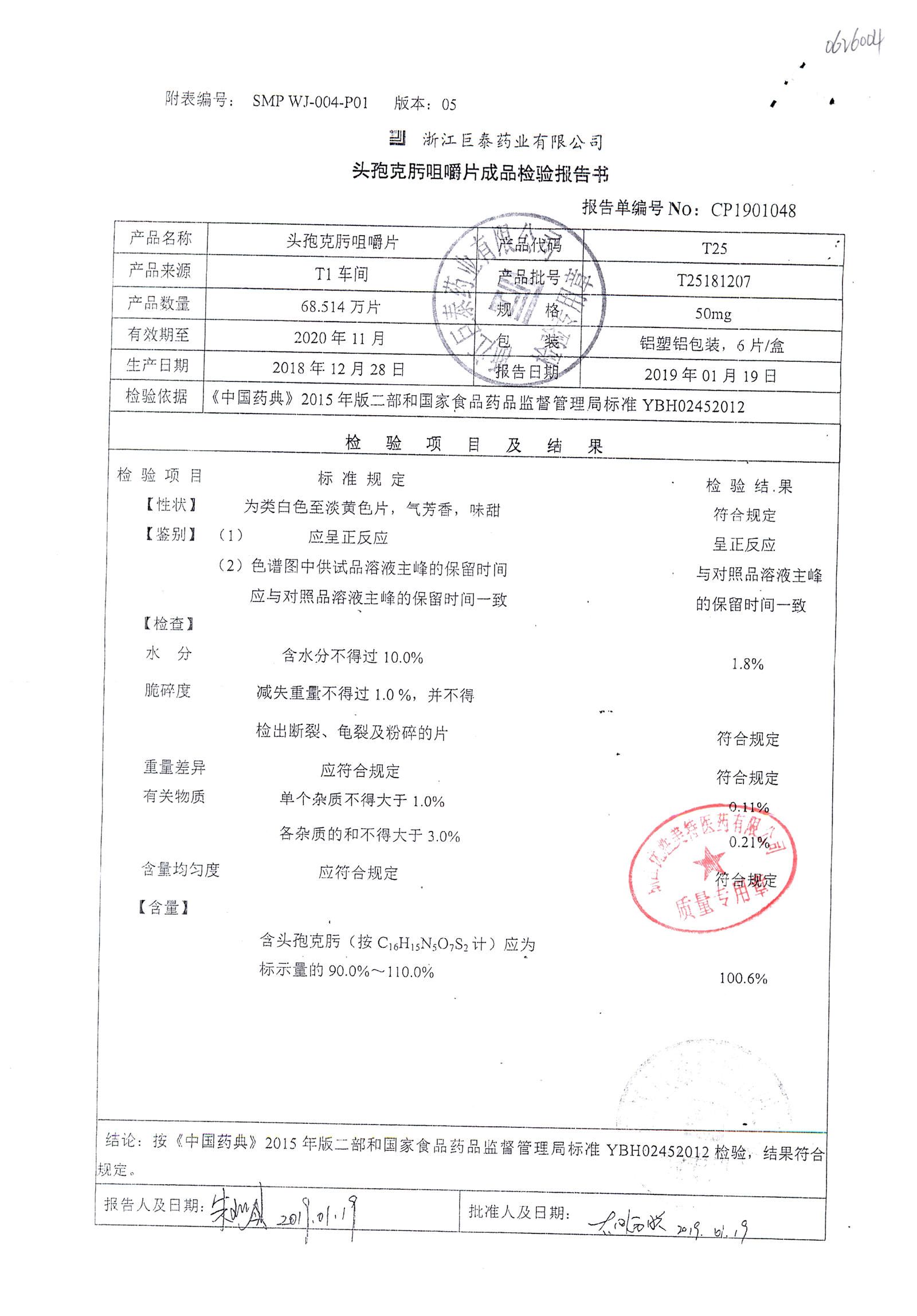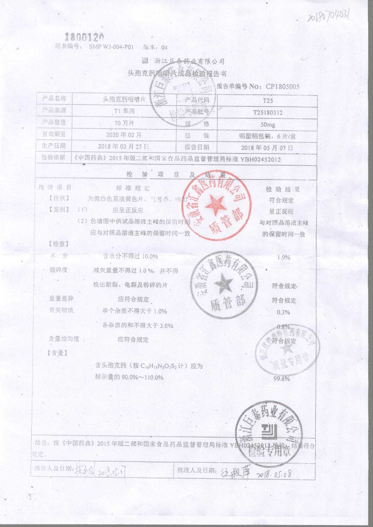 头孢克肟咀嚼片 | 50mg*6s | T25190311 | 查看详情 |