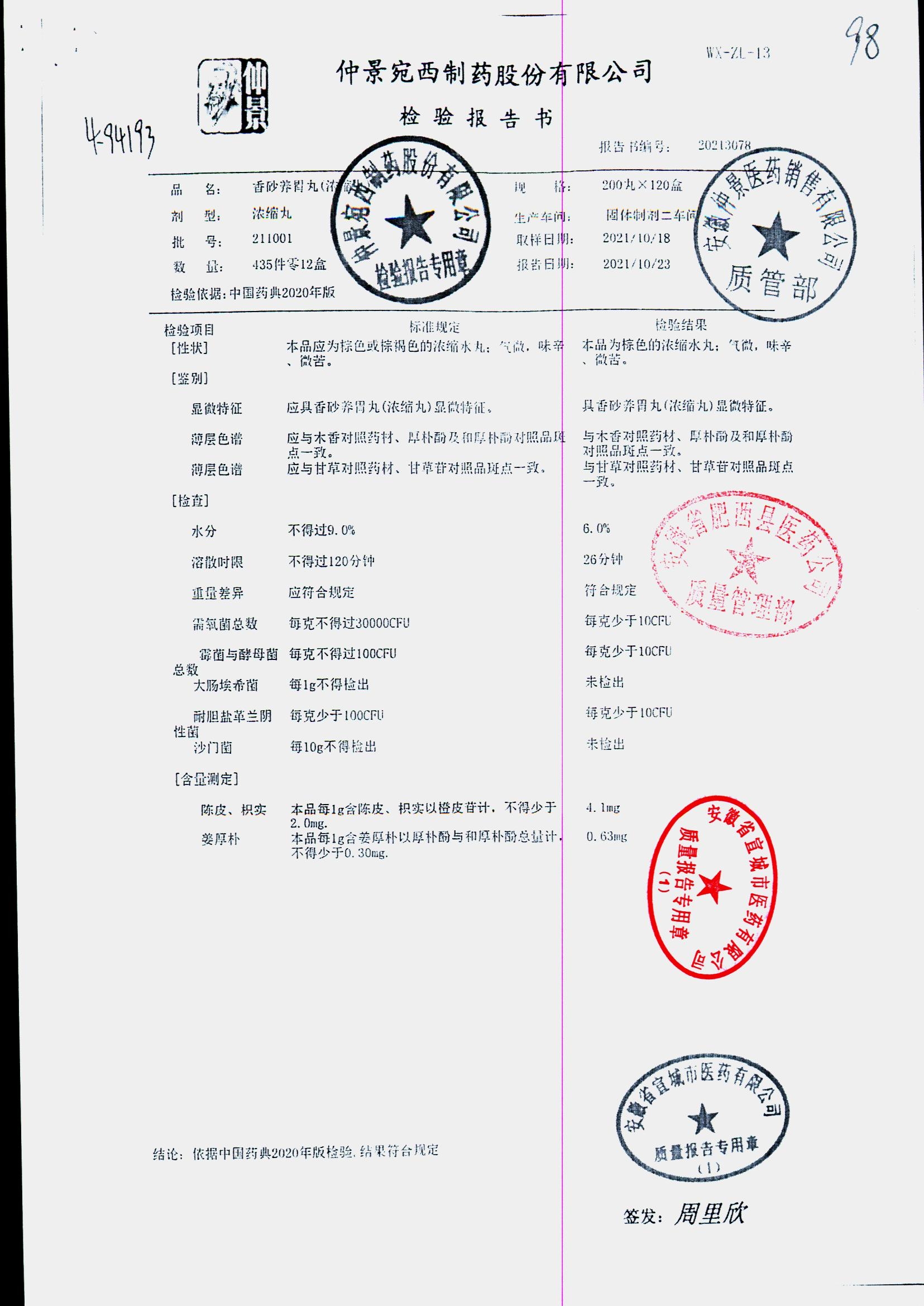 香砂养胃丸 | 200丸 | 211001 | 查看详情 |