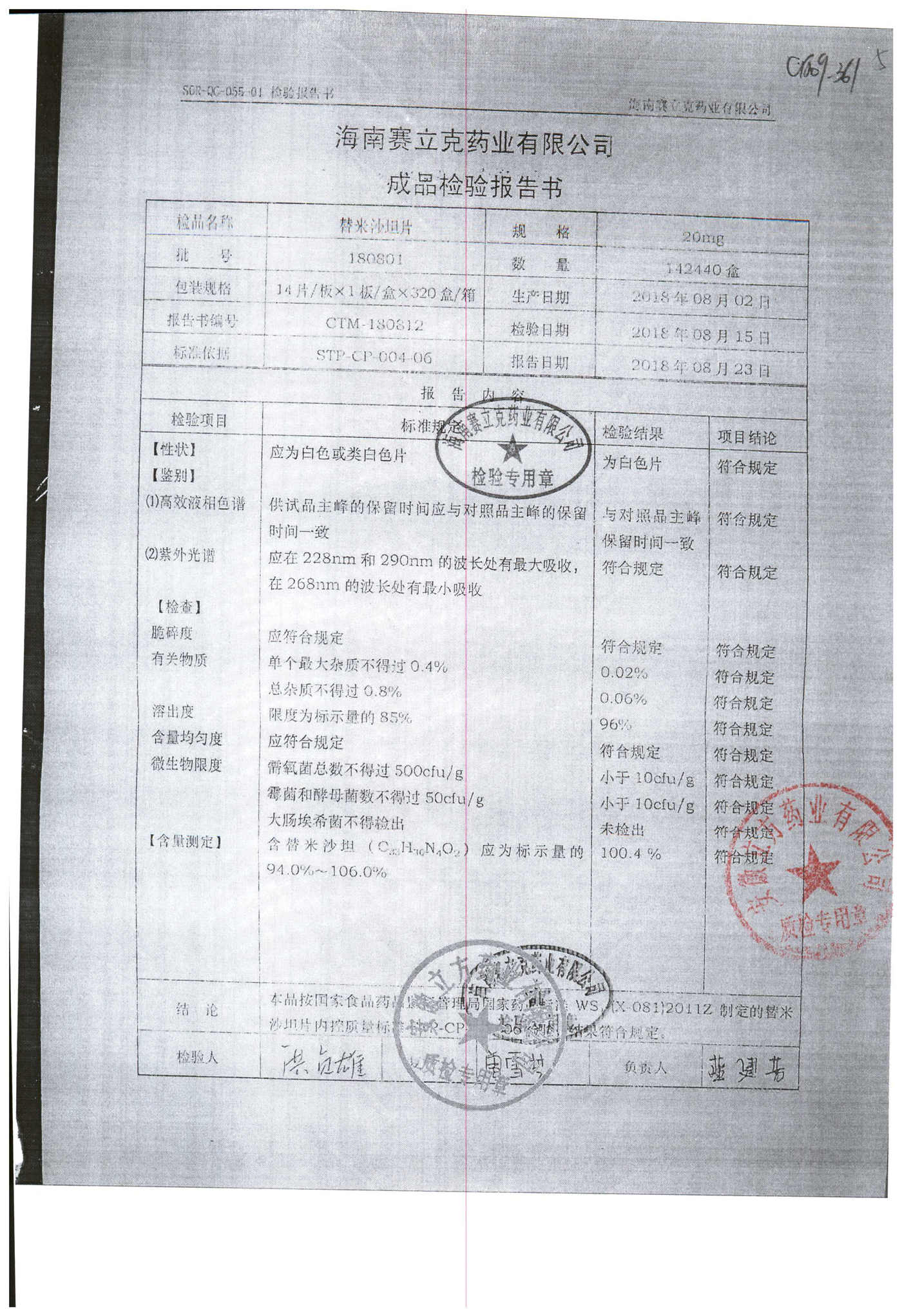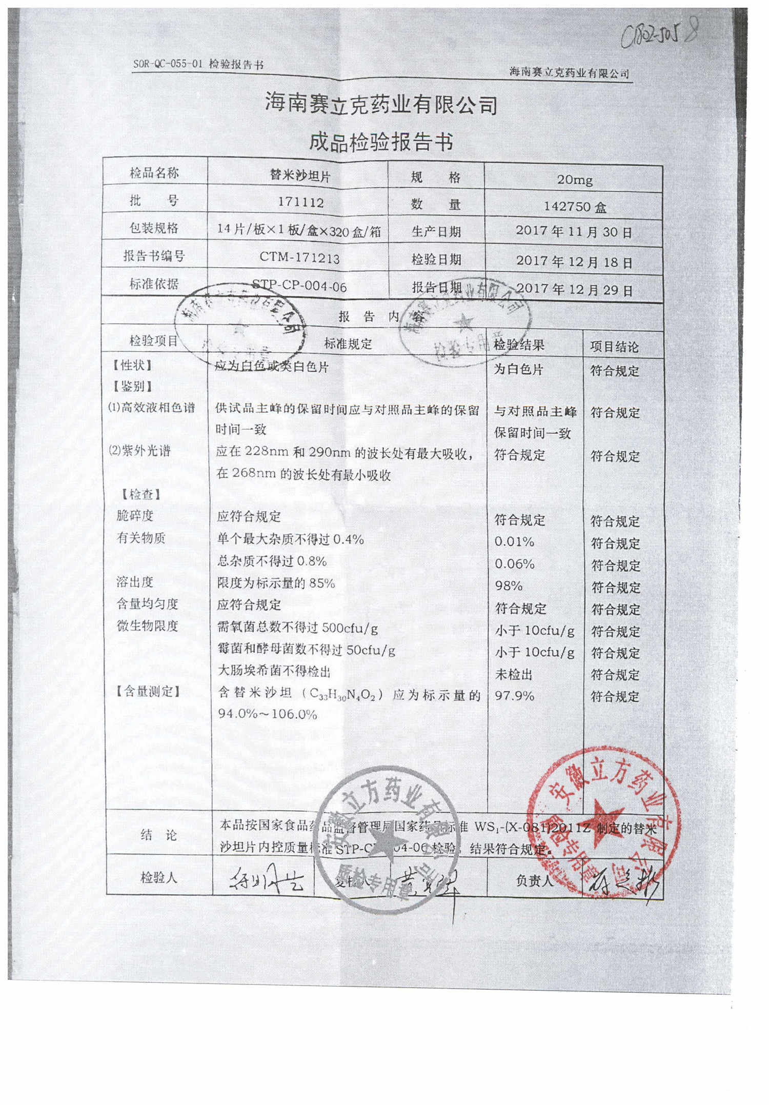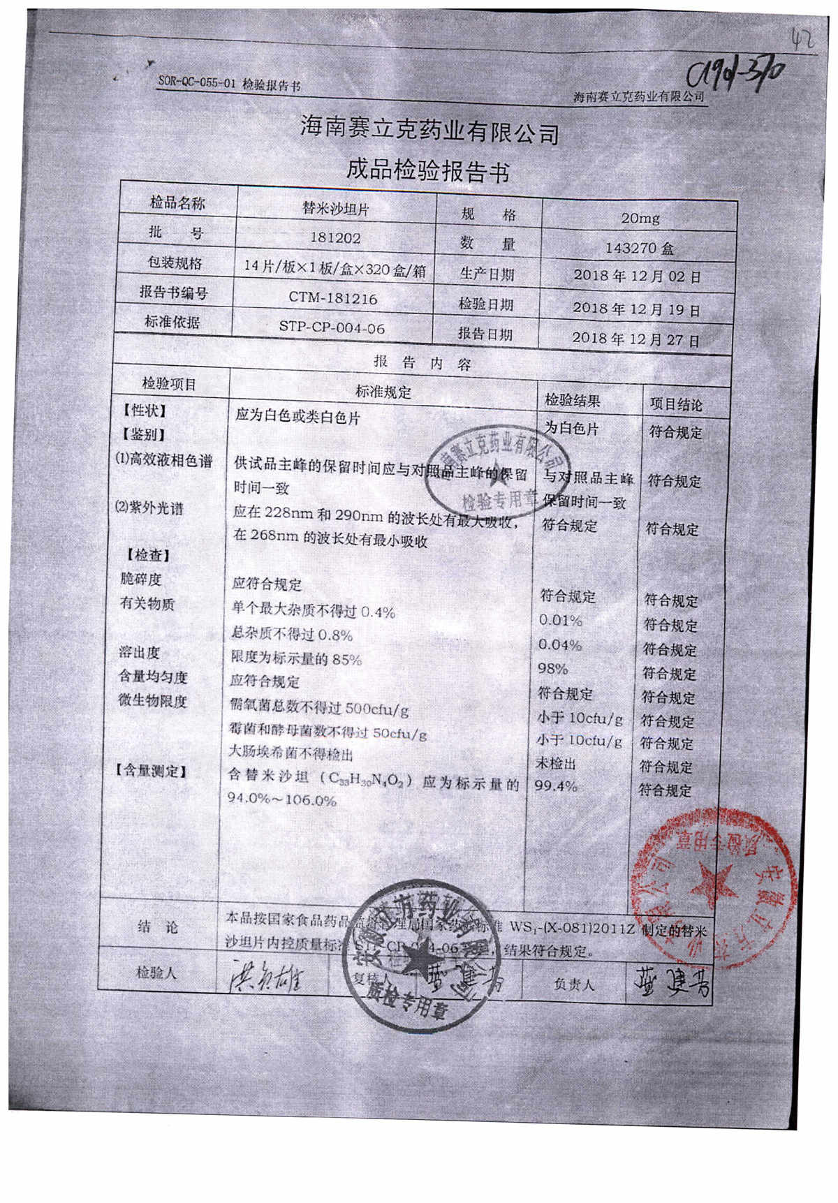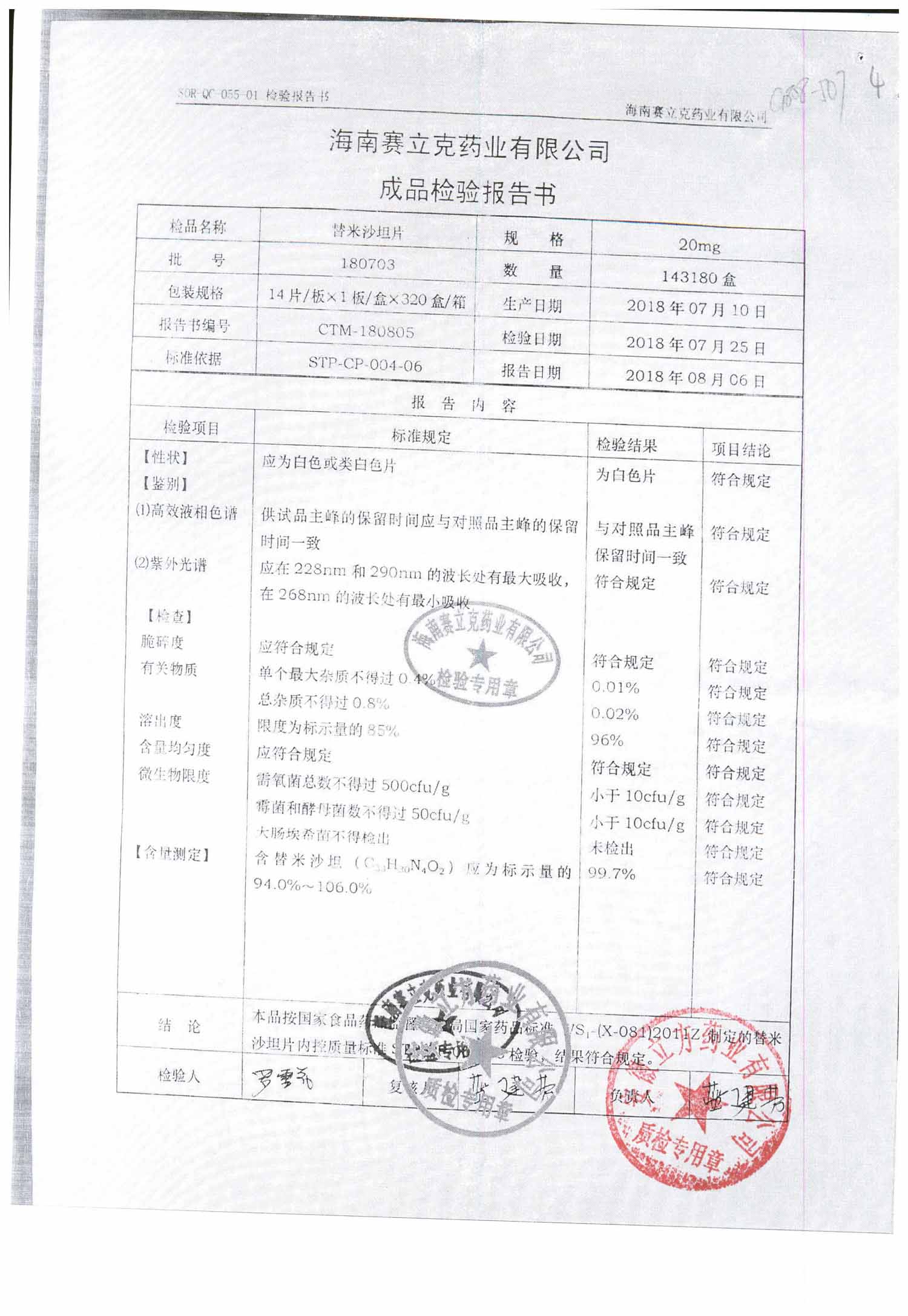替米沙坦片 | 20mg*14片 | 180801 | 查看详情 |