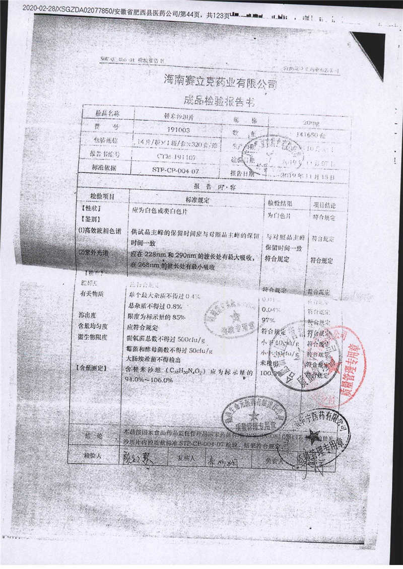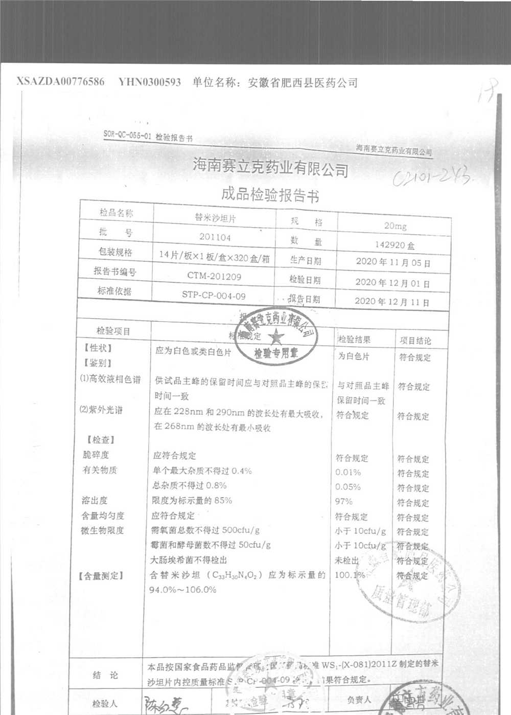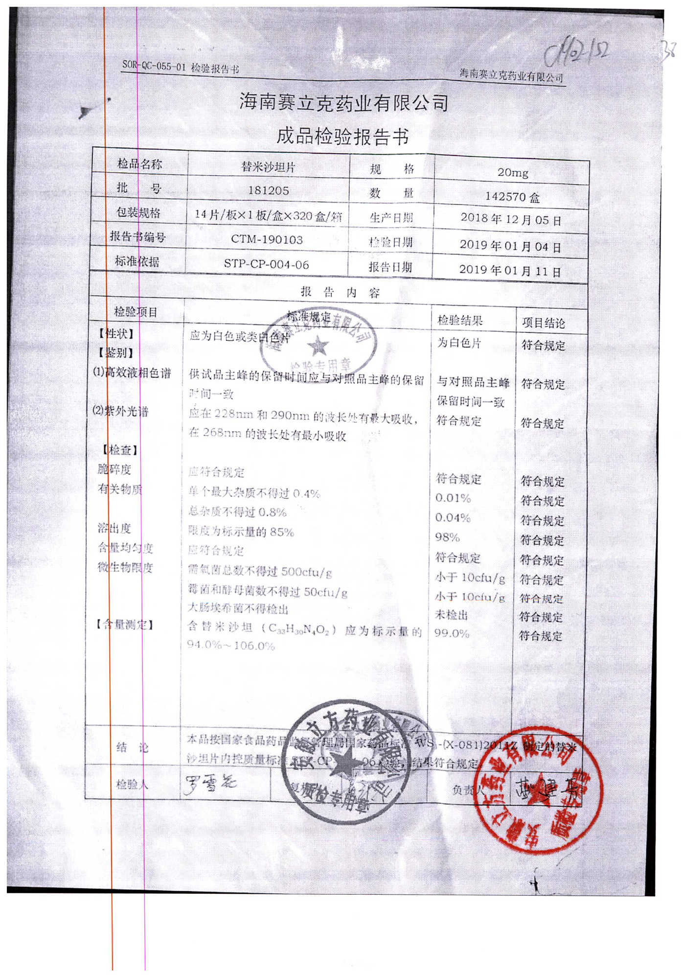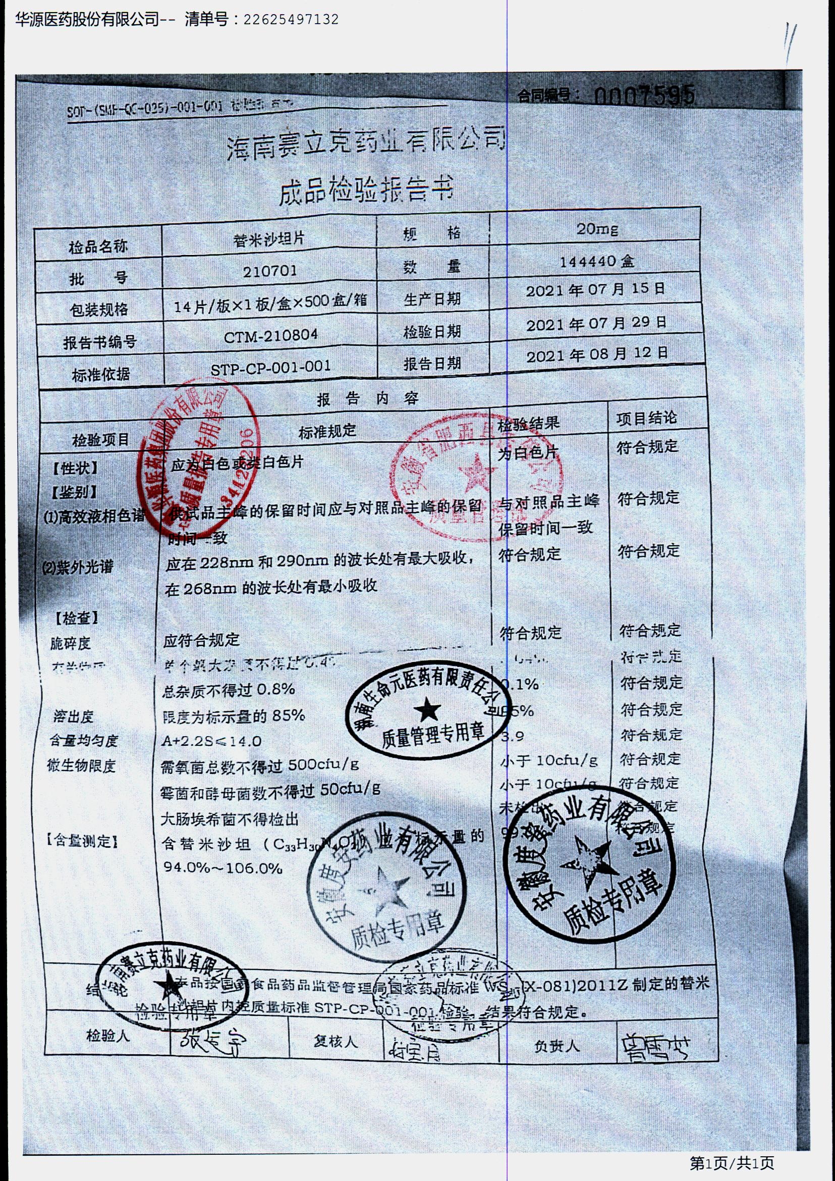 替米沙坦片 | 20mg*14片 | 210411 | 查看详情 |