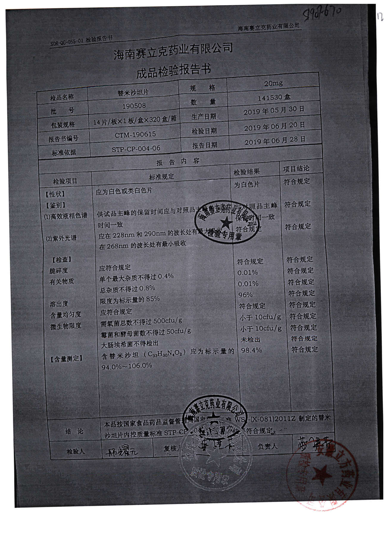 替米沙坦片 | 20mg*14片 | 190508 | 查看详情 |