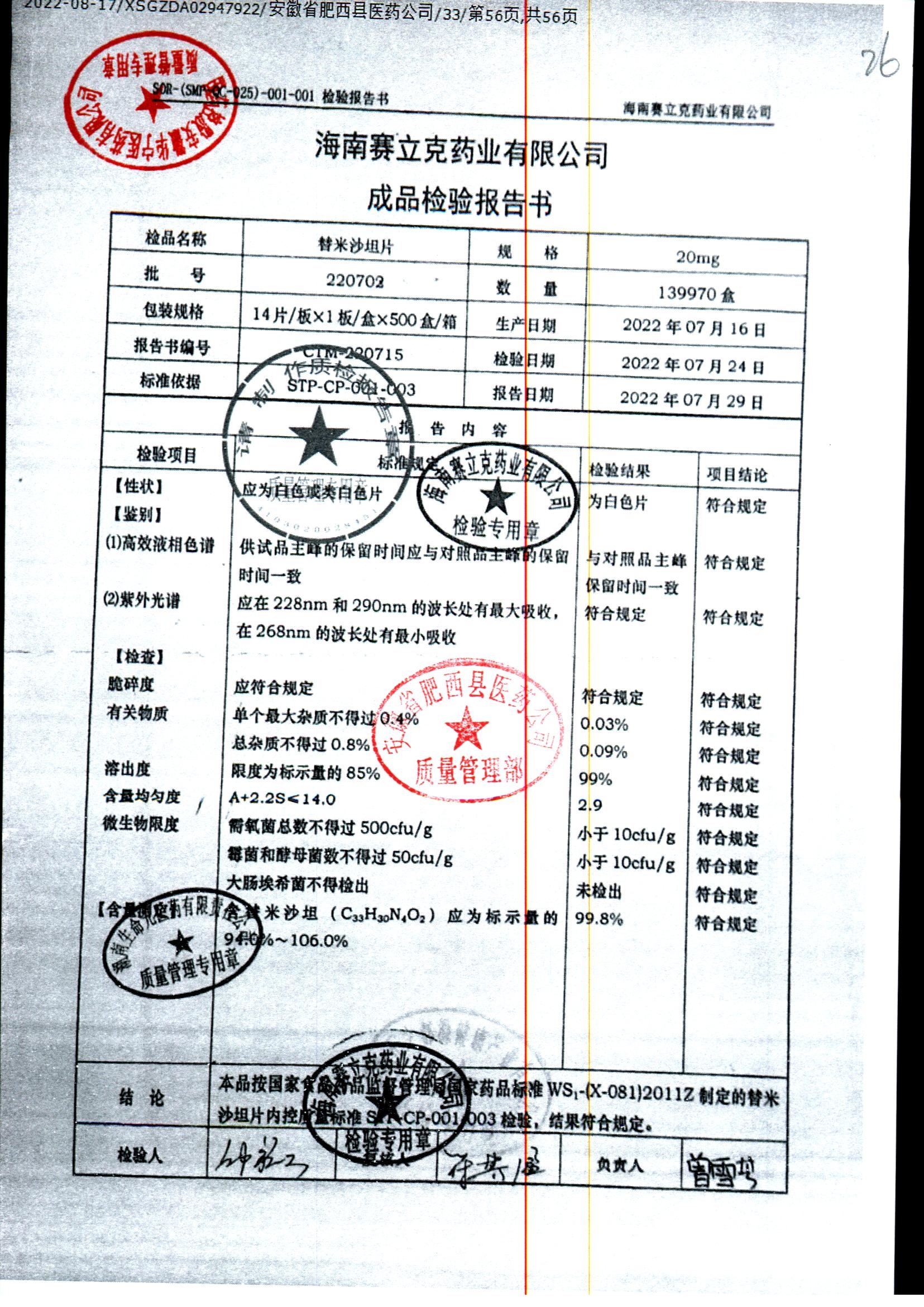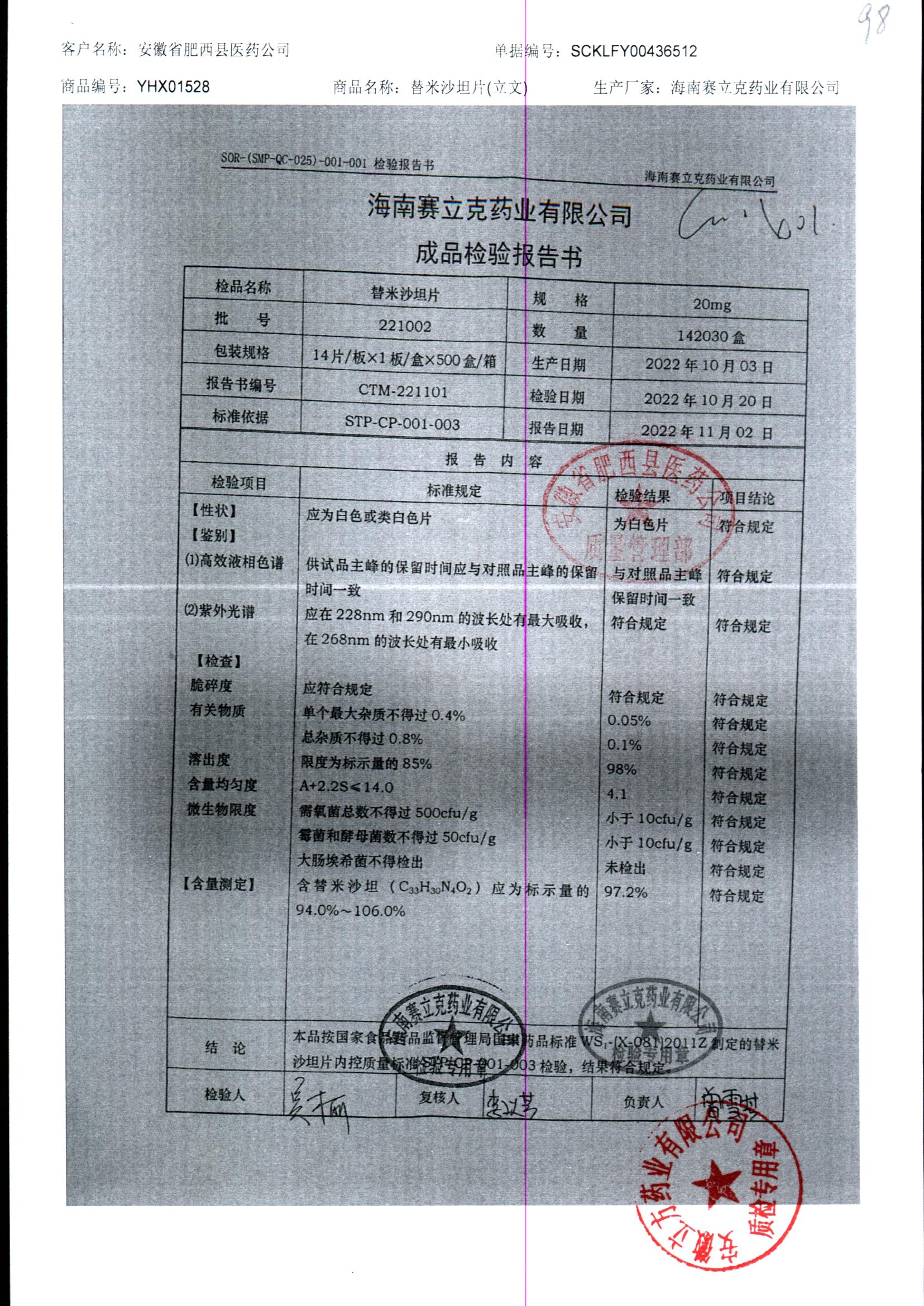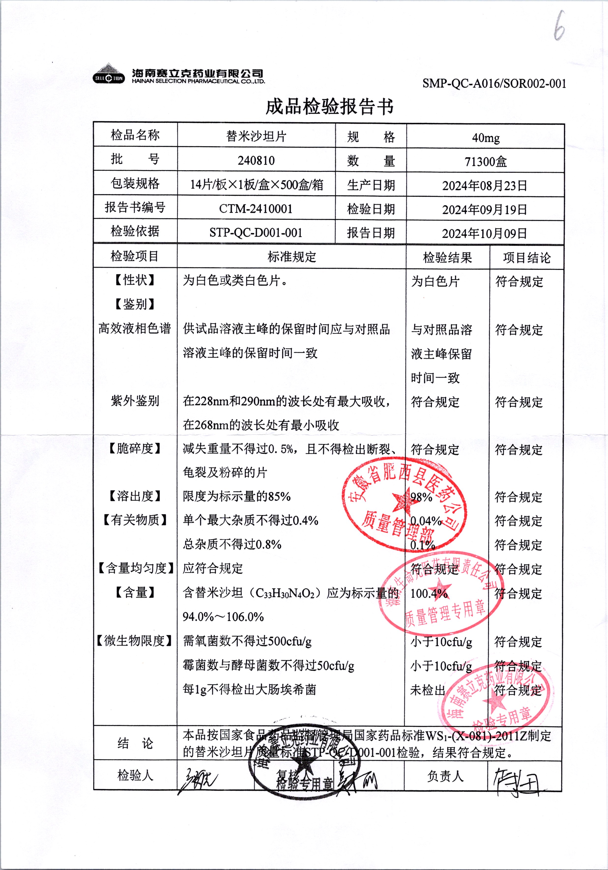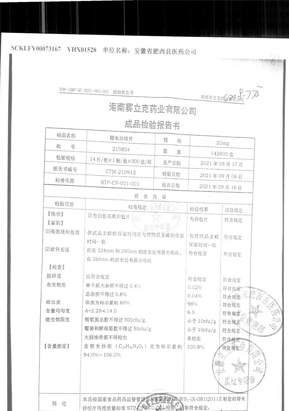 替米沙坦片 | 20mg*14片 | 210611 | 查看详情 |