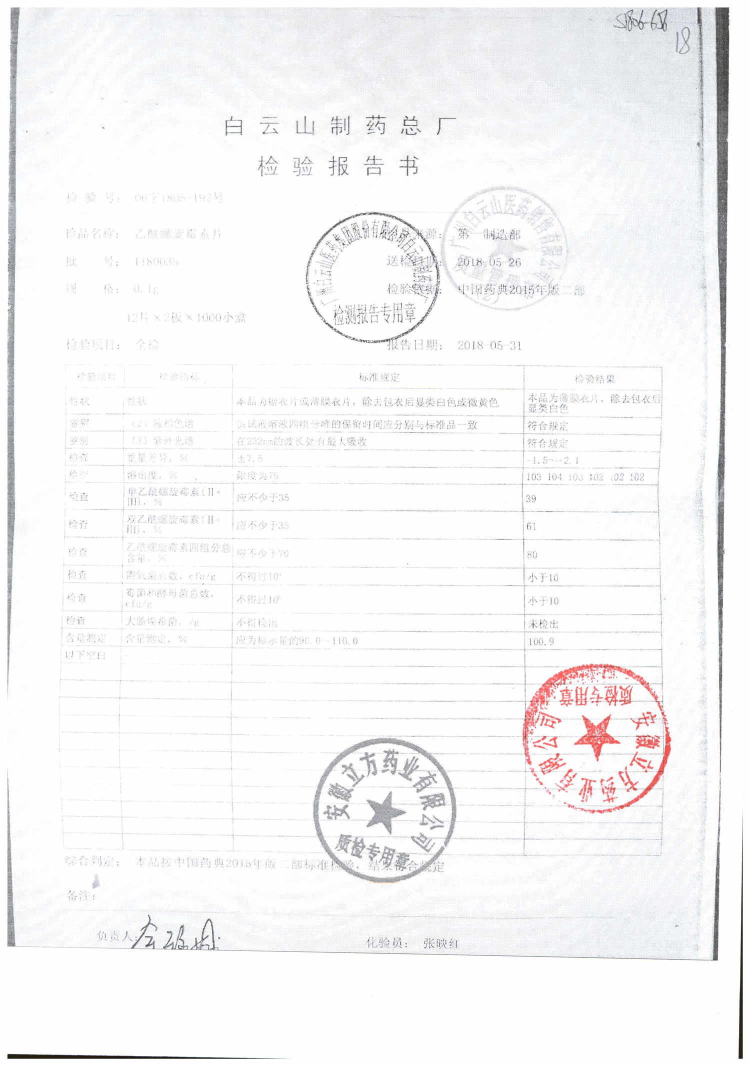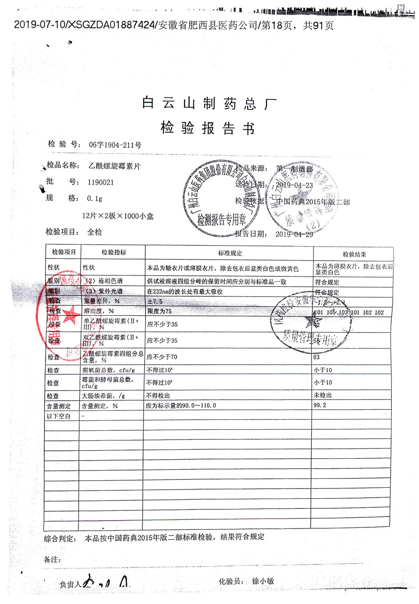 乙酰螺旋霉素片 | 0.1g*24片 | 1220006 | 查看详情 |