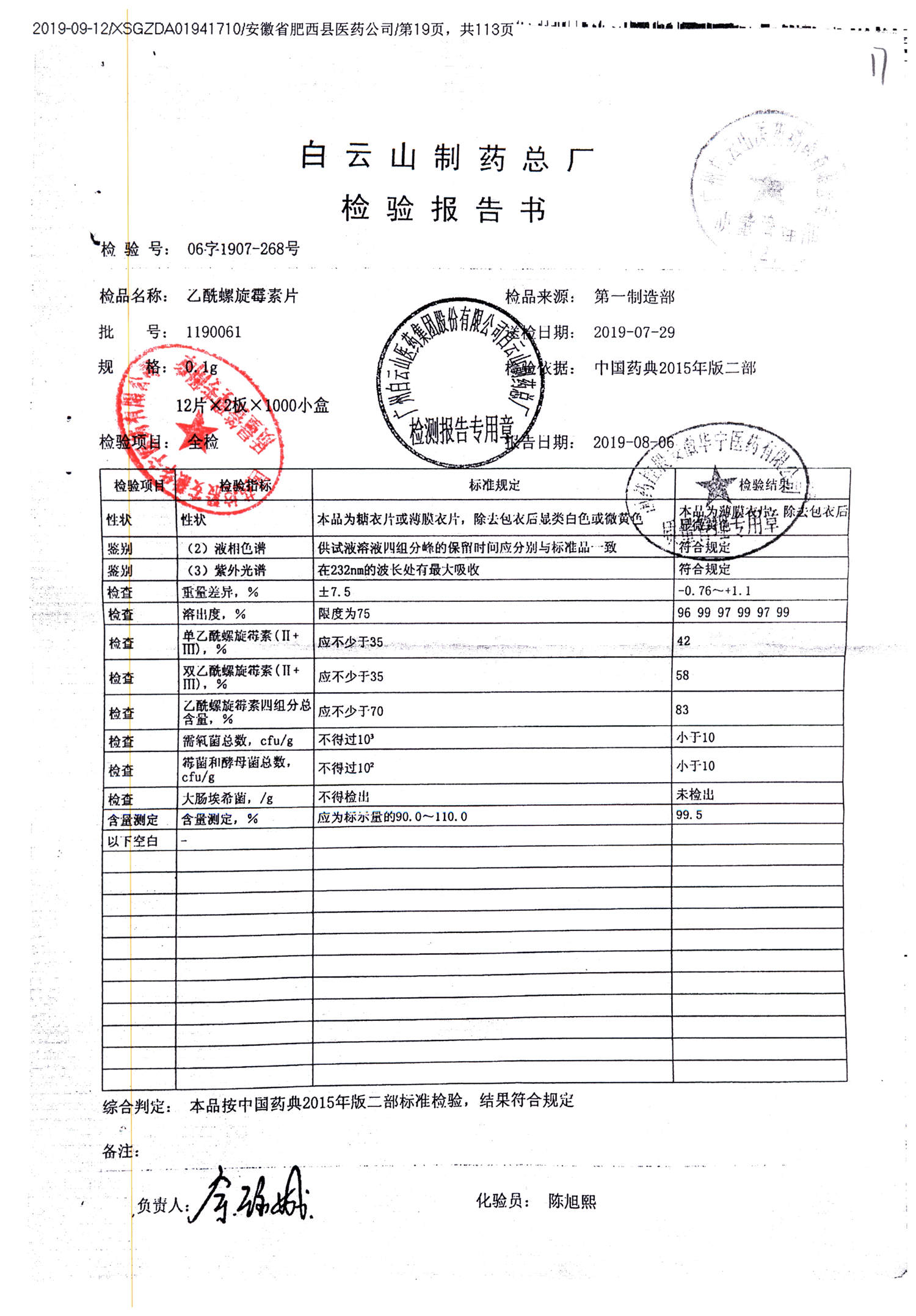 乙酰螺旋霉素片 | 0.1g*24片 | 1190061 | 查看详情 |