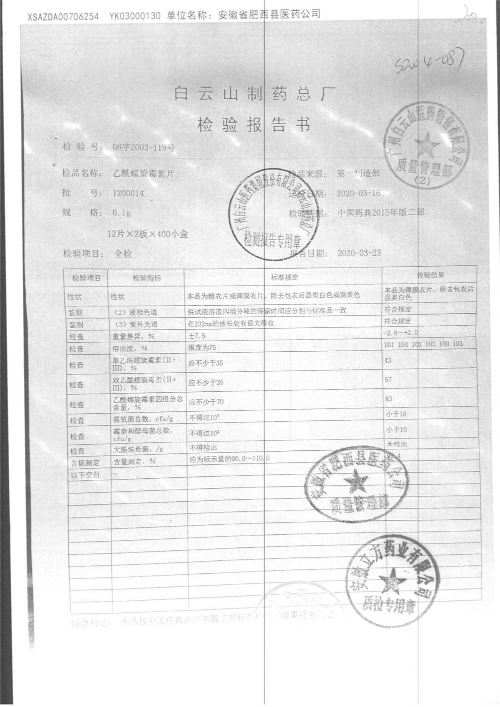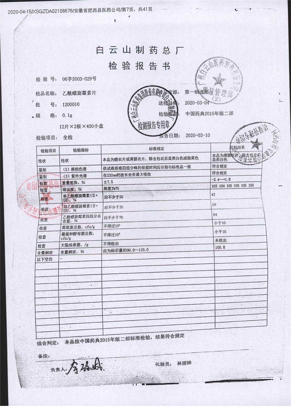 乙酰螺旋霉素片 | 0.1g*24片 | 1200056 | 查看详情 |