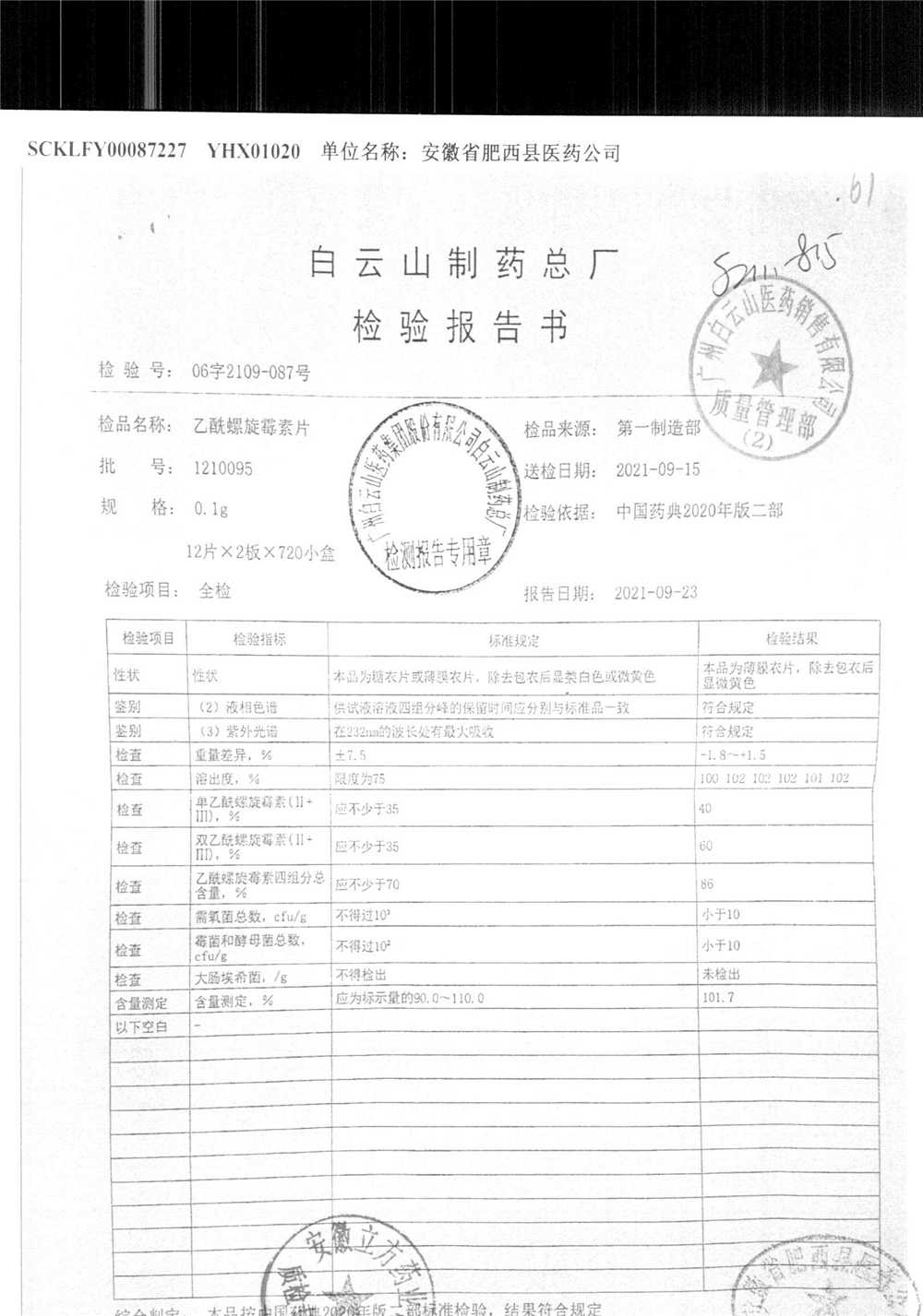 乙酰螺旋霉素片 | 0.1g*24片 | 1190021 | 查看详情 |