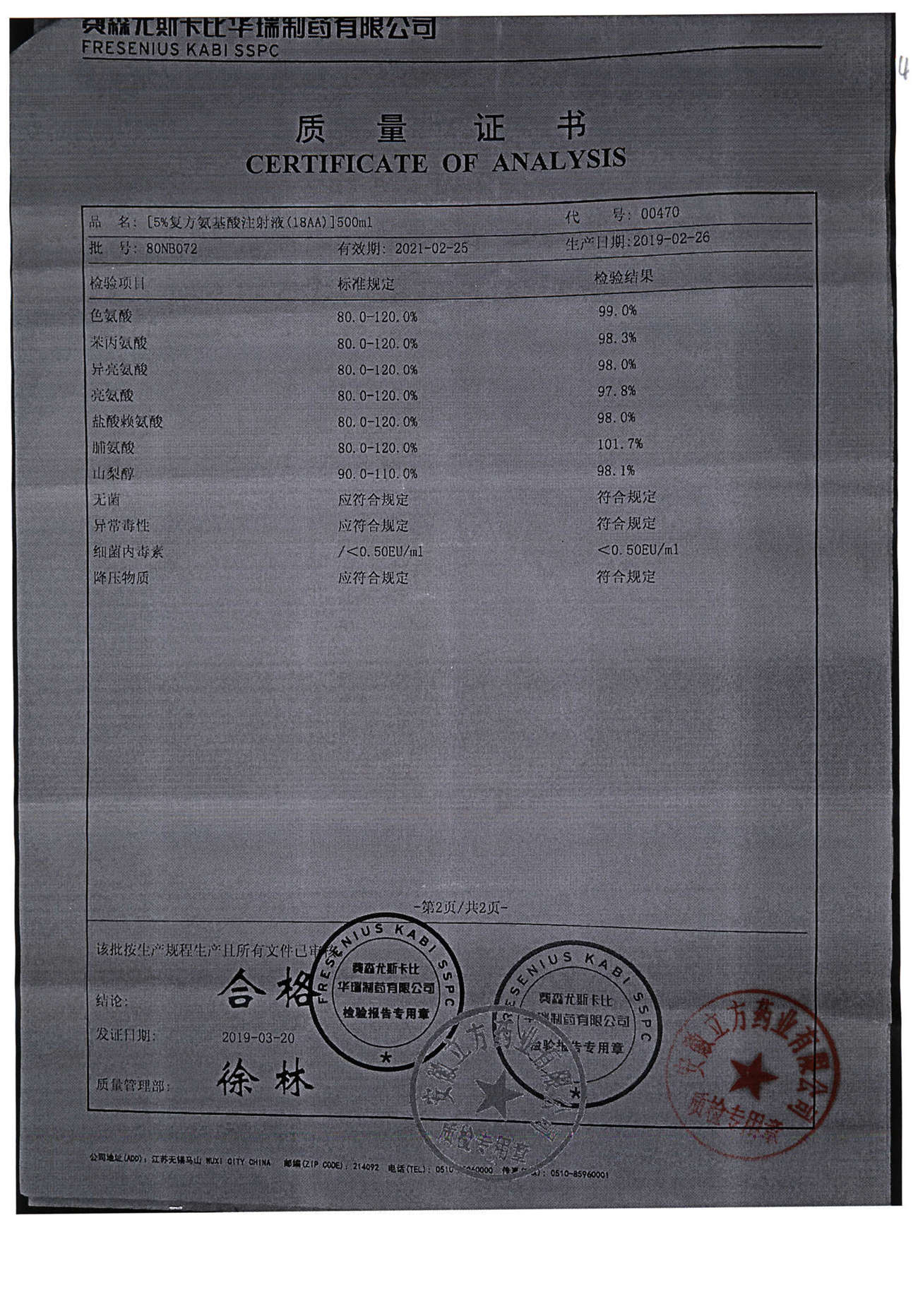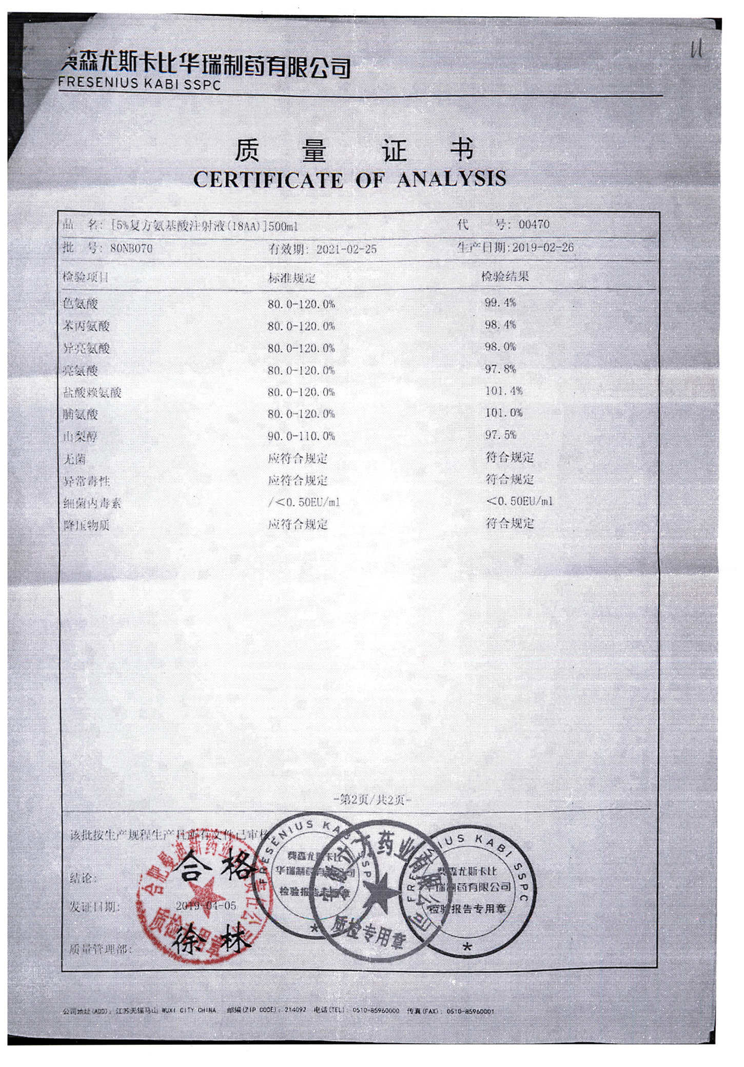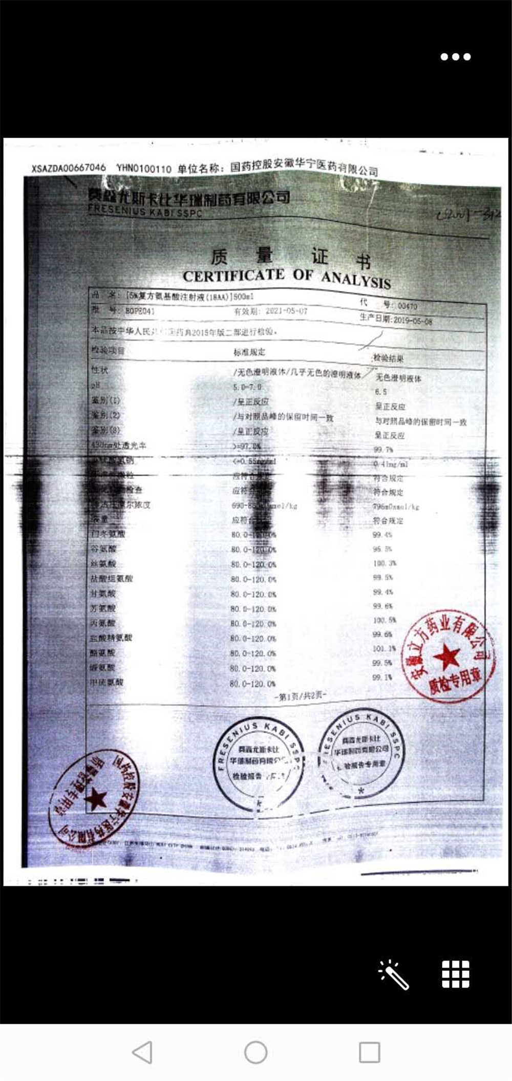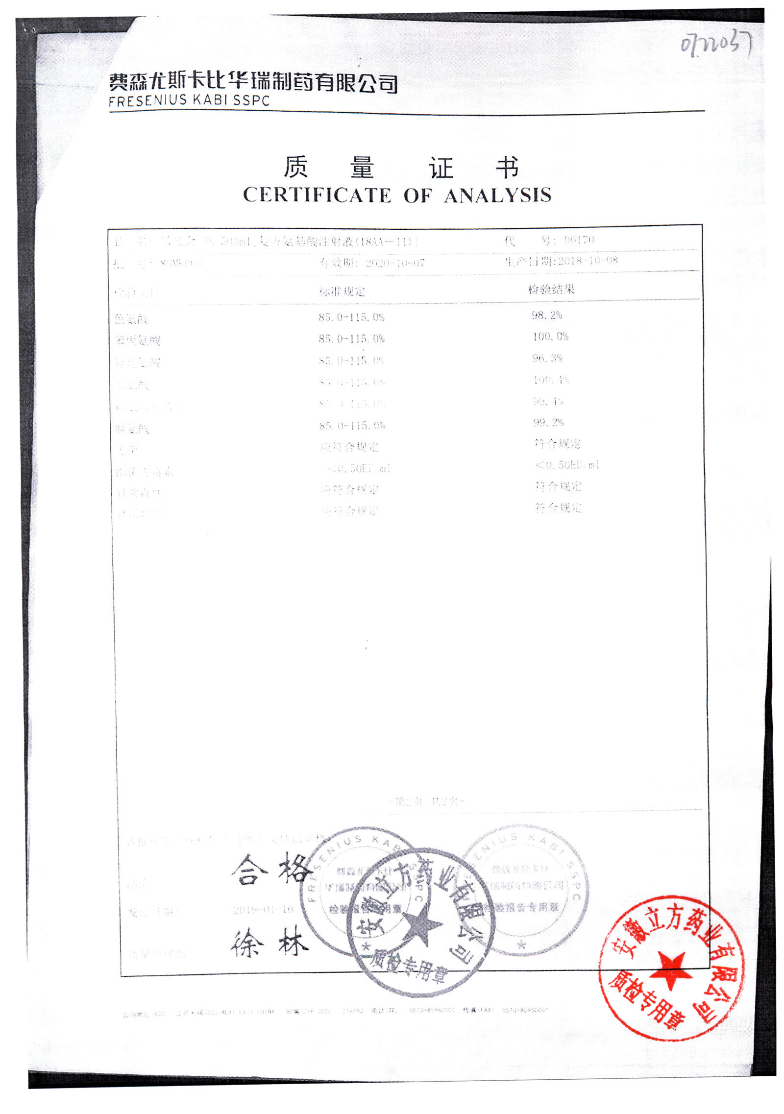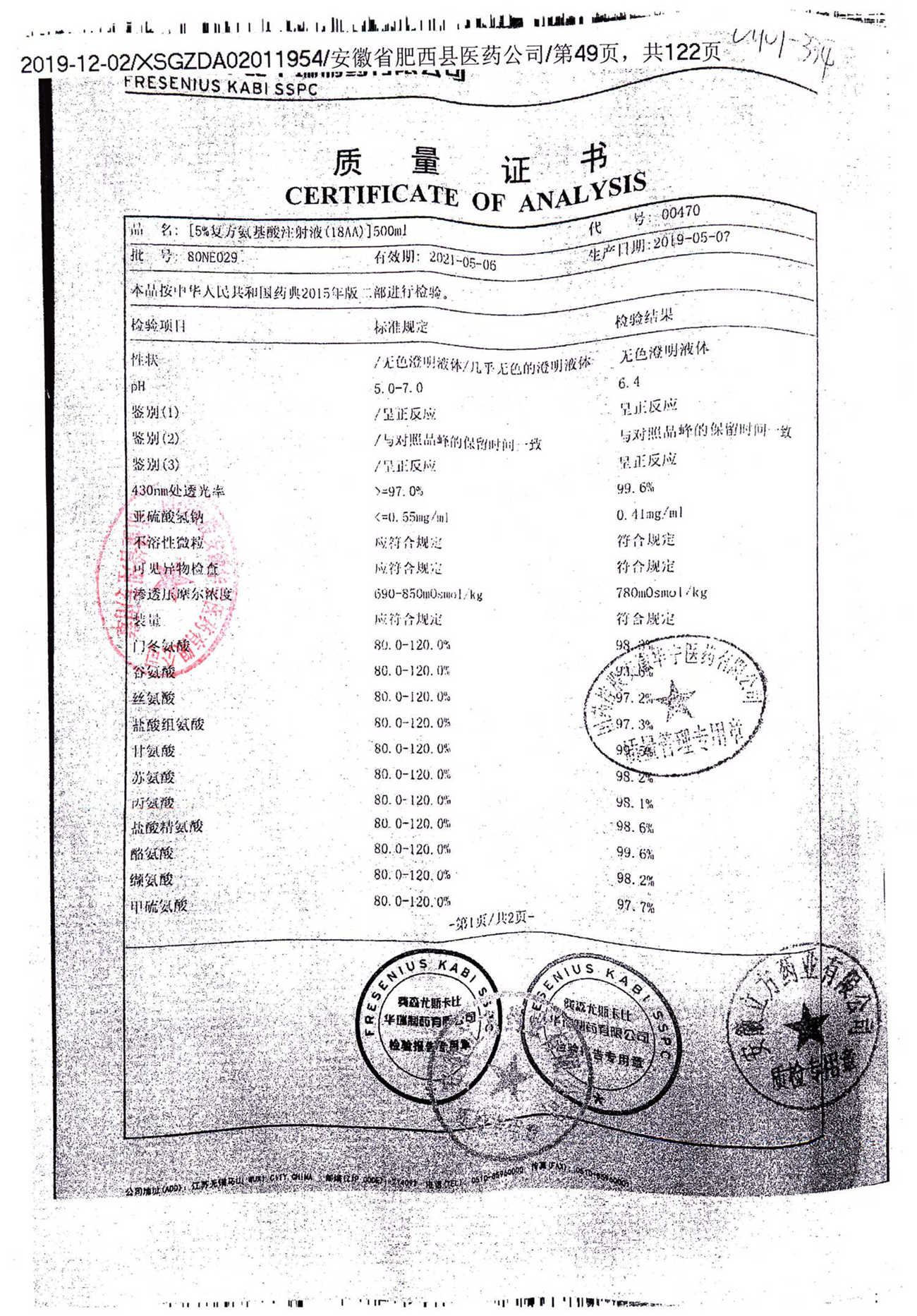 5%复方氨基酸注射液(18AA) | 500ml | 80LM052(2/2) | 查看详情 |
