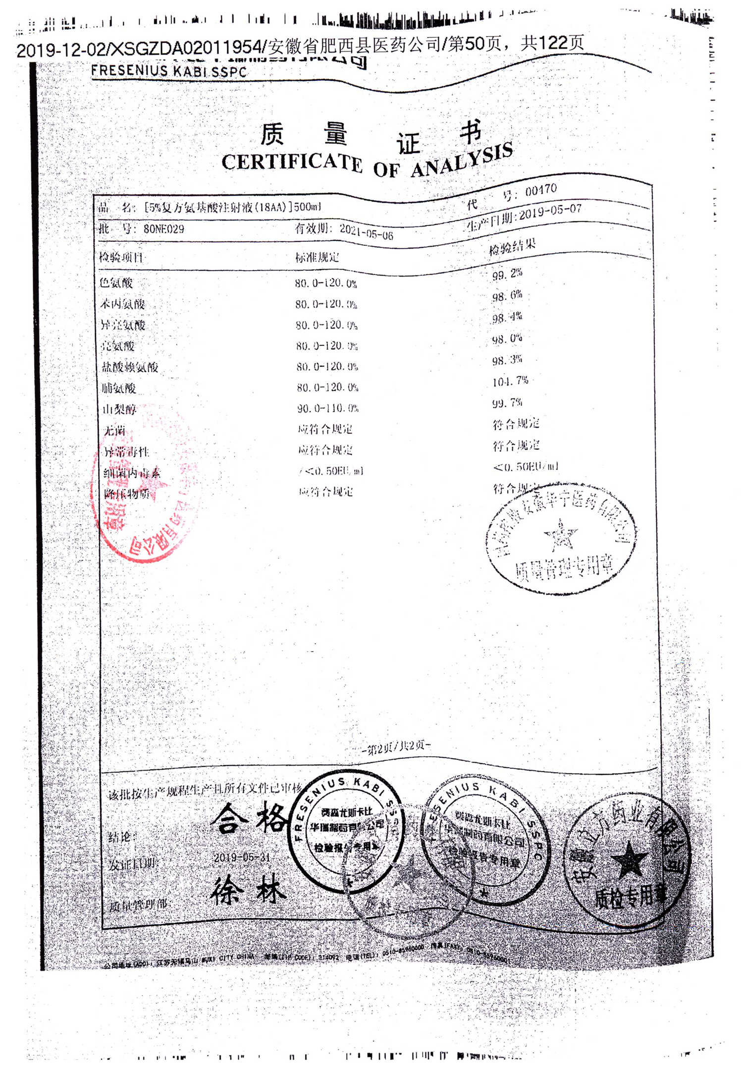 5%复方氨基酸注射液(18AA) | 500ml | 80MK006(2/2) | 查看详情 |