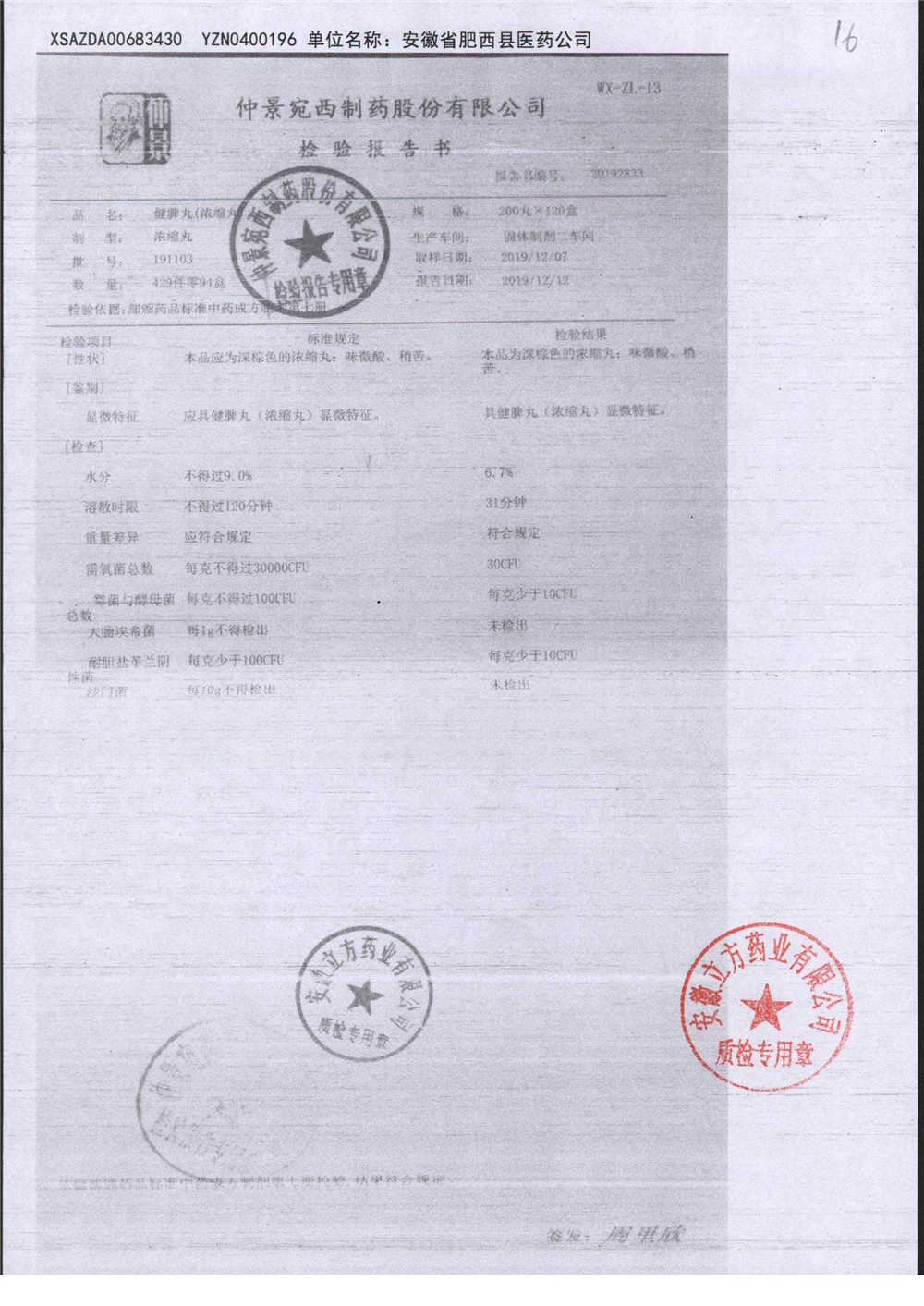 健脾丸 | 200丸 | 180902 | 查看详情 |