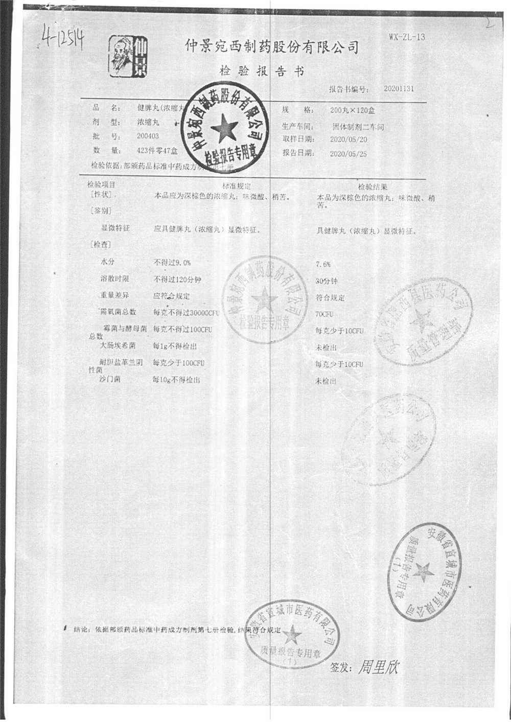 健脾丸 | 200丸 | 180501 | 查看详情 |