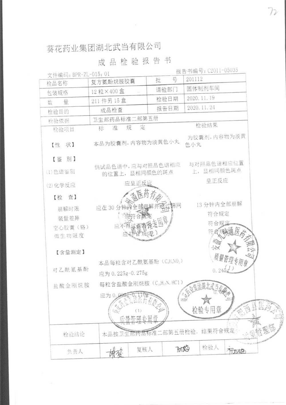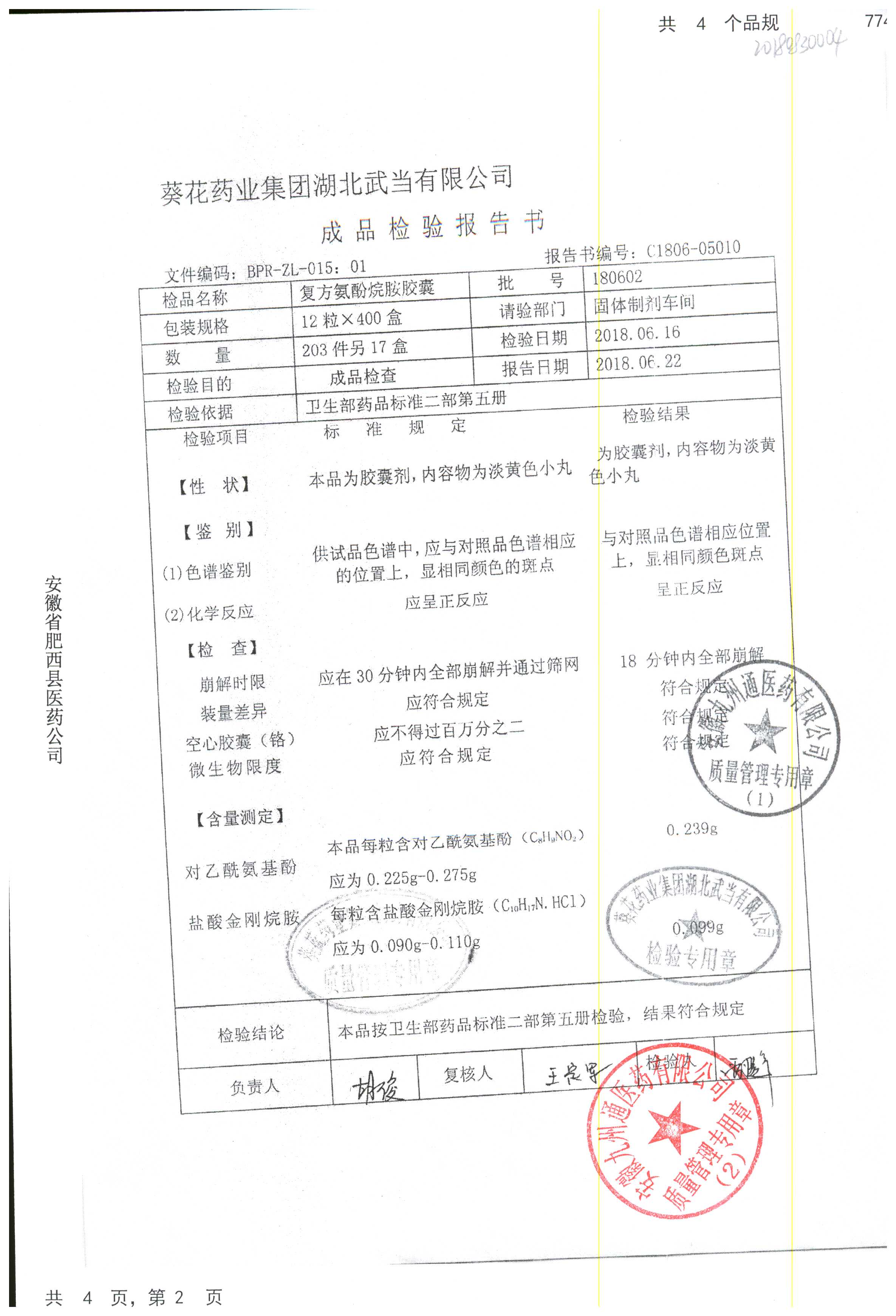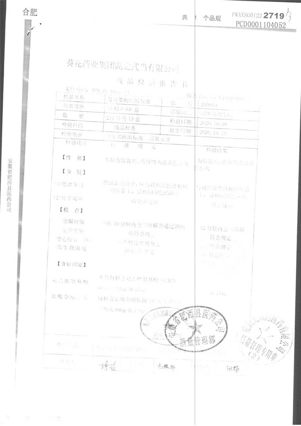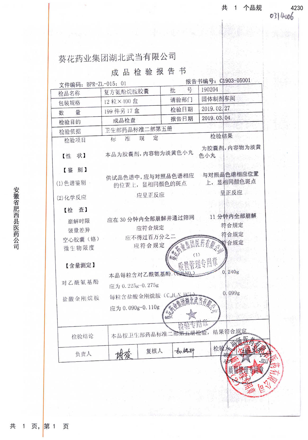 复方氨酚烷胺胶囊 | 12粒 | 190706 | 查看详情 |