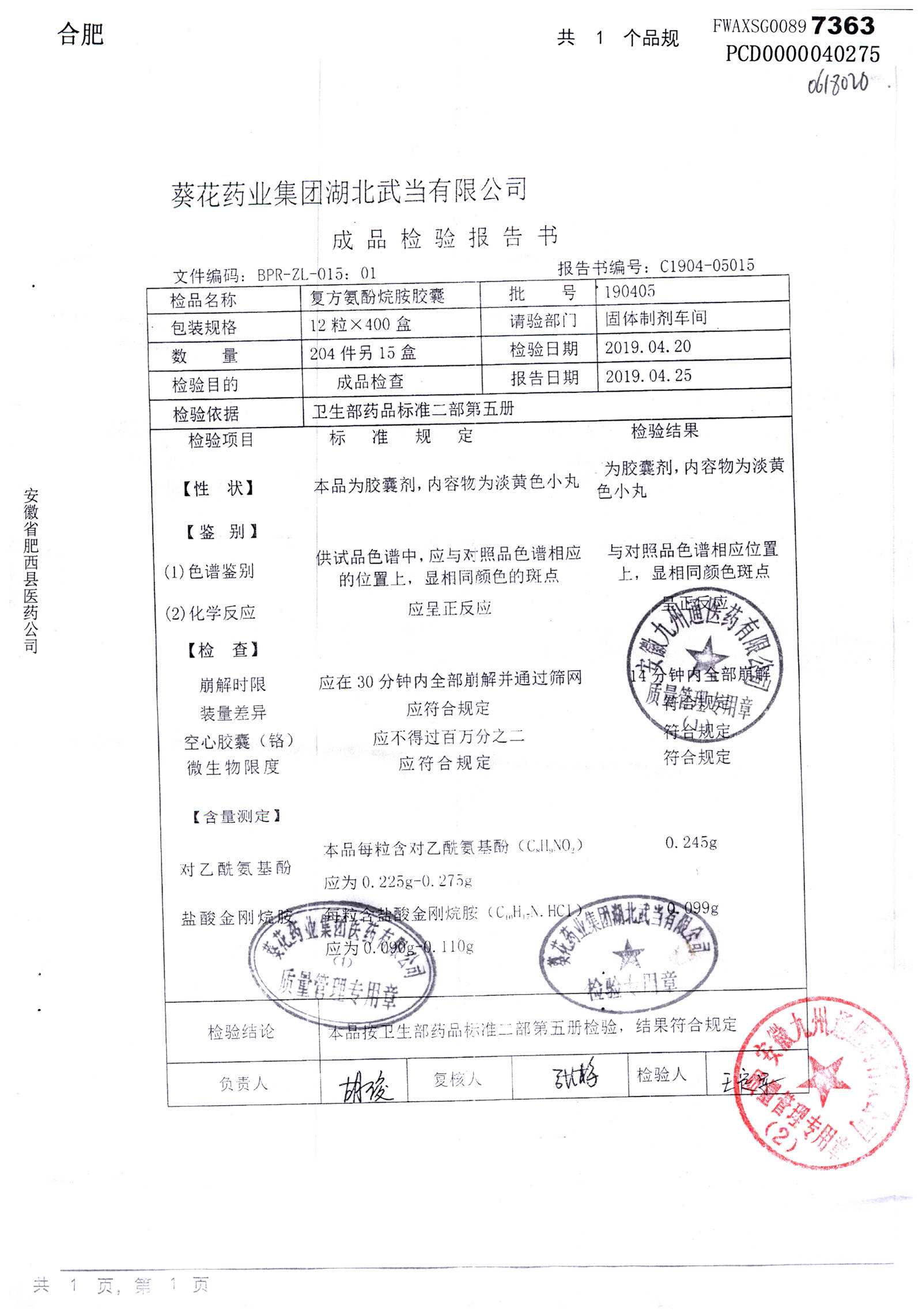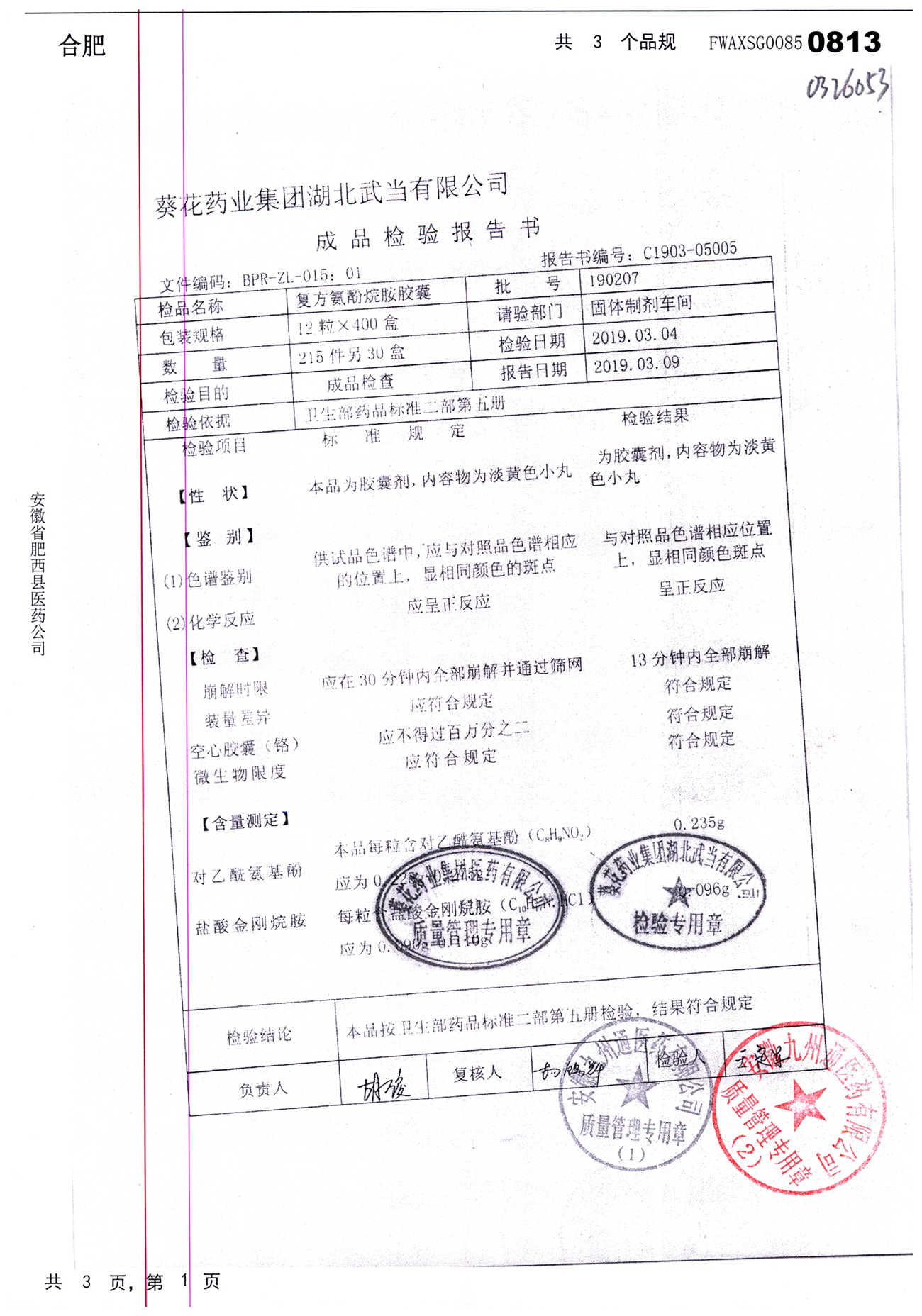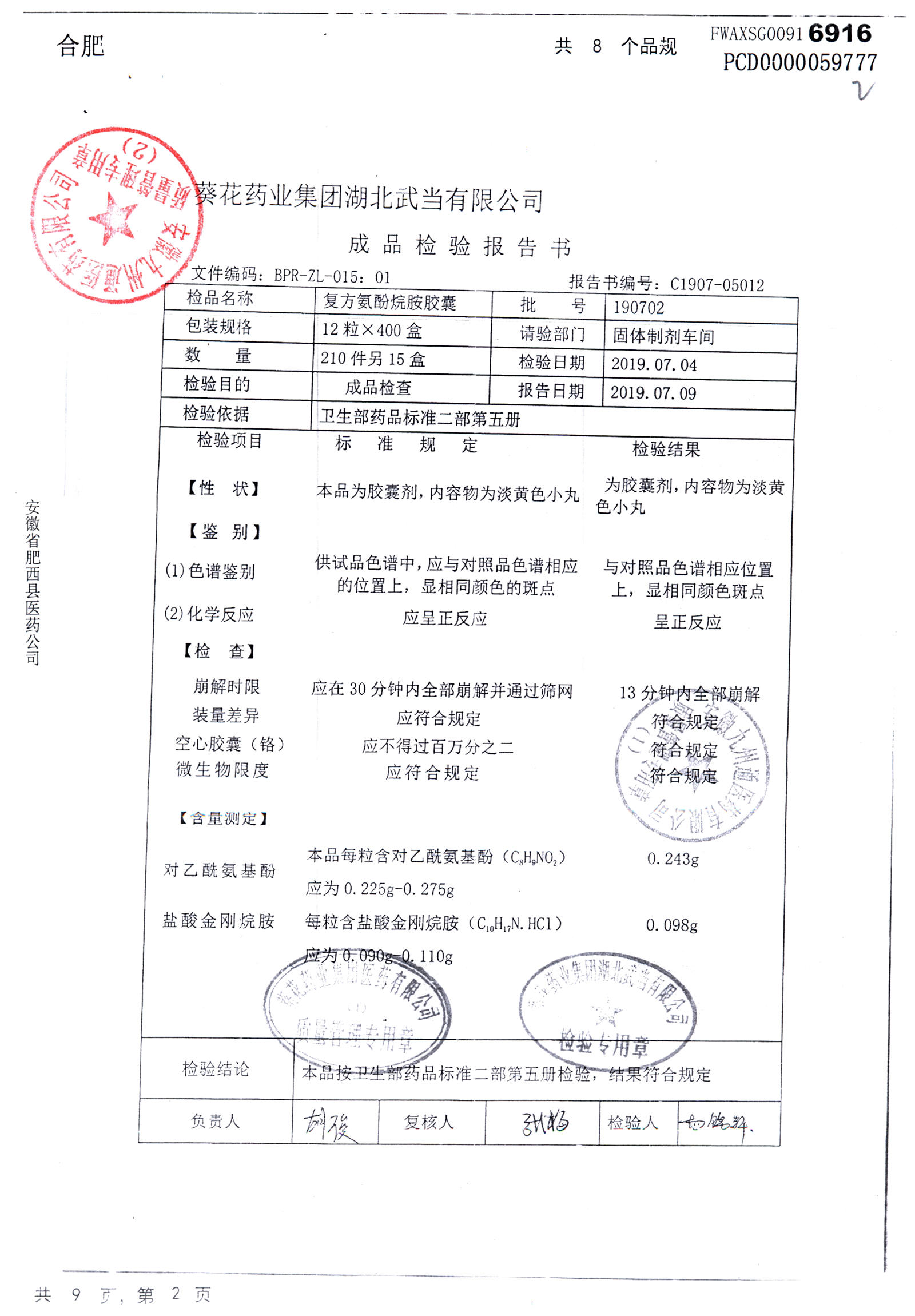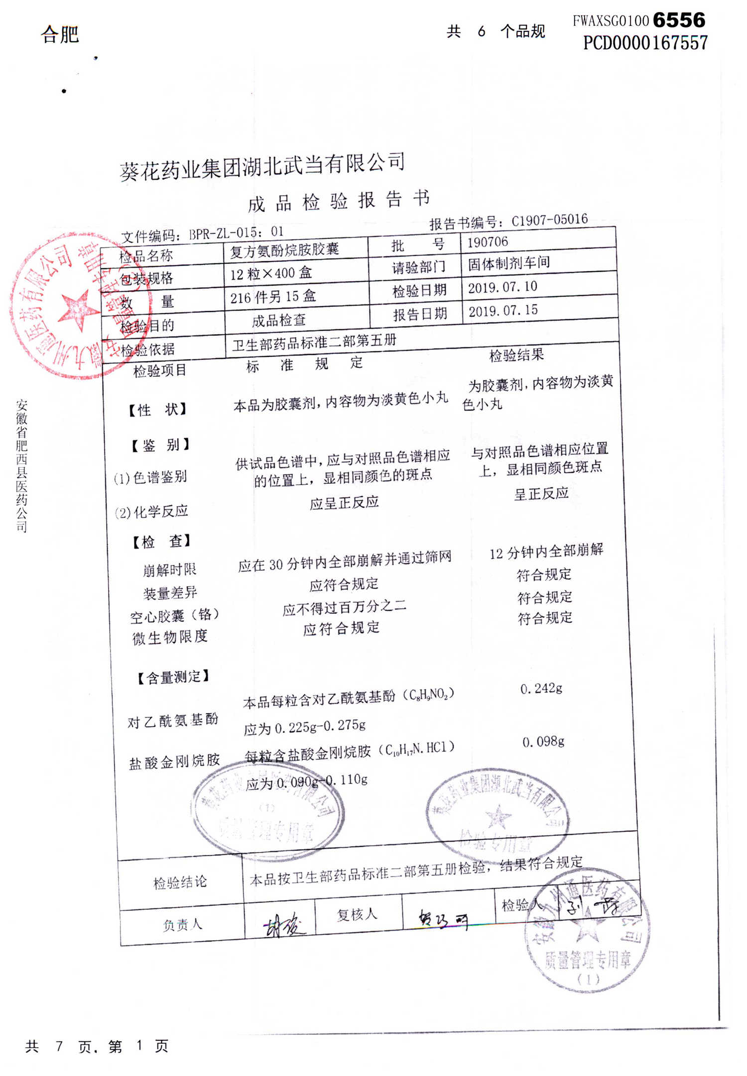 复方氨酚烷胺胶囊 | 12粒 | 190705 | 查看详情 |