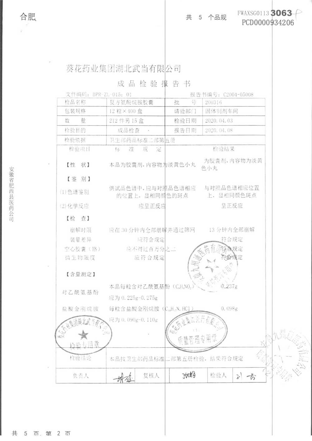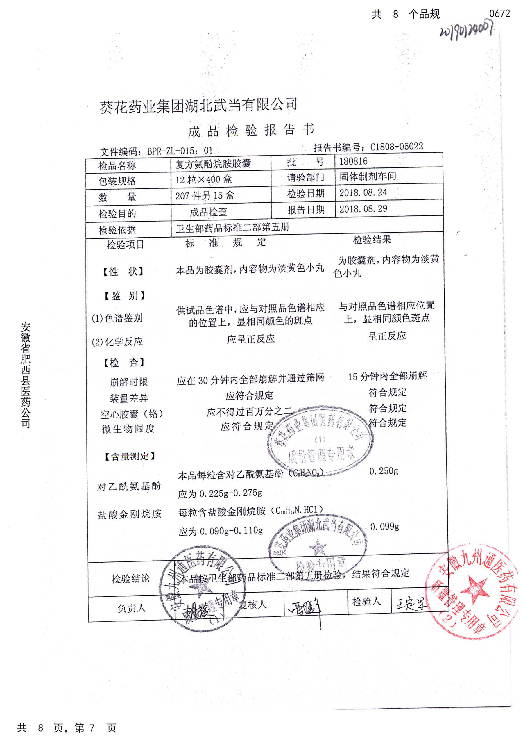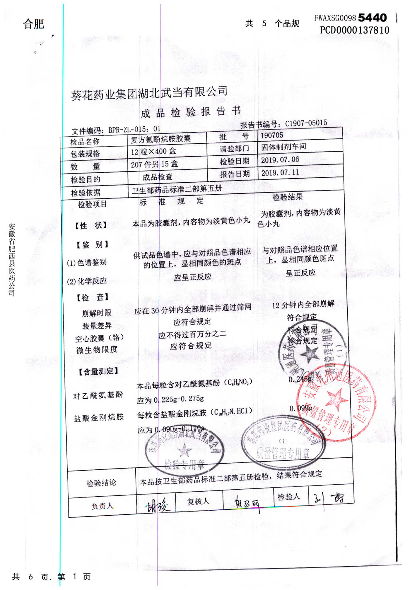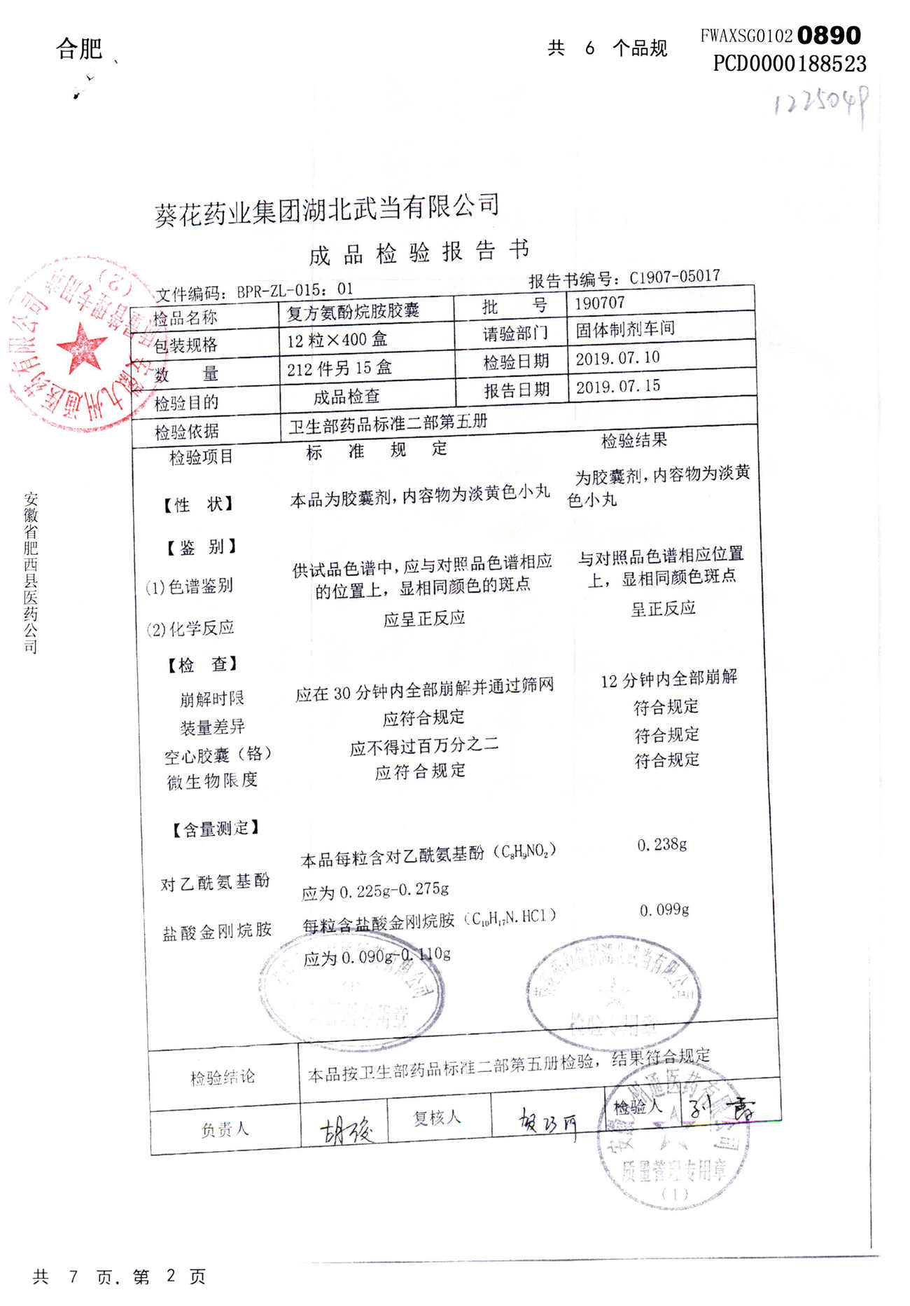 复方氨酚烷胺胶囊 | 12粒 | 190705 | 查看详情 |