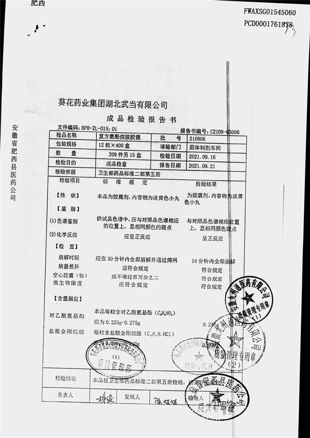 复方氨酚烷胺胶囊 | 12粒 | 210906 | 查看详情 |