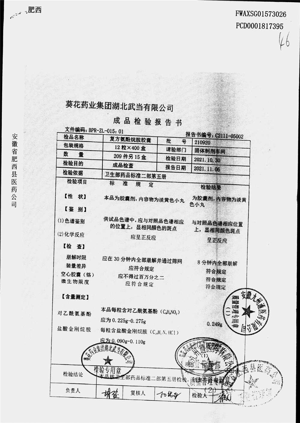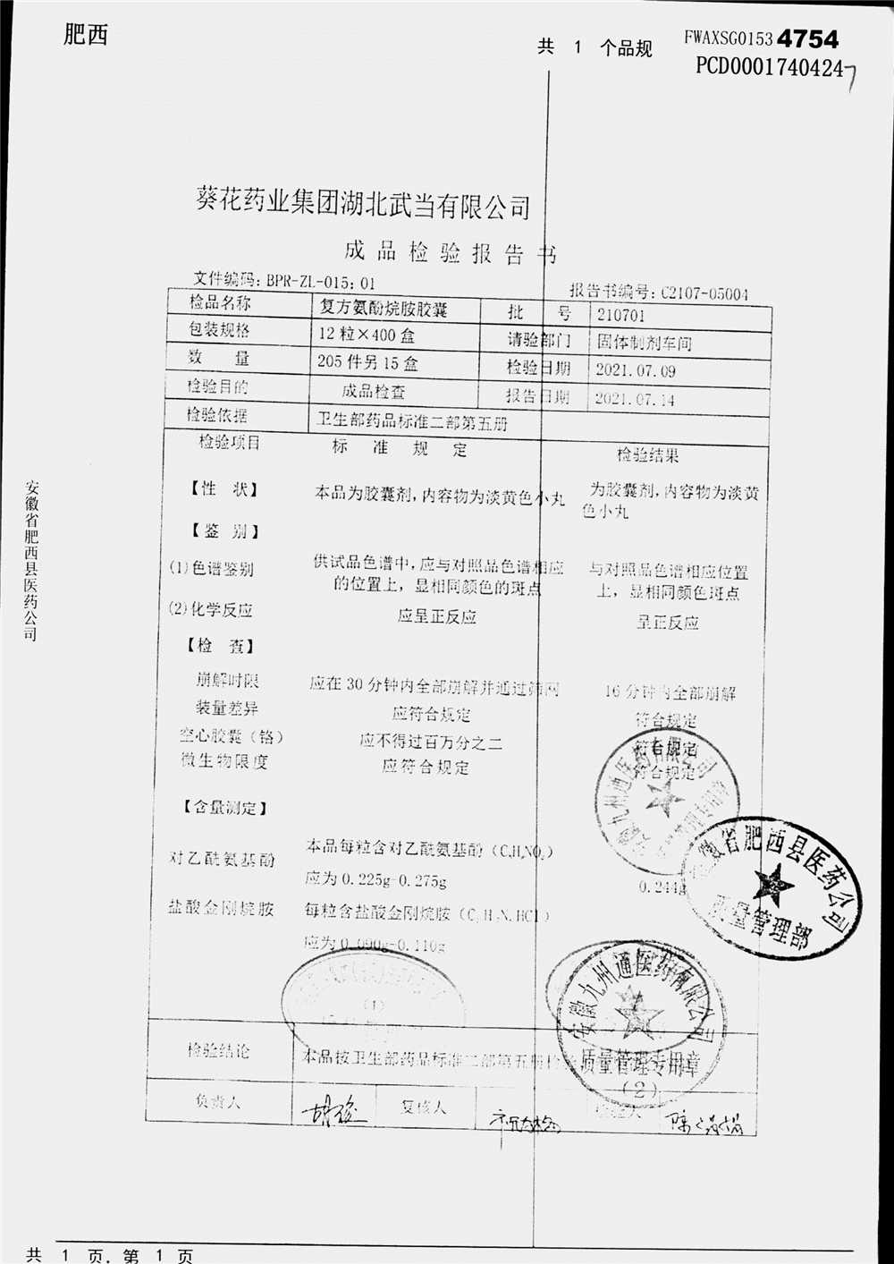 复方氨酚烷胺胶囊 | 12粒 | 210703 | 查看详情 |