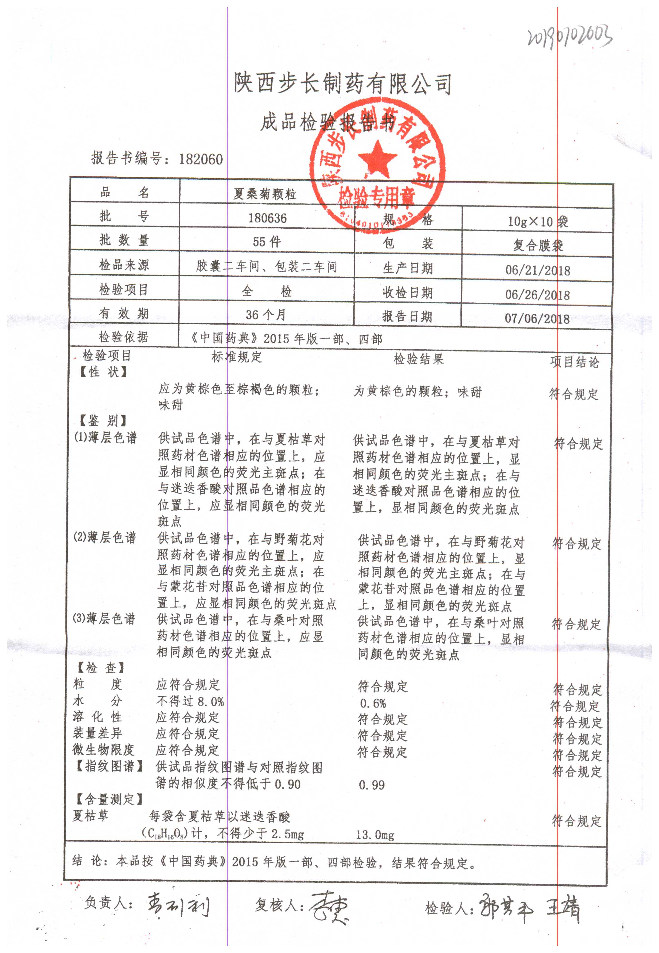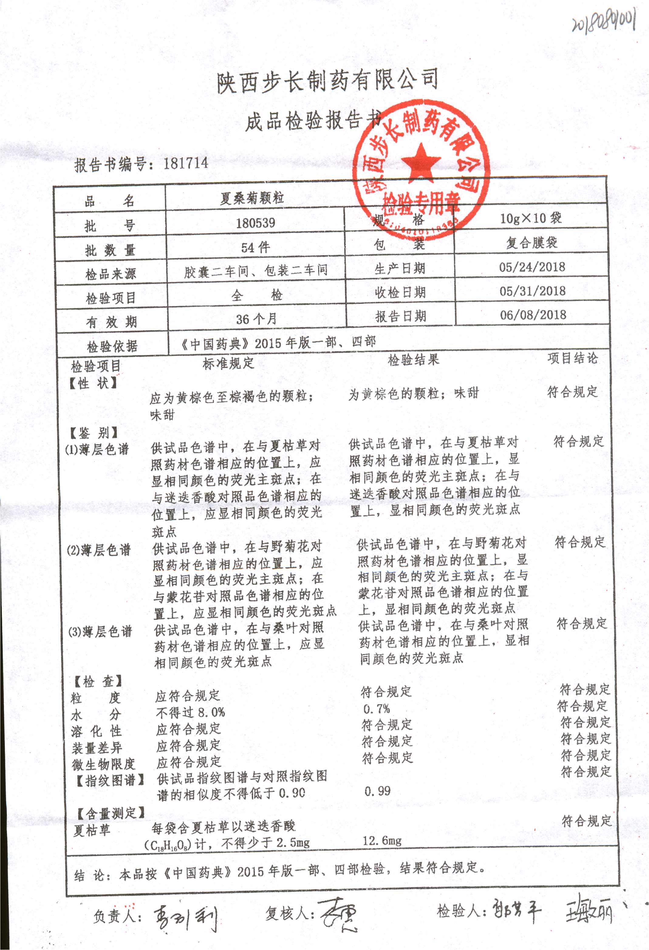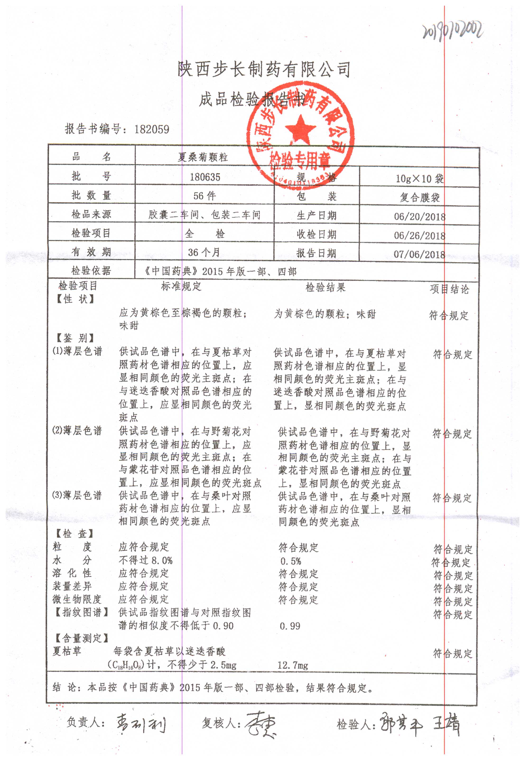 名称 | 规格 | 批号 | 药检报告 |