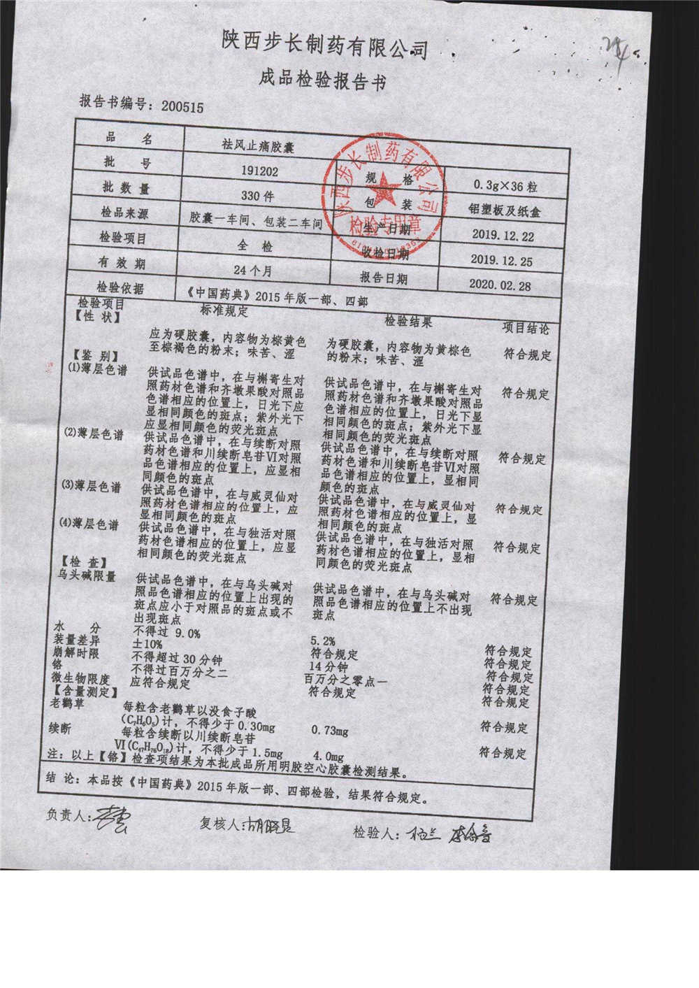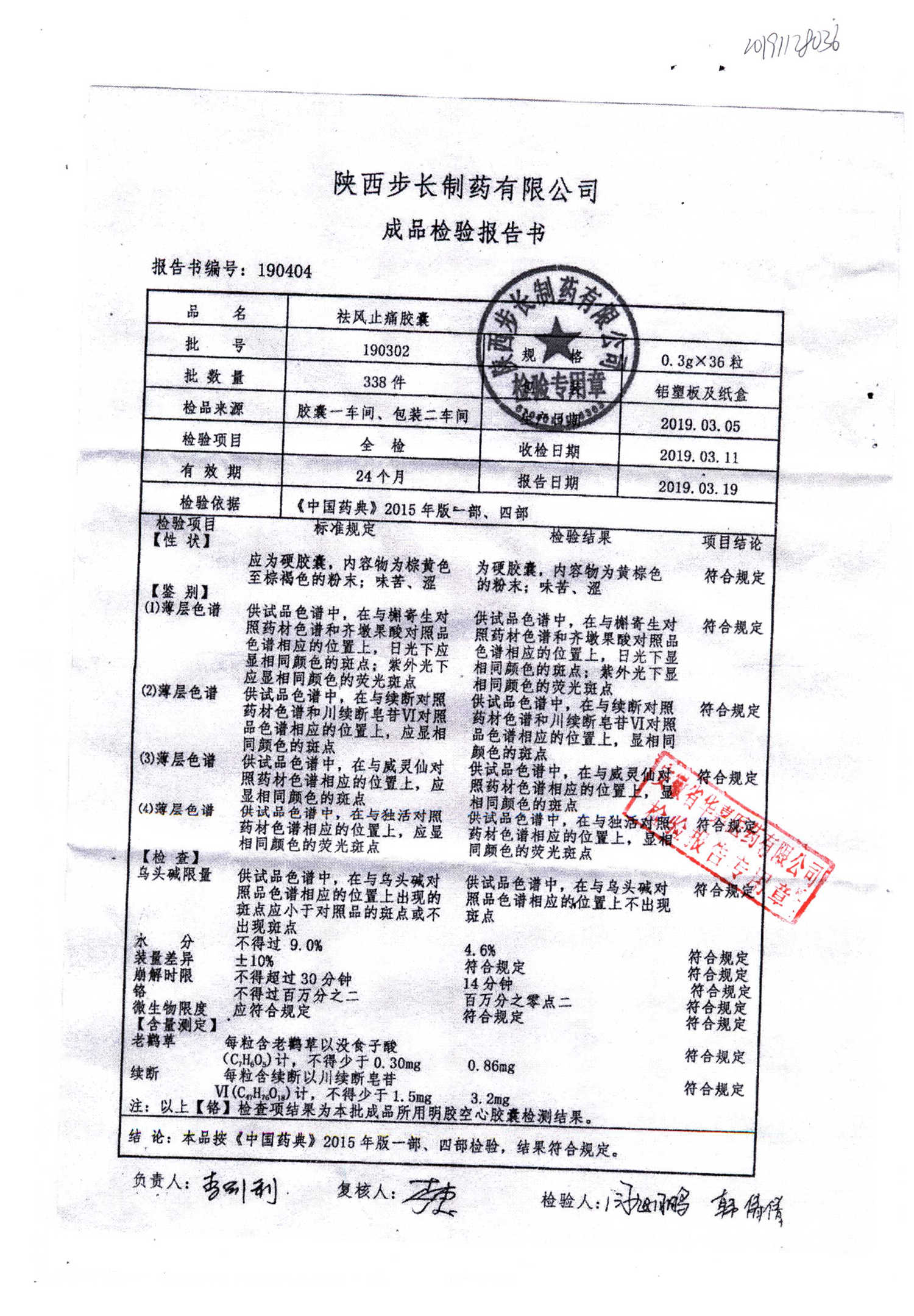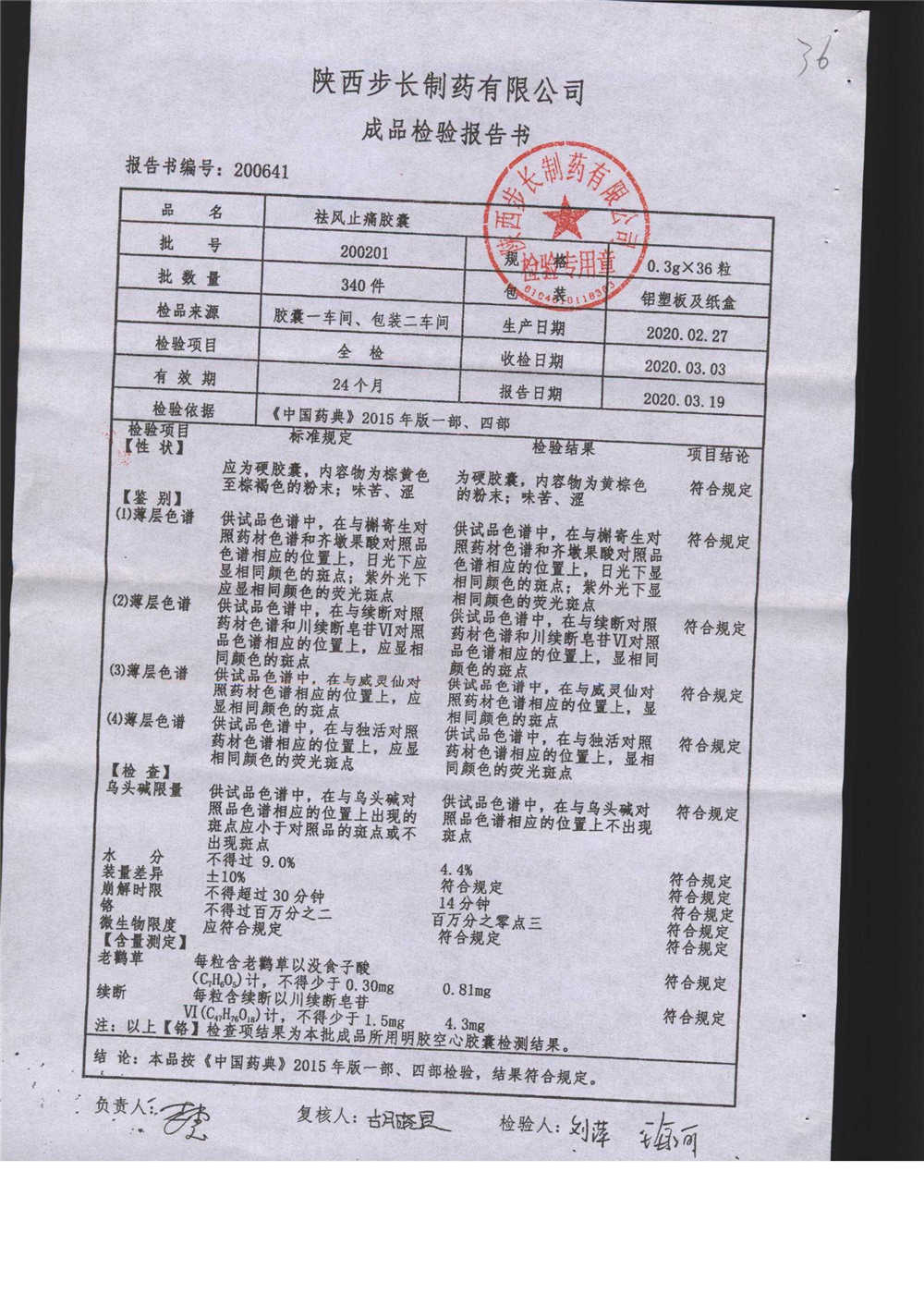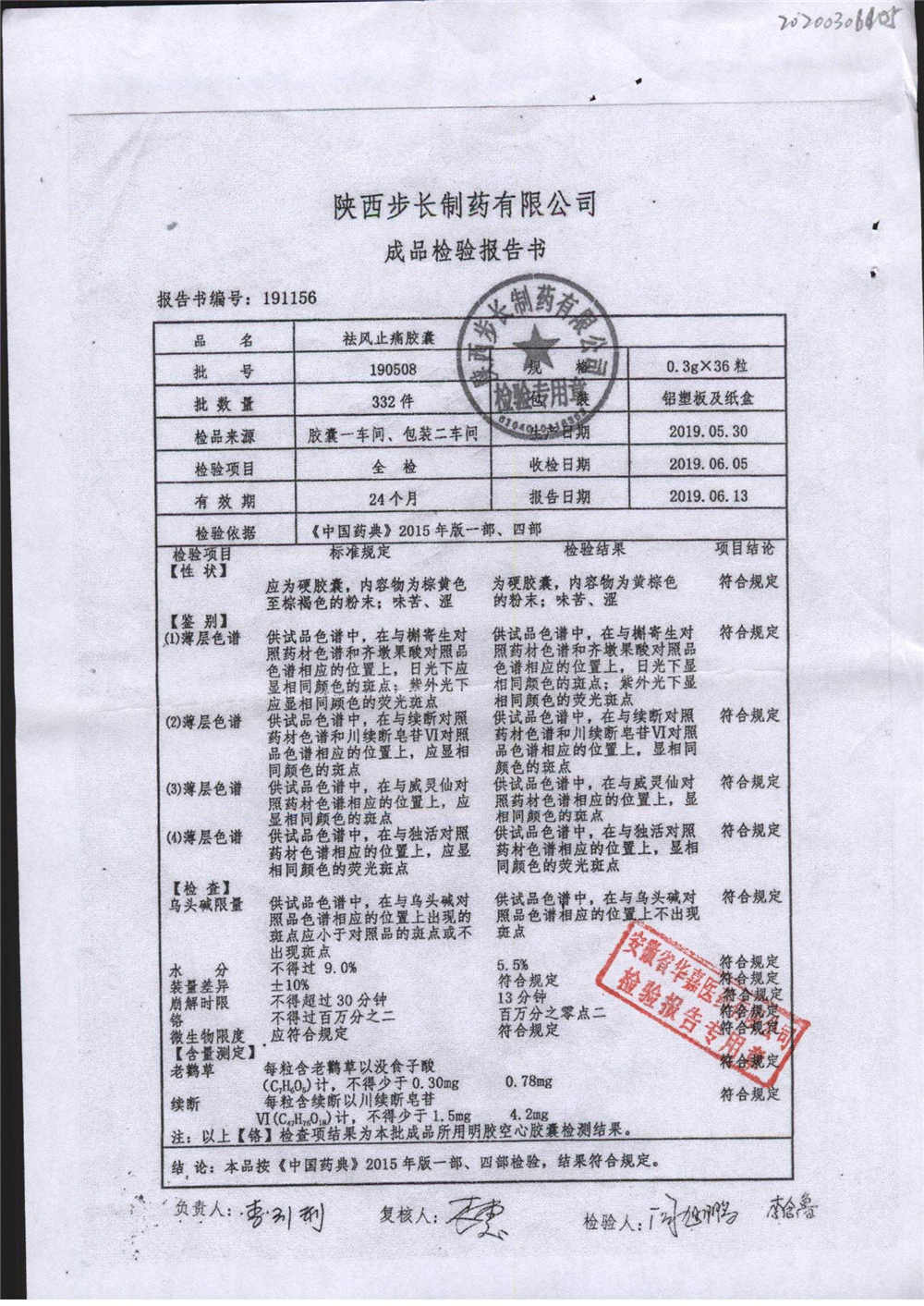 祛风止痛胶囊 | 0.3g*36粒 | 201209 | 查看详情 |