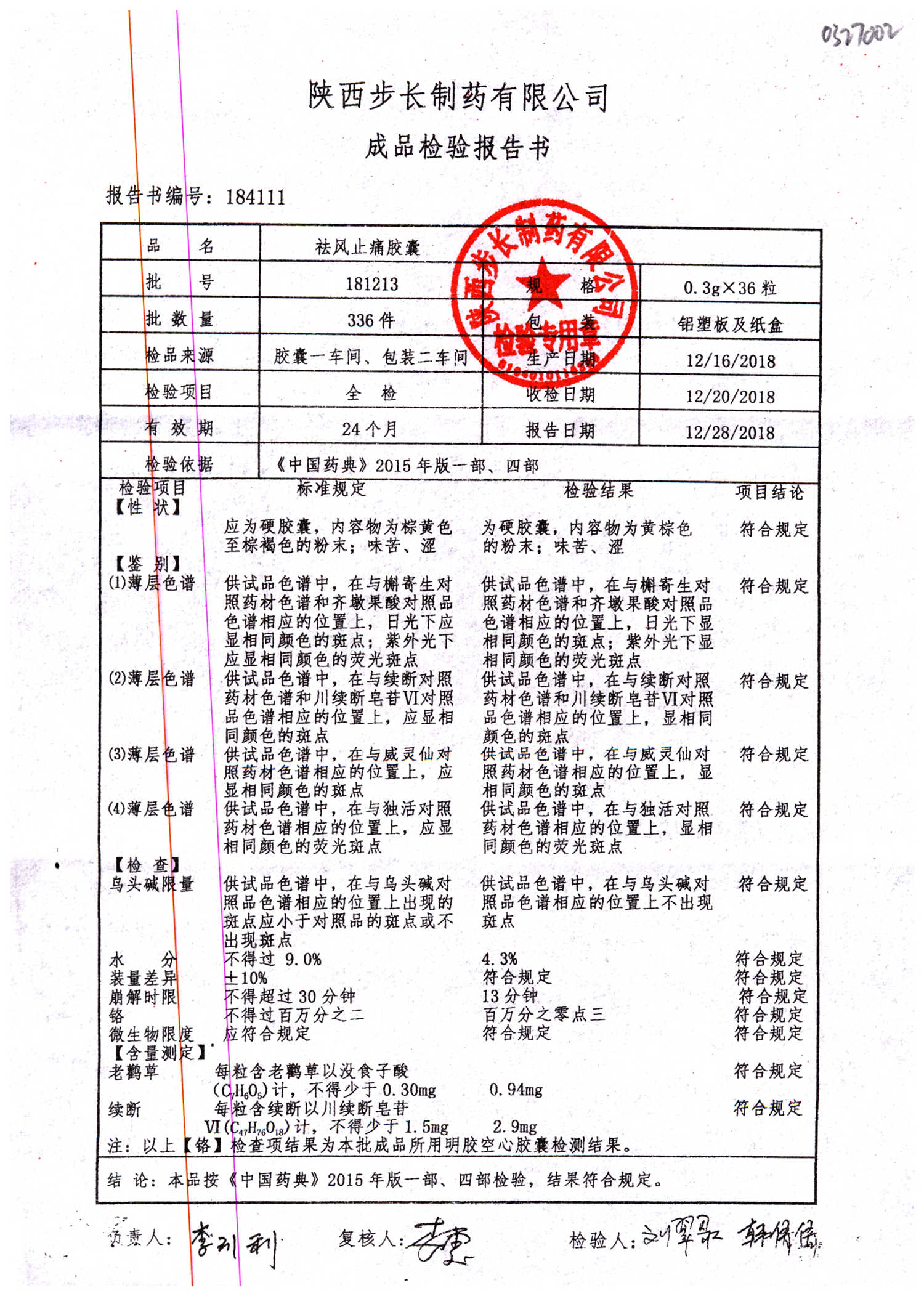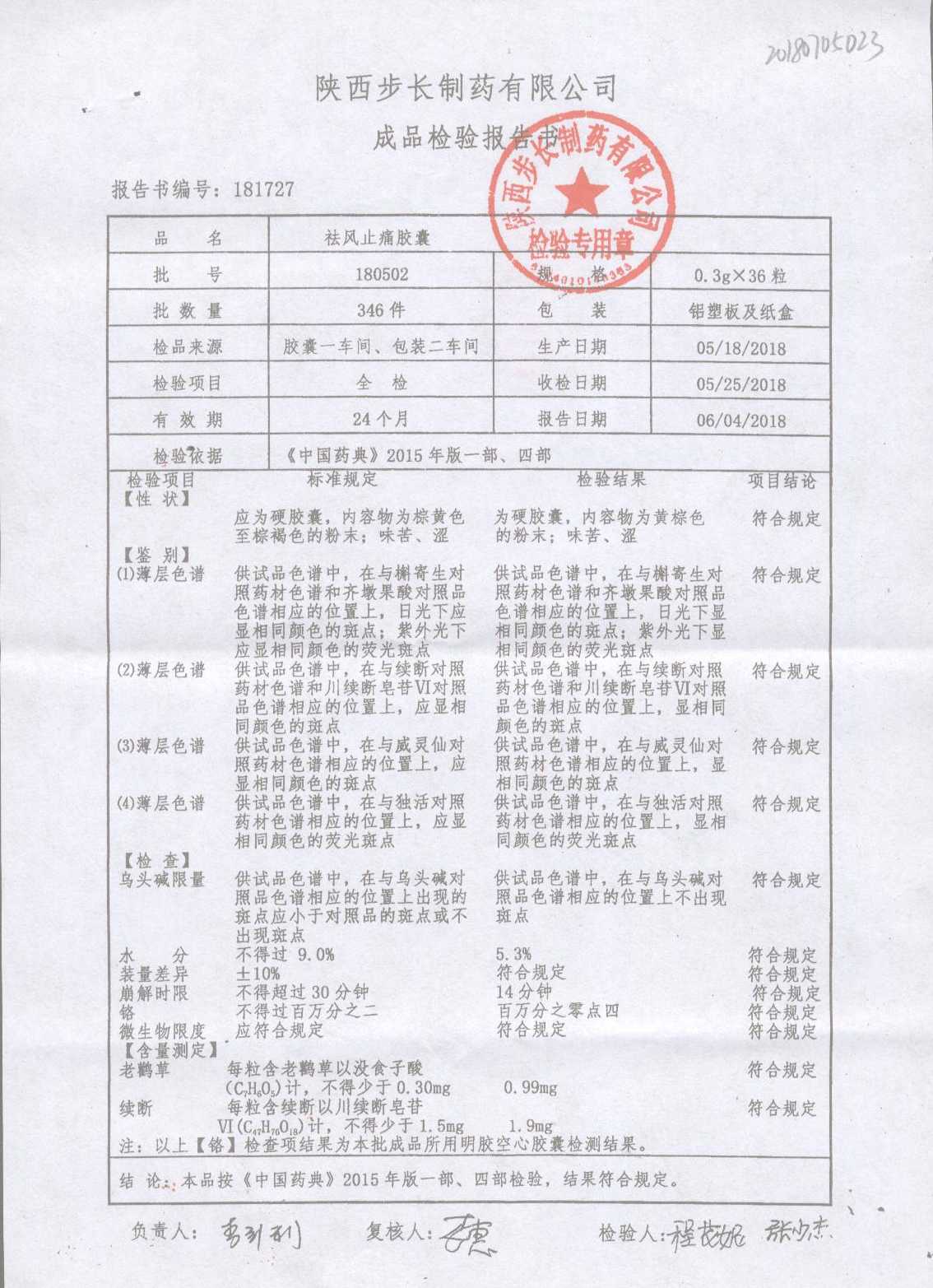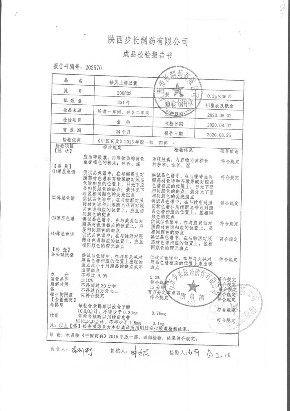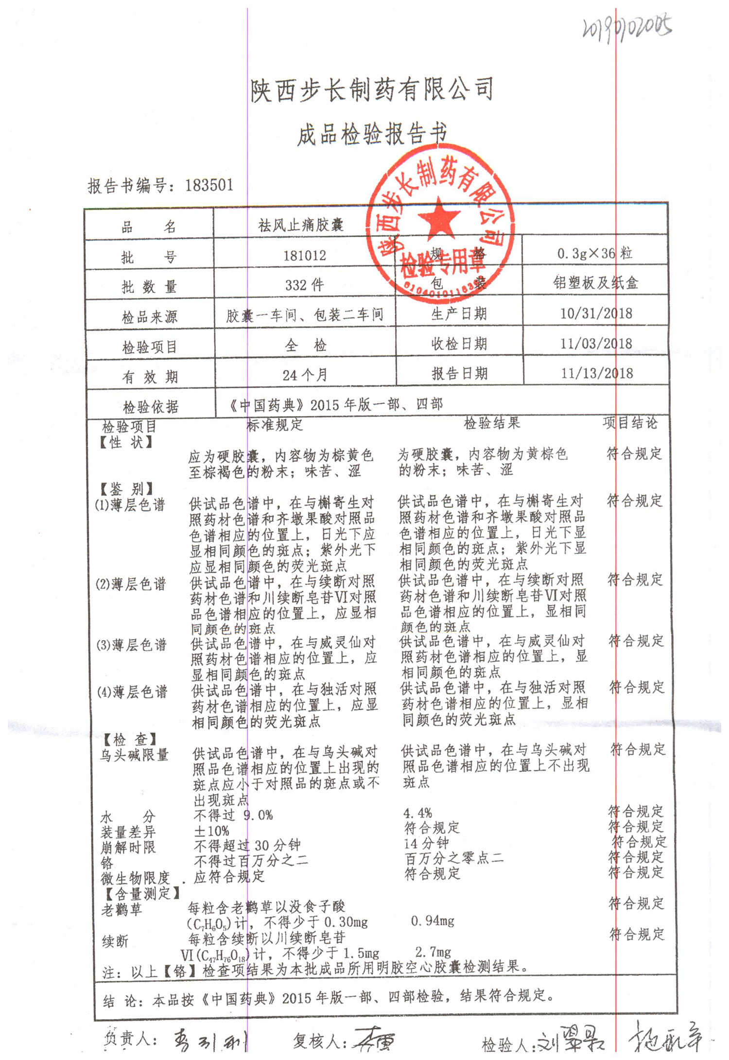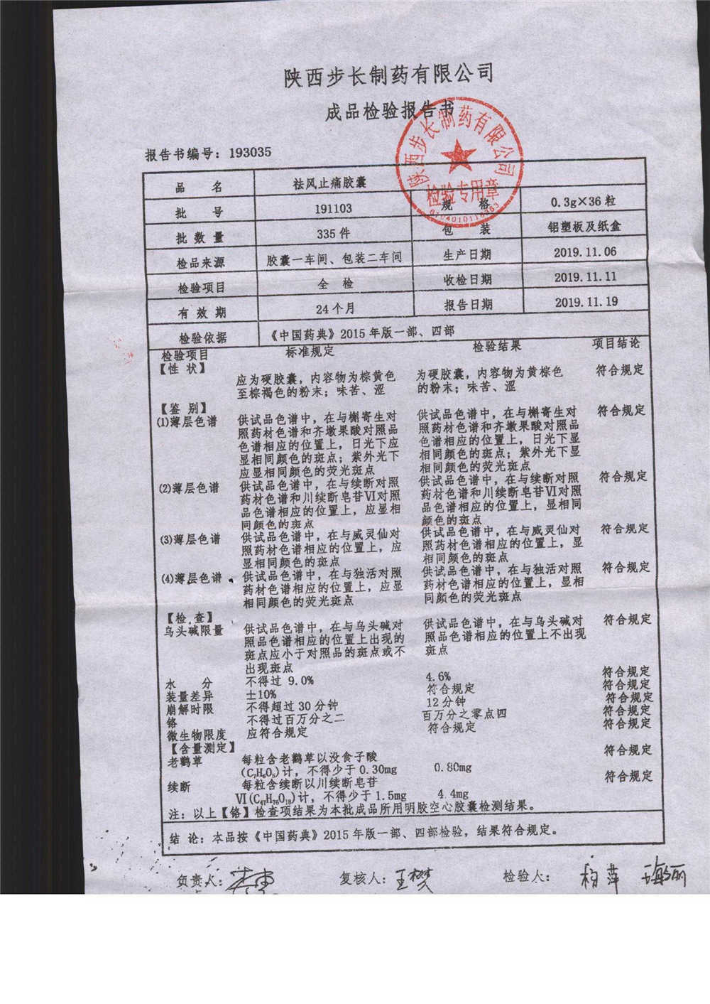 祛风止痛胶囊 | 0.3g*36粒 | 201209 | 查看详情 |
