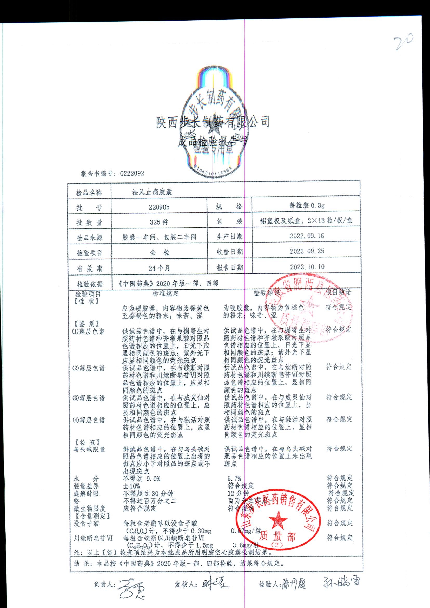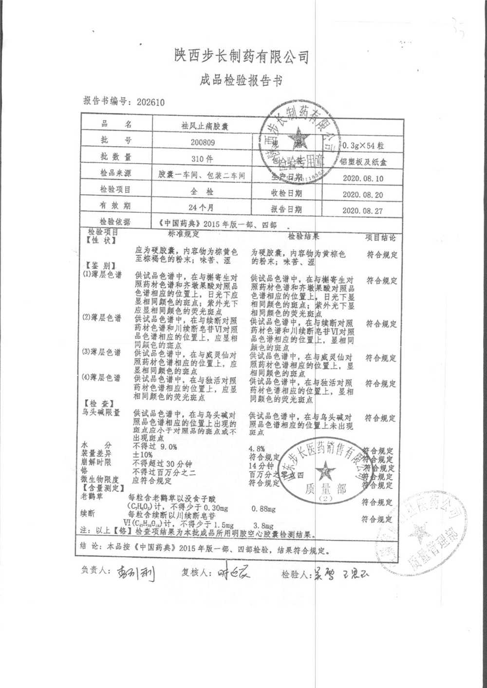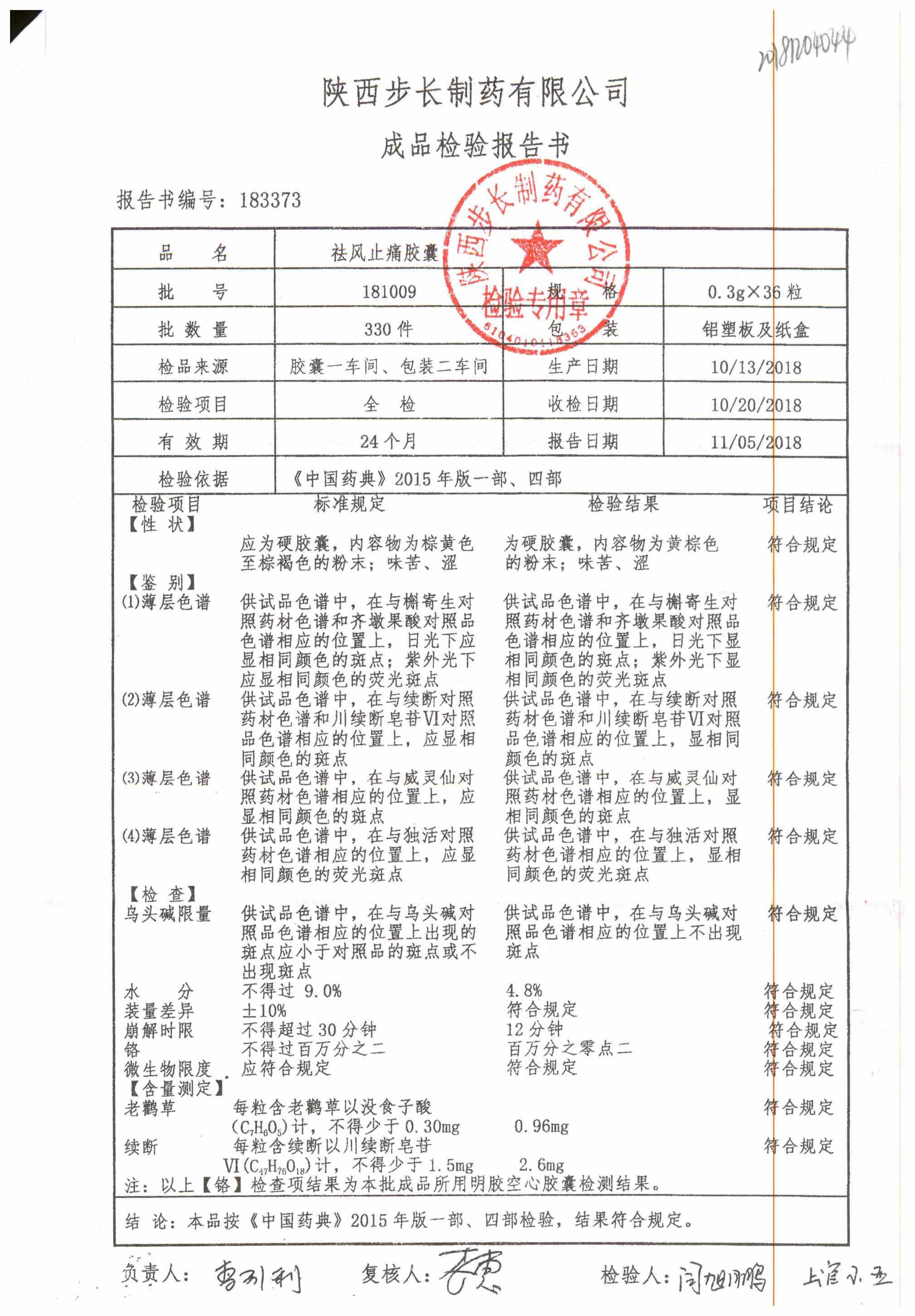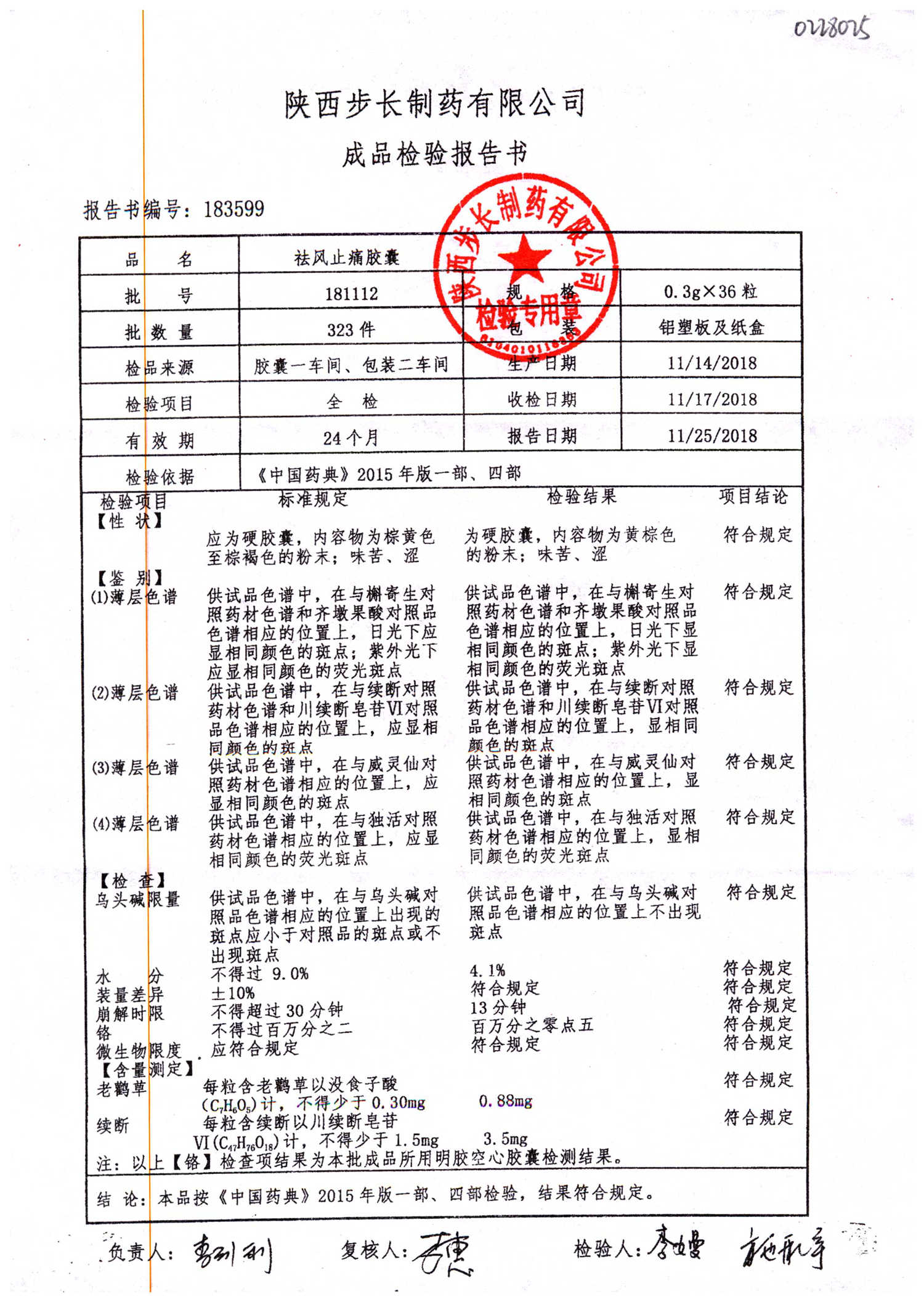 祛风止痛胶囊 | 0.3g*36粒 | 201209 | 查看详情 |