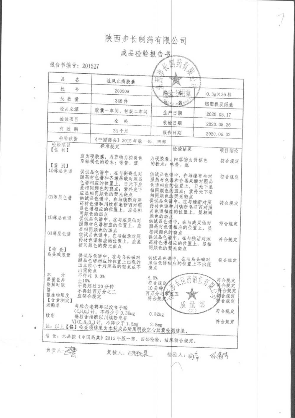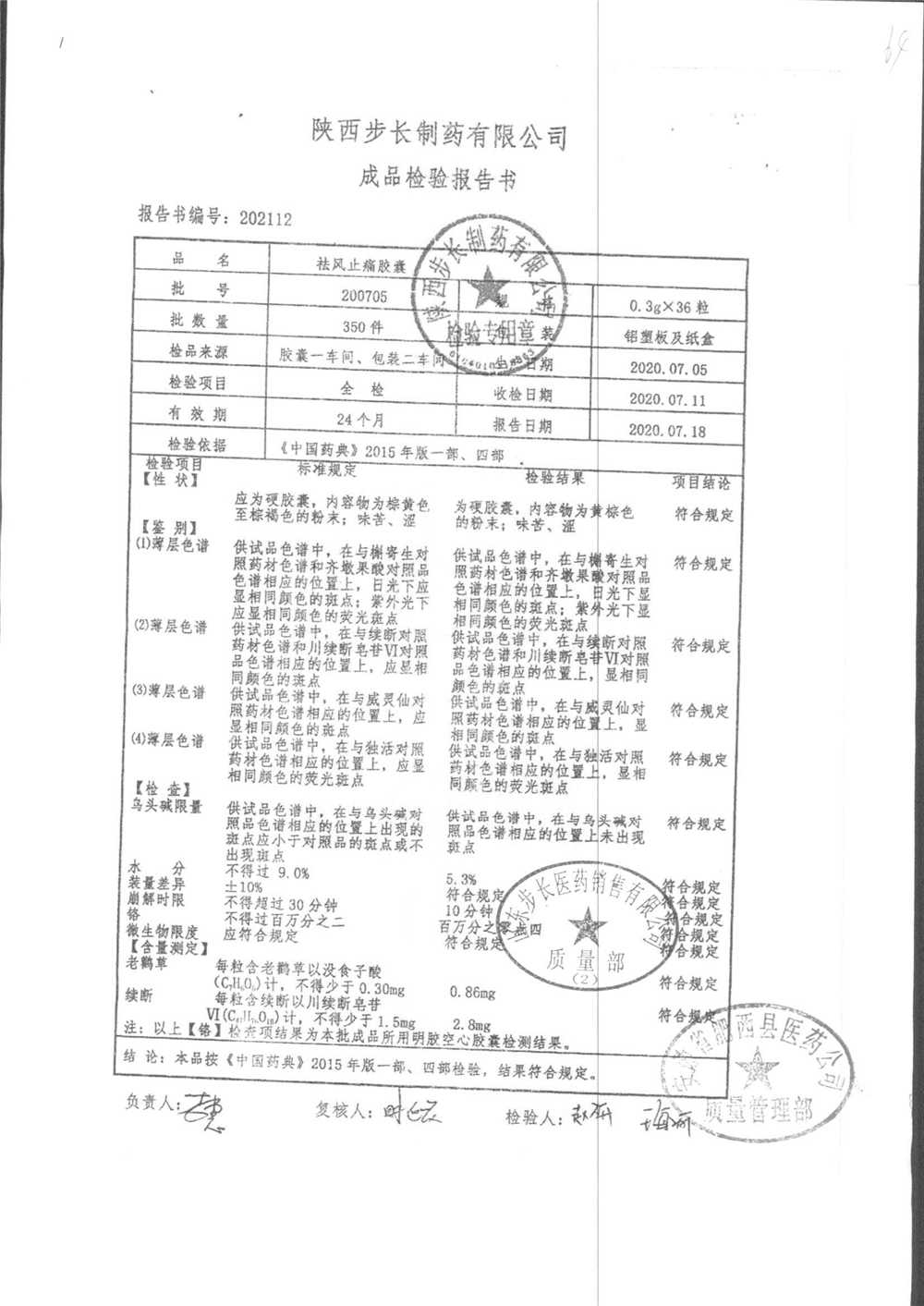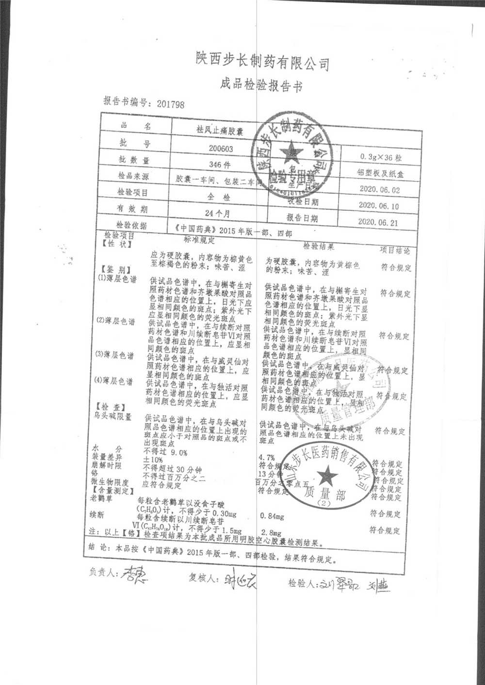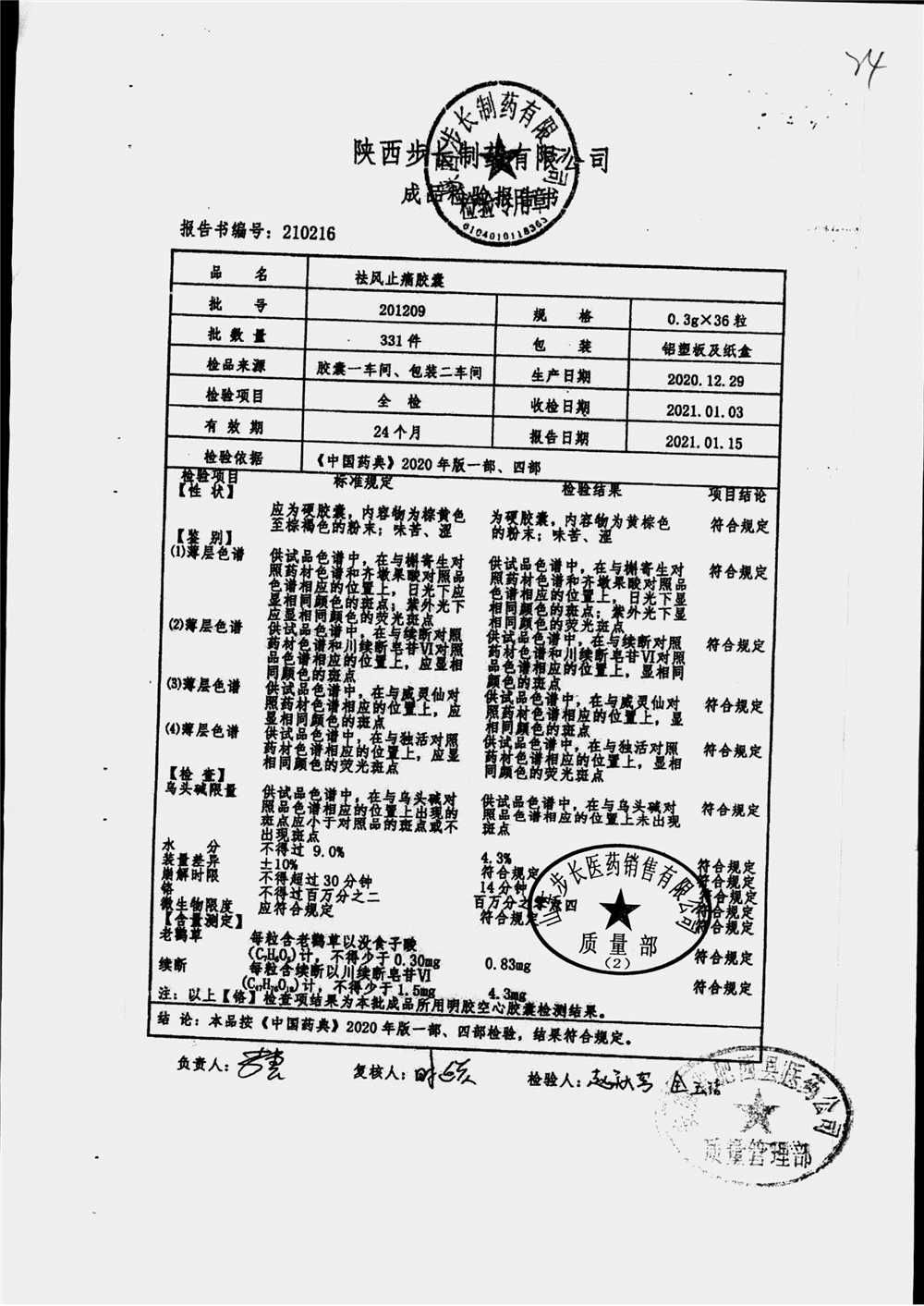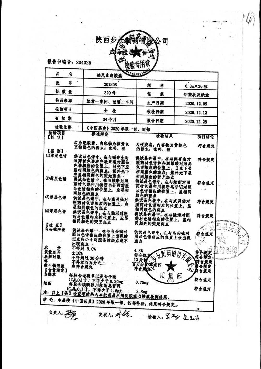 祛风止痛胶囊 | 0.3g*36粒 | 201209 | 查看详情 |