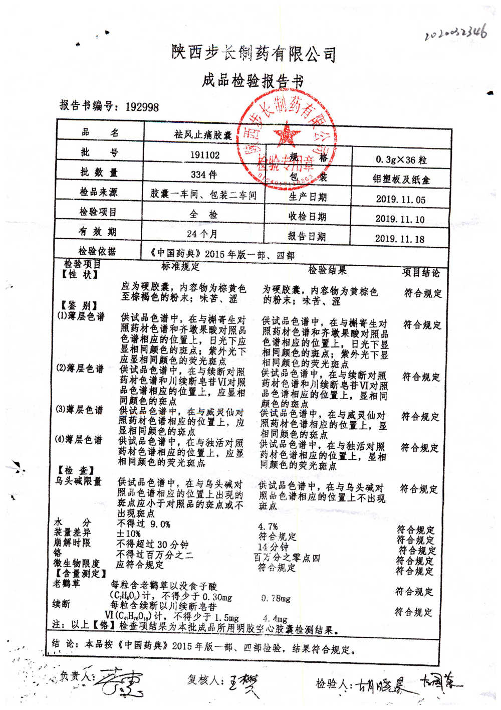 祛风止痛胶囊 | 0.3g*36粒 | 191202 | 查看详情 |