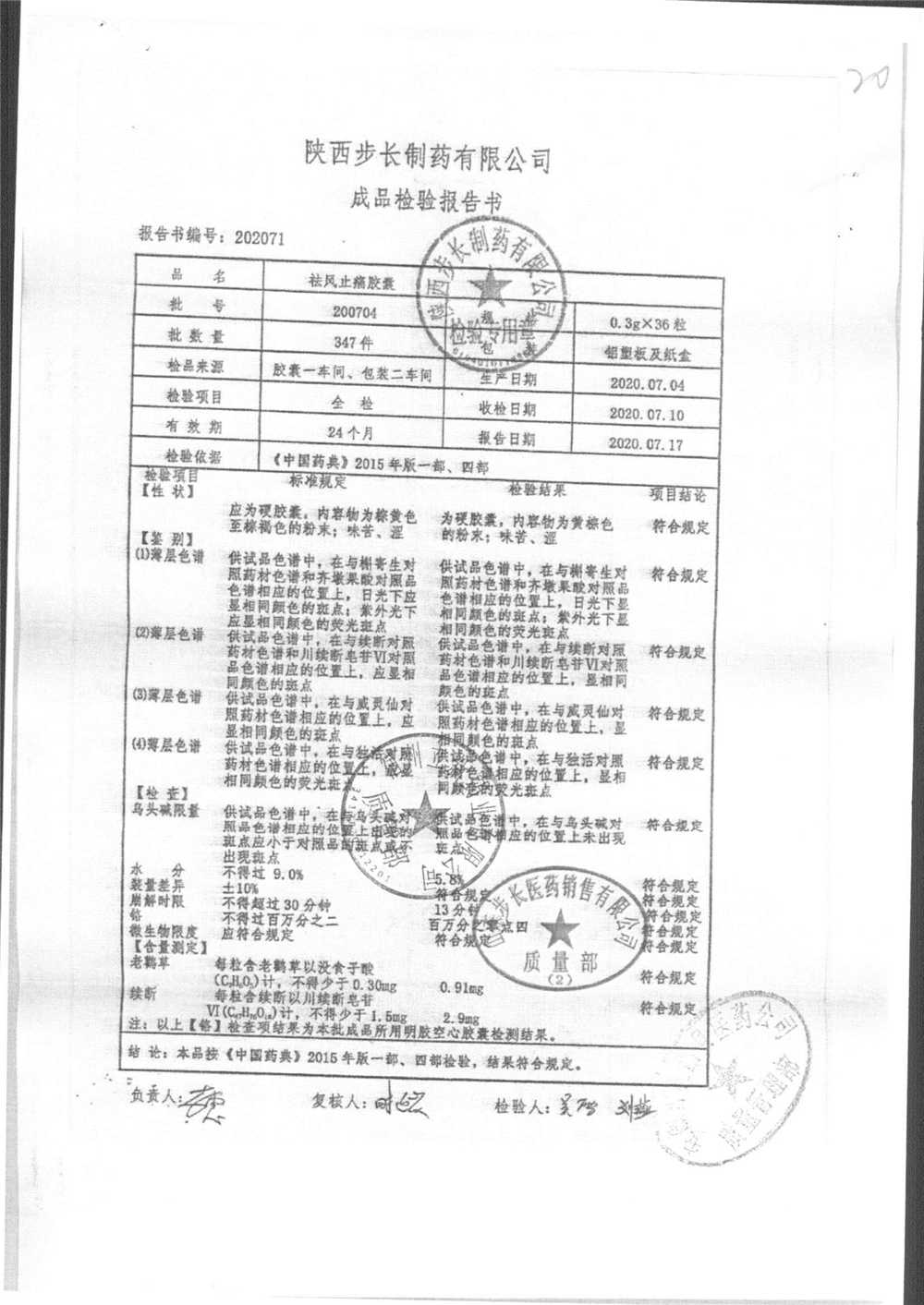 祛风止痛胶囊 | 0.3g*36粒 | 200705 | 查看详情 |