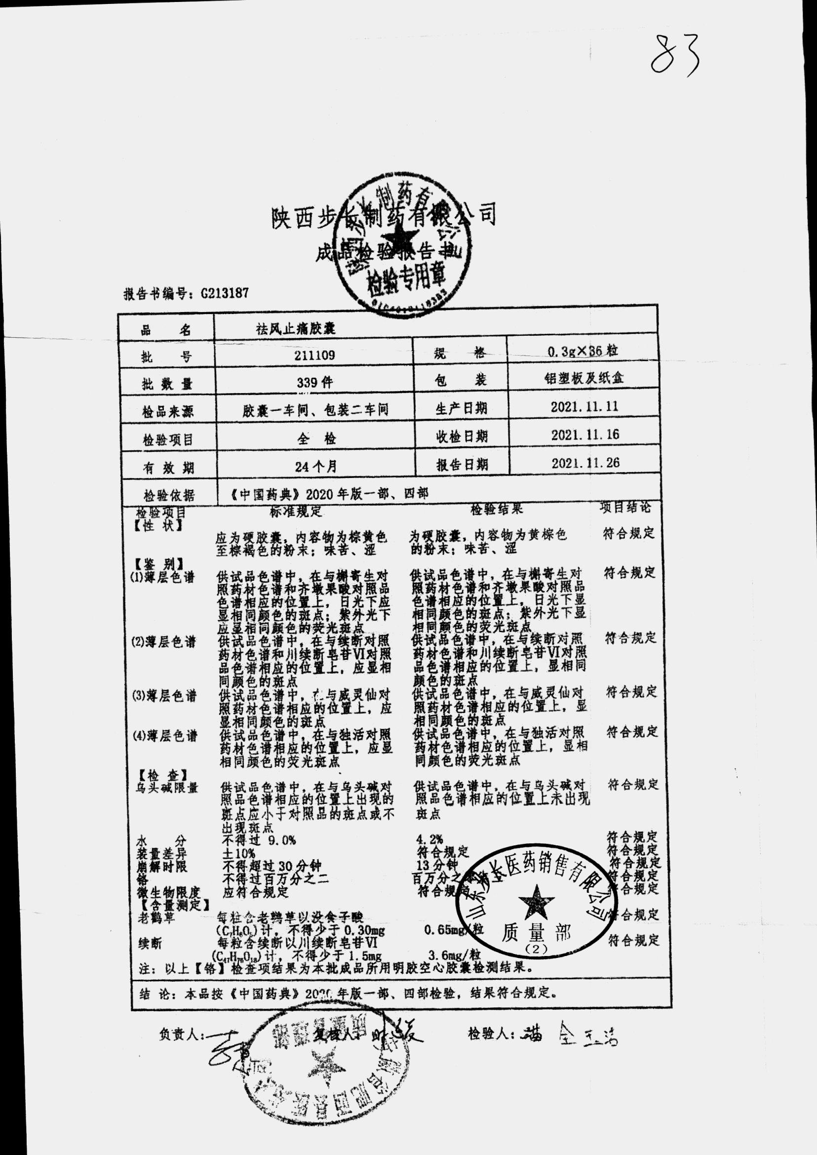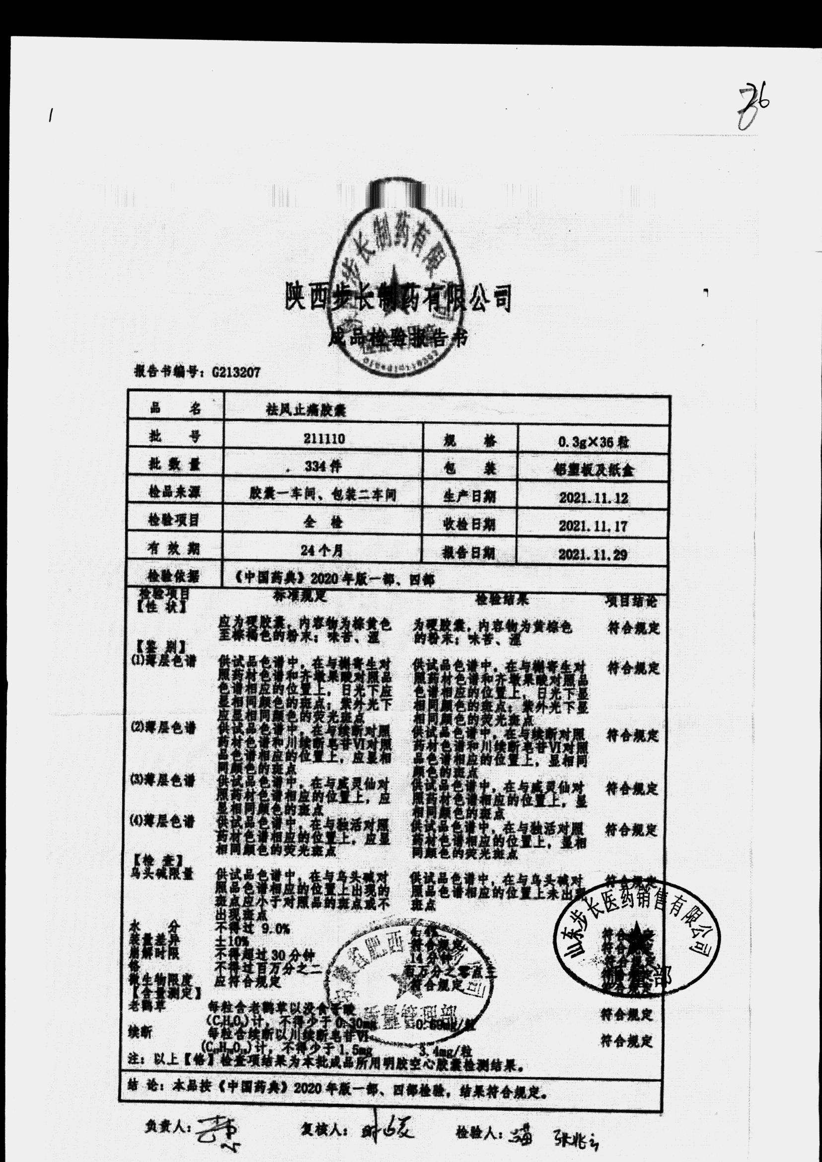 祛风止痛胶囊 | 0.3g*36粒 | 211109 | 查看详情 |