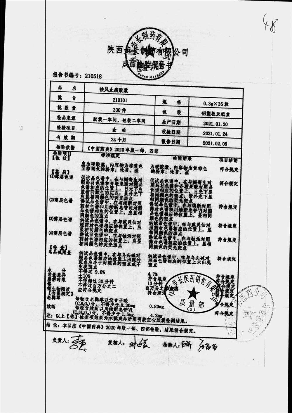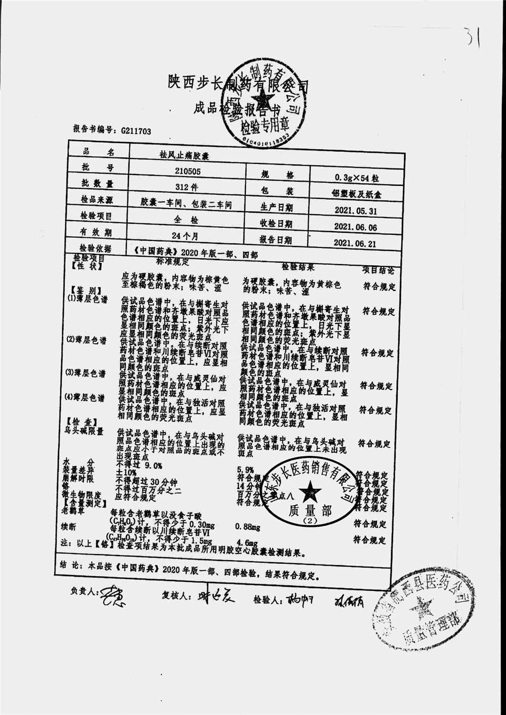祛风止痛胶囊 | 0.3g*36粒 | 210605 | 查看详情 |