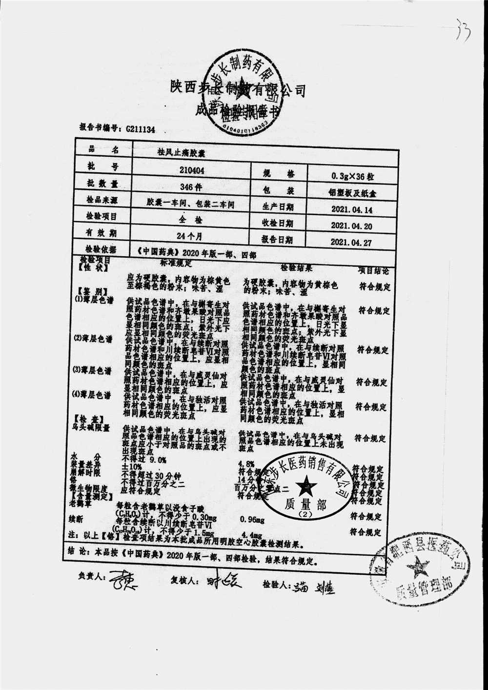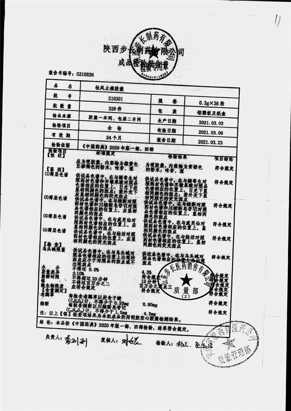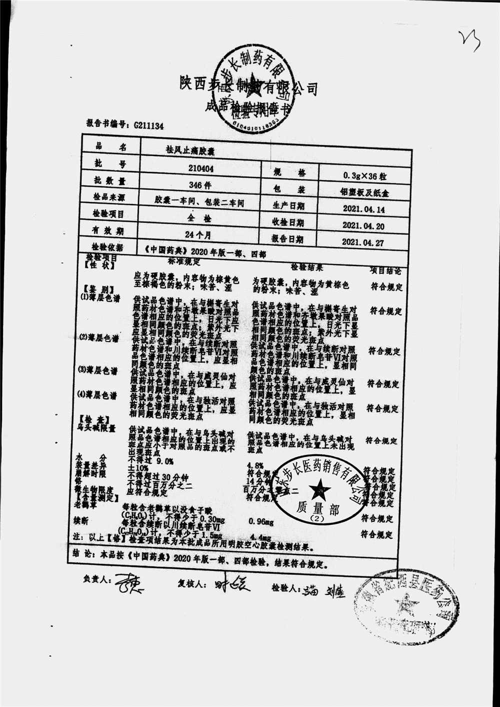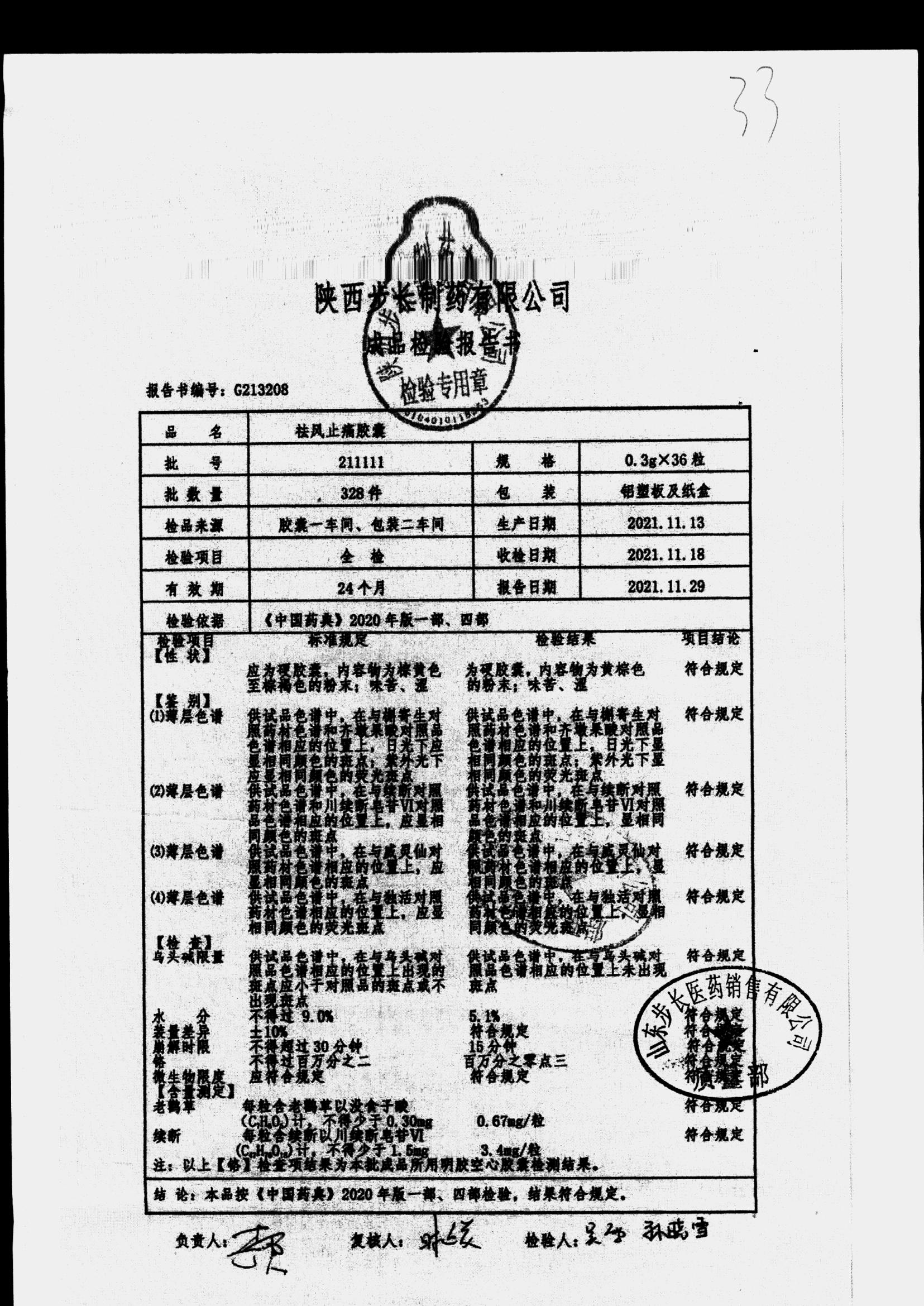 祛风止痛胶囊 | 0.3g*36粒 | 210404 | 查看详情 |