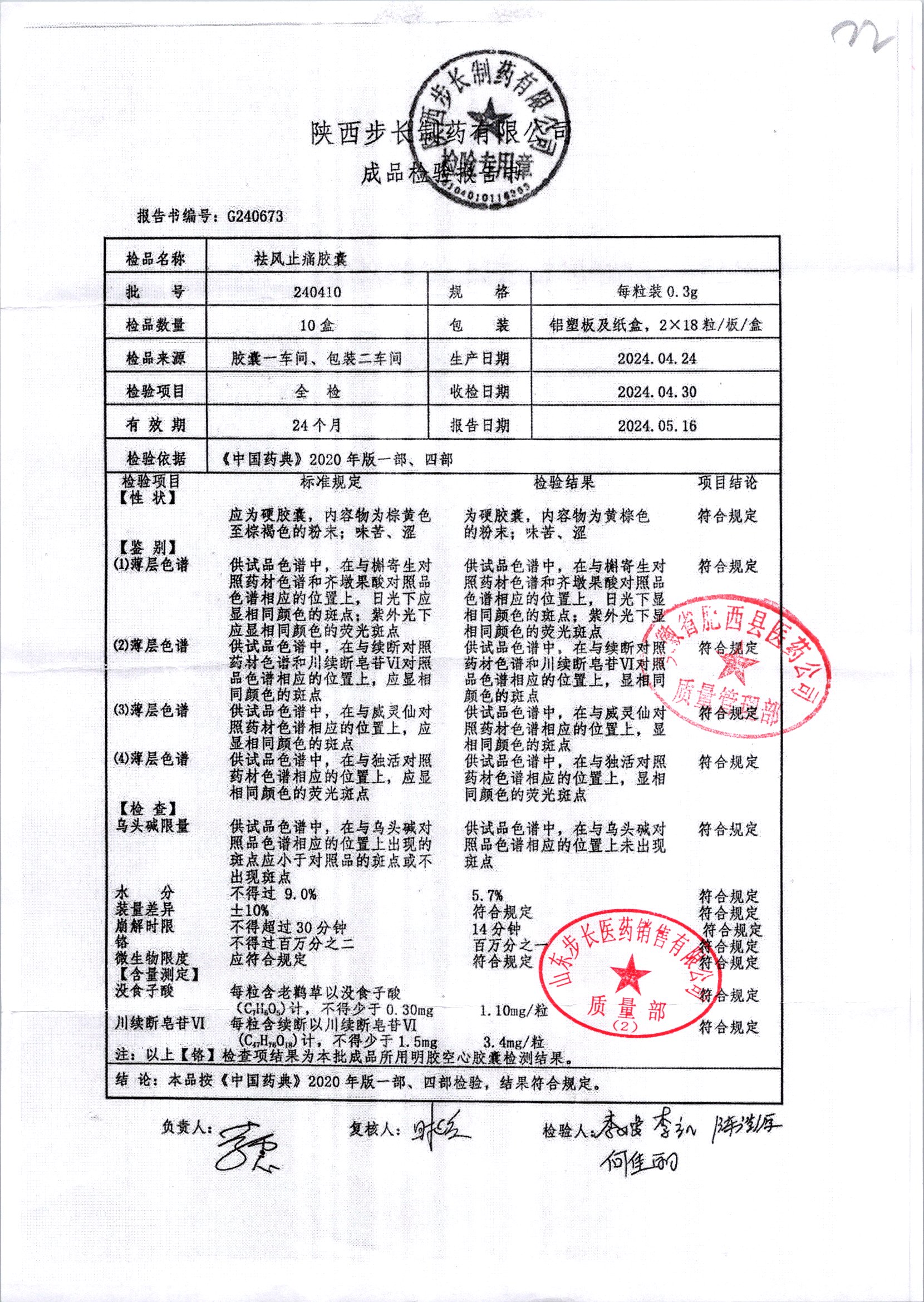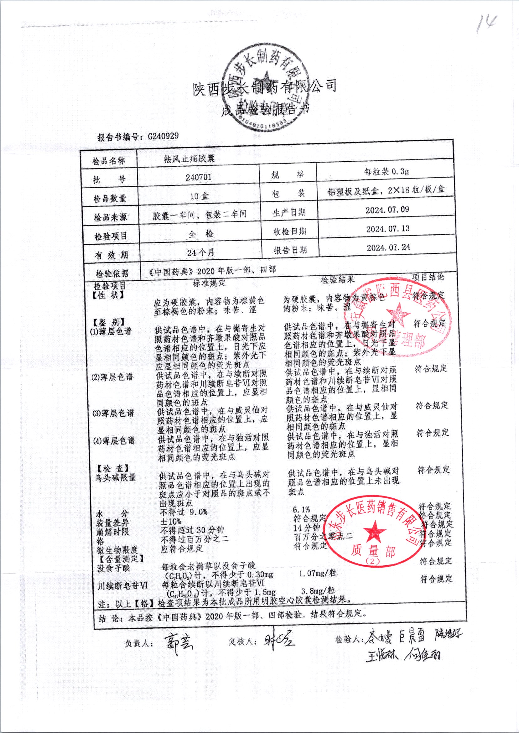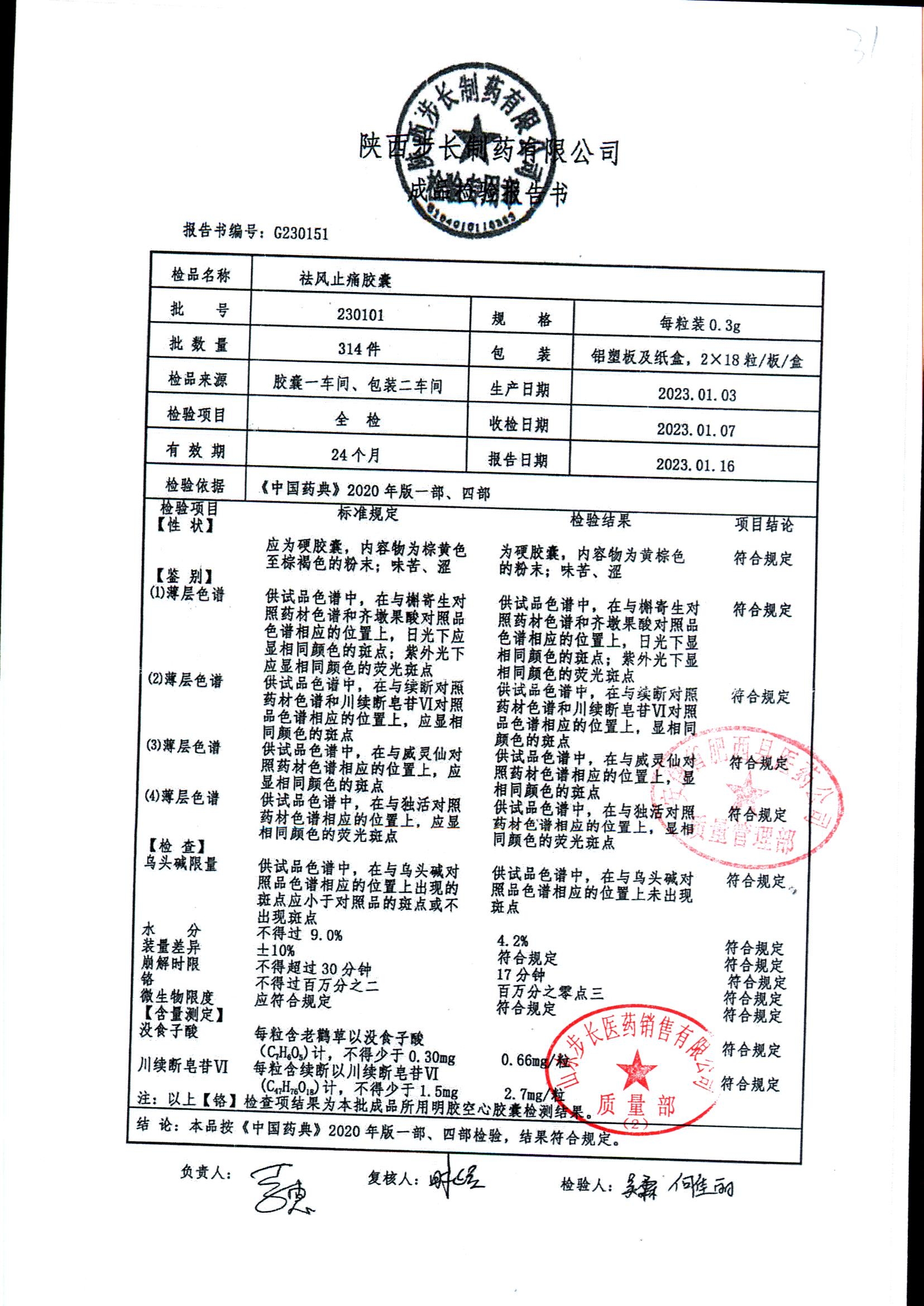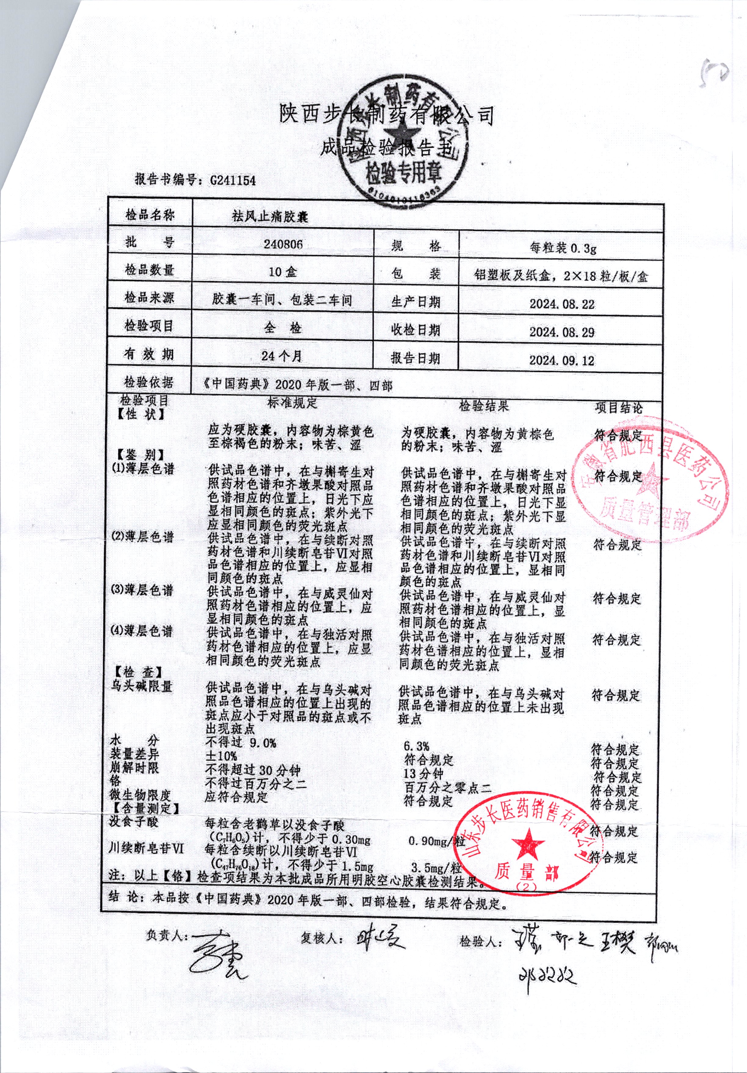 祛风止痛胶囊 | 0.3g*36粒 | 240702 | 查看详情 |