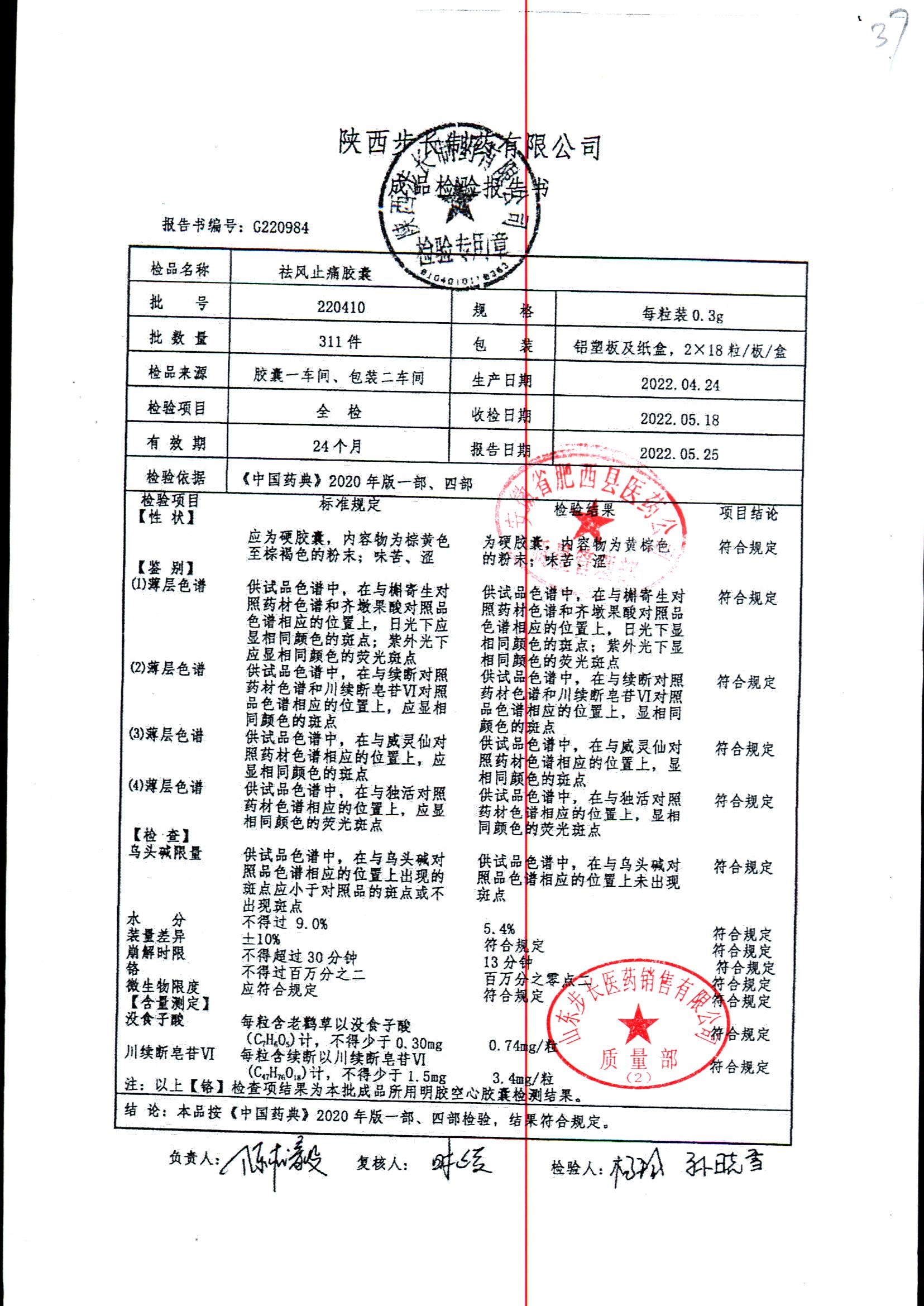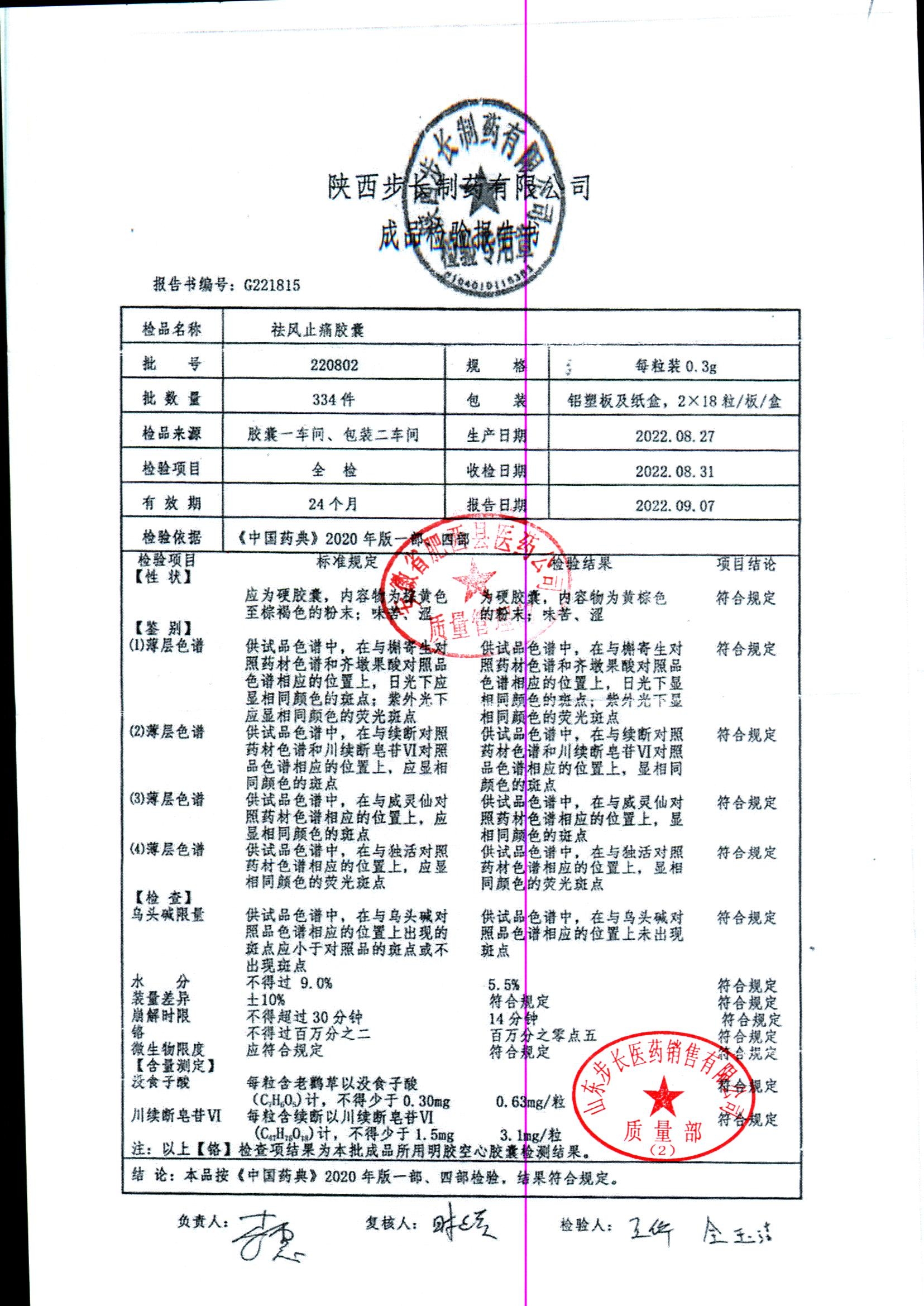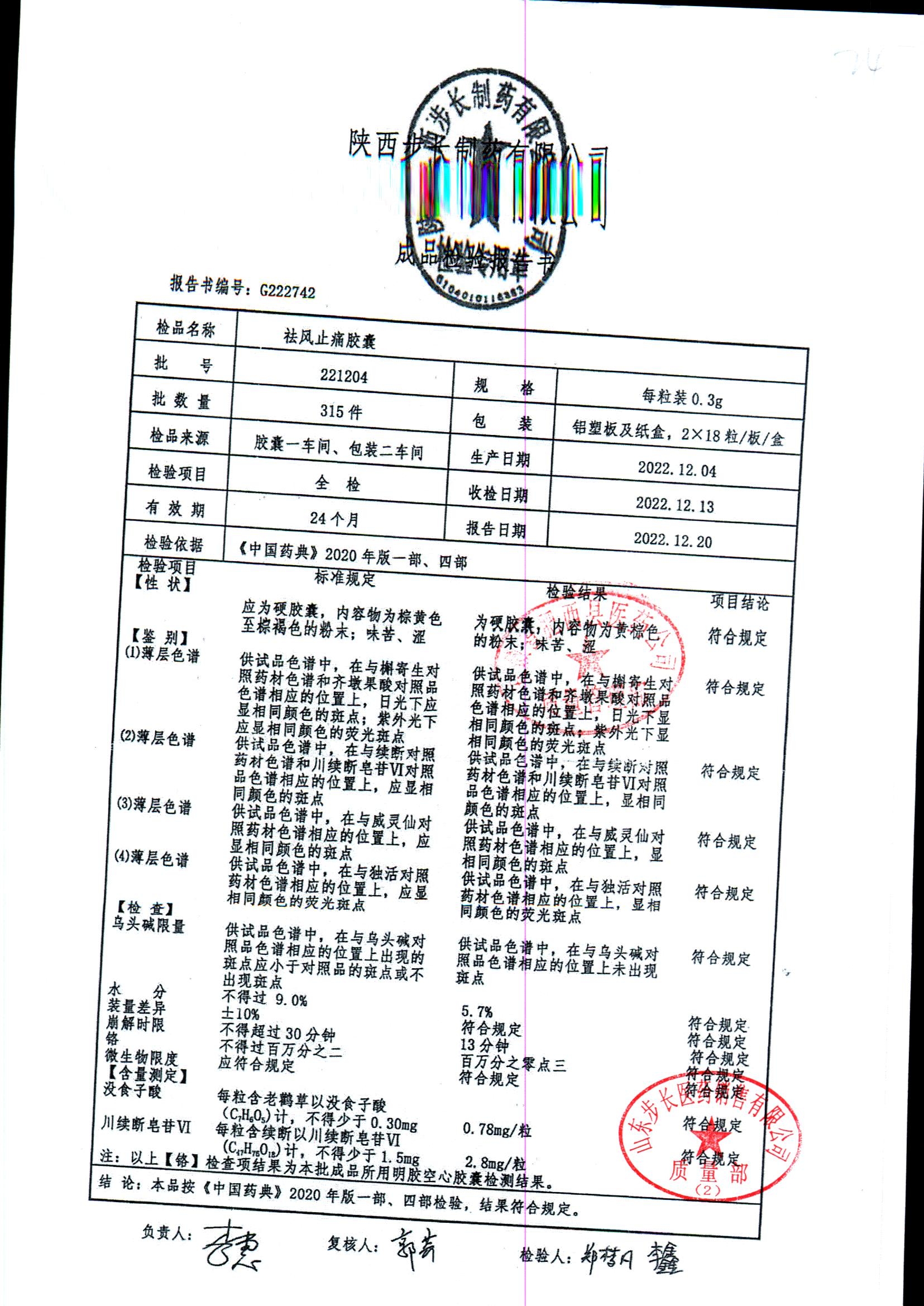 祛风止痛胶囊 | 0.3g*36粒 | 240702 | 查看详情 |