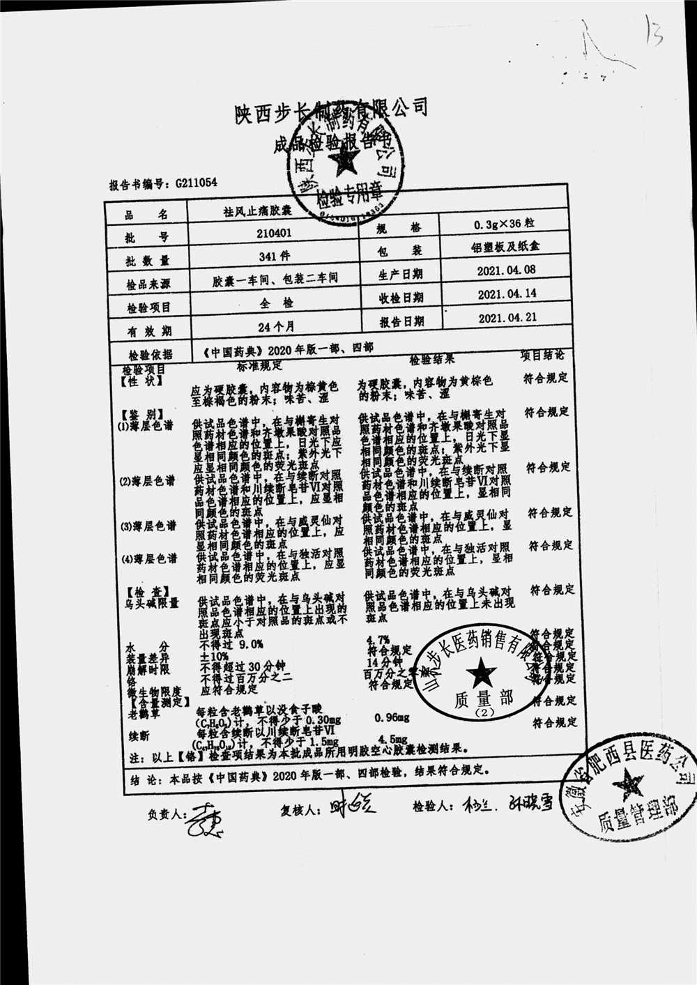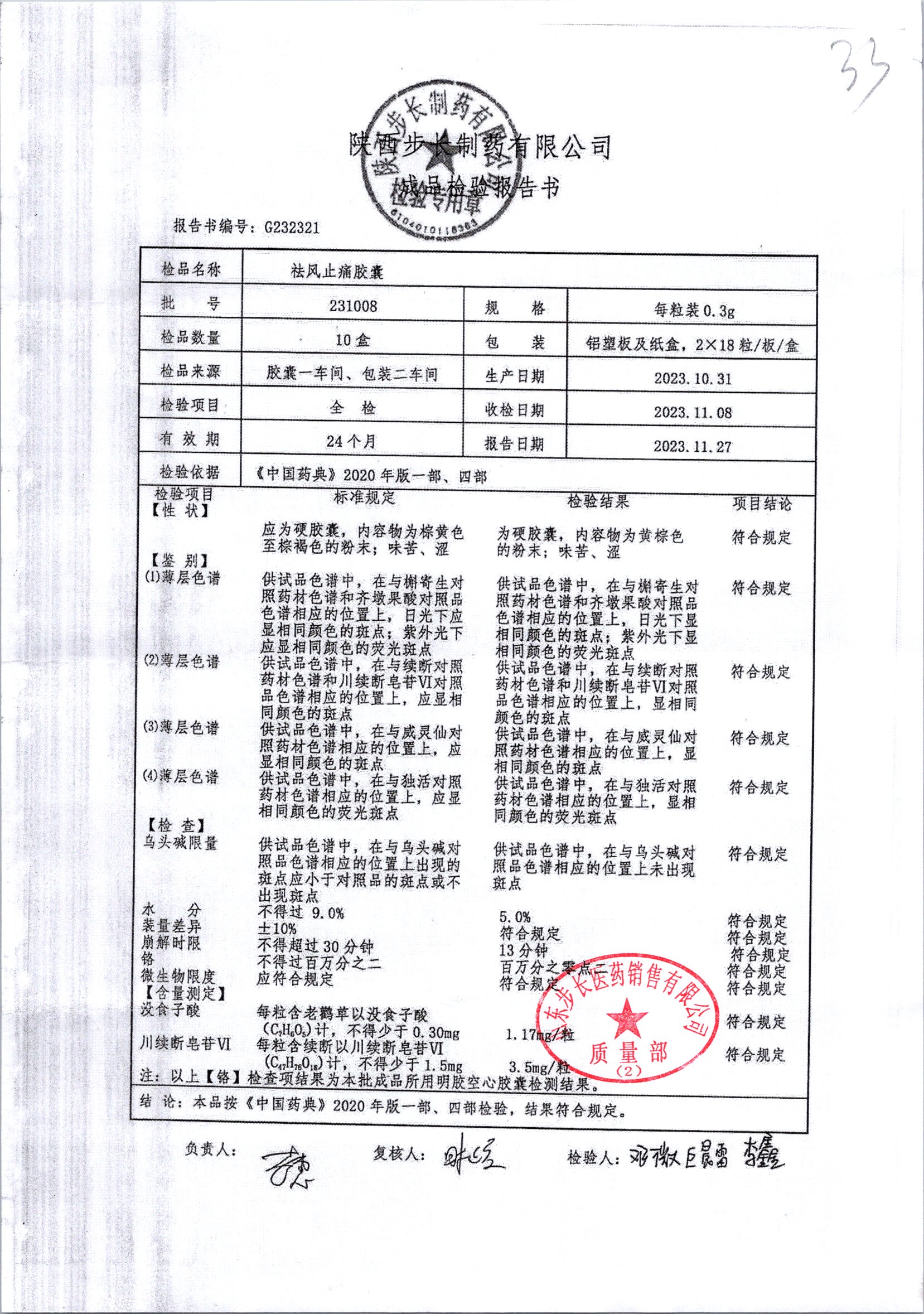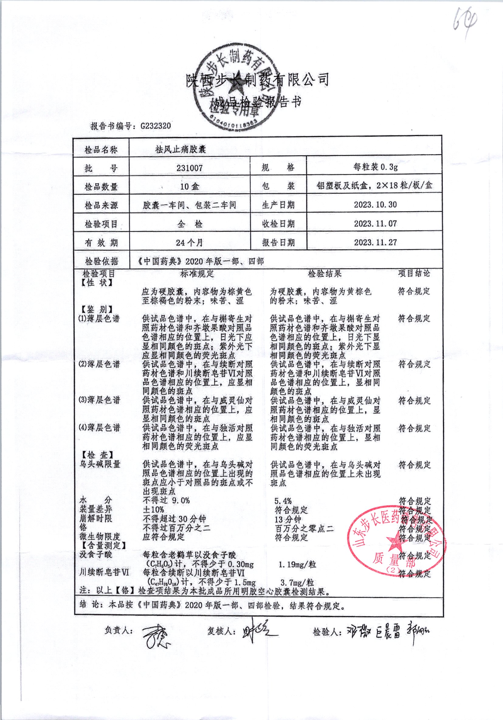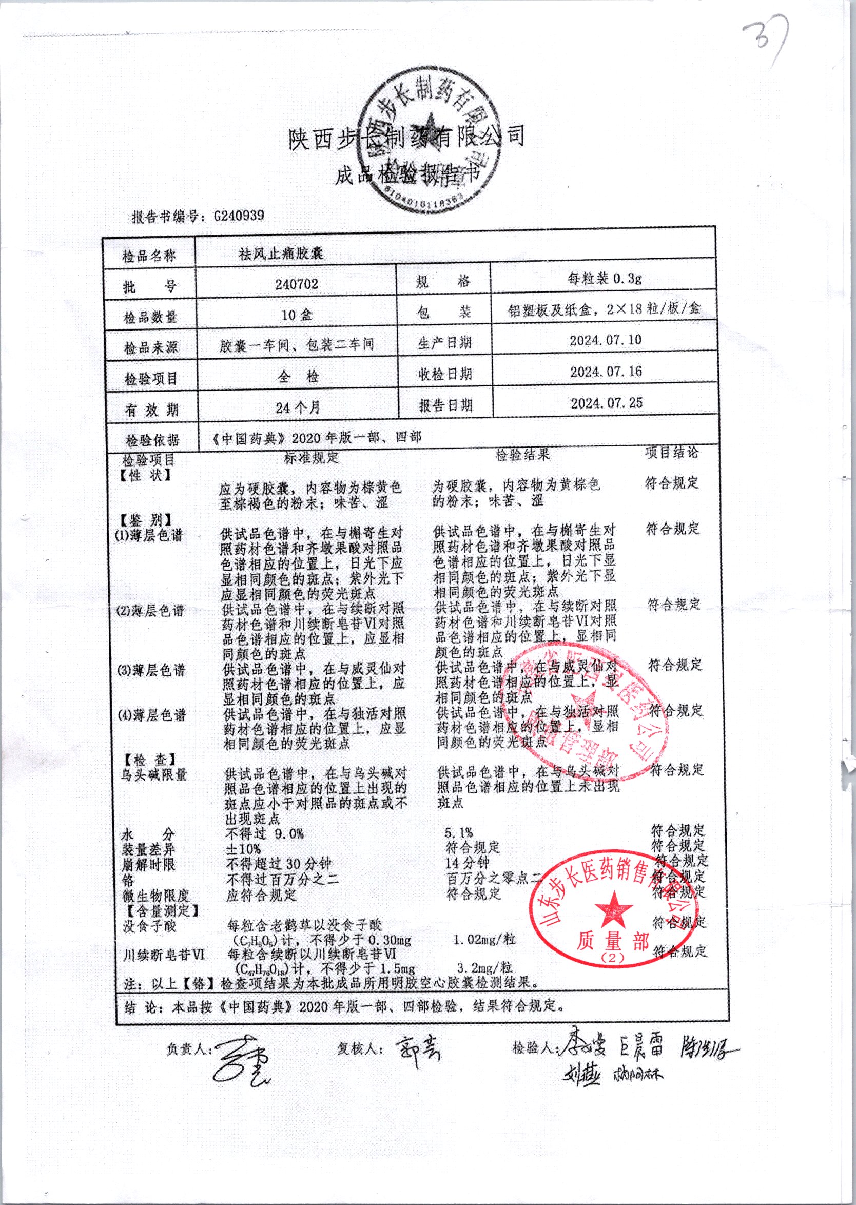 祛风止痛胶囊 | 0.3g*36粒 | 240702 | 查看详情 |